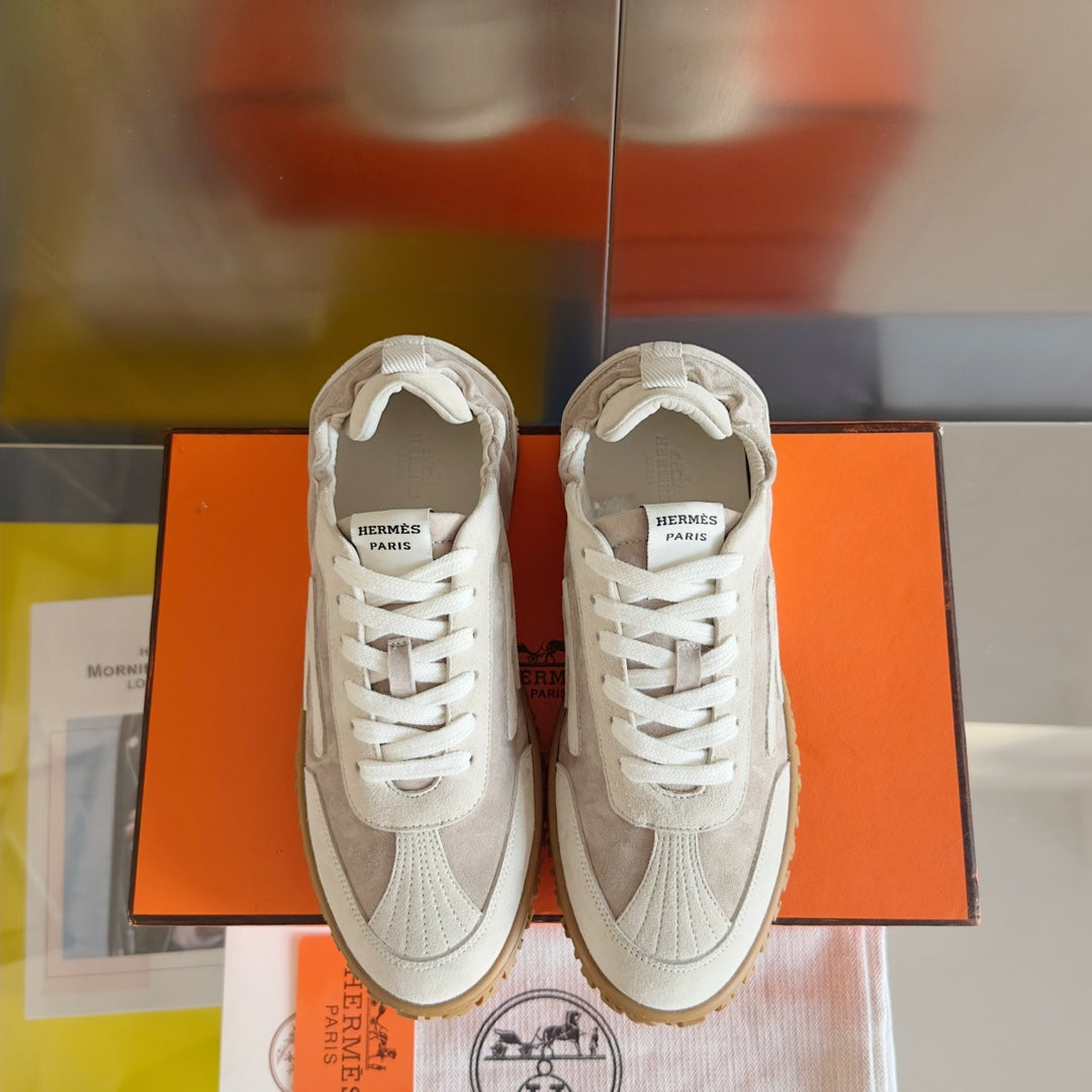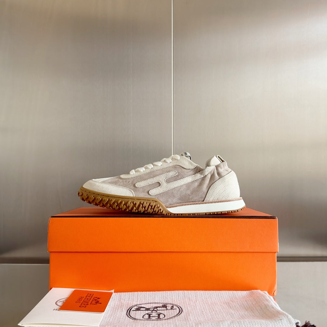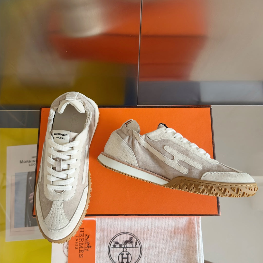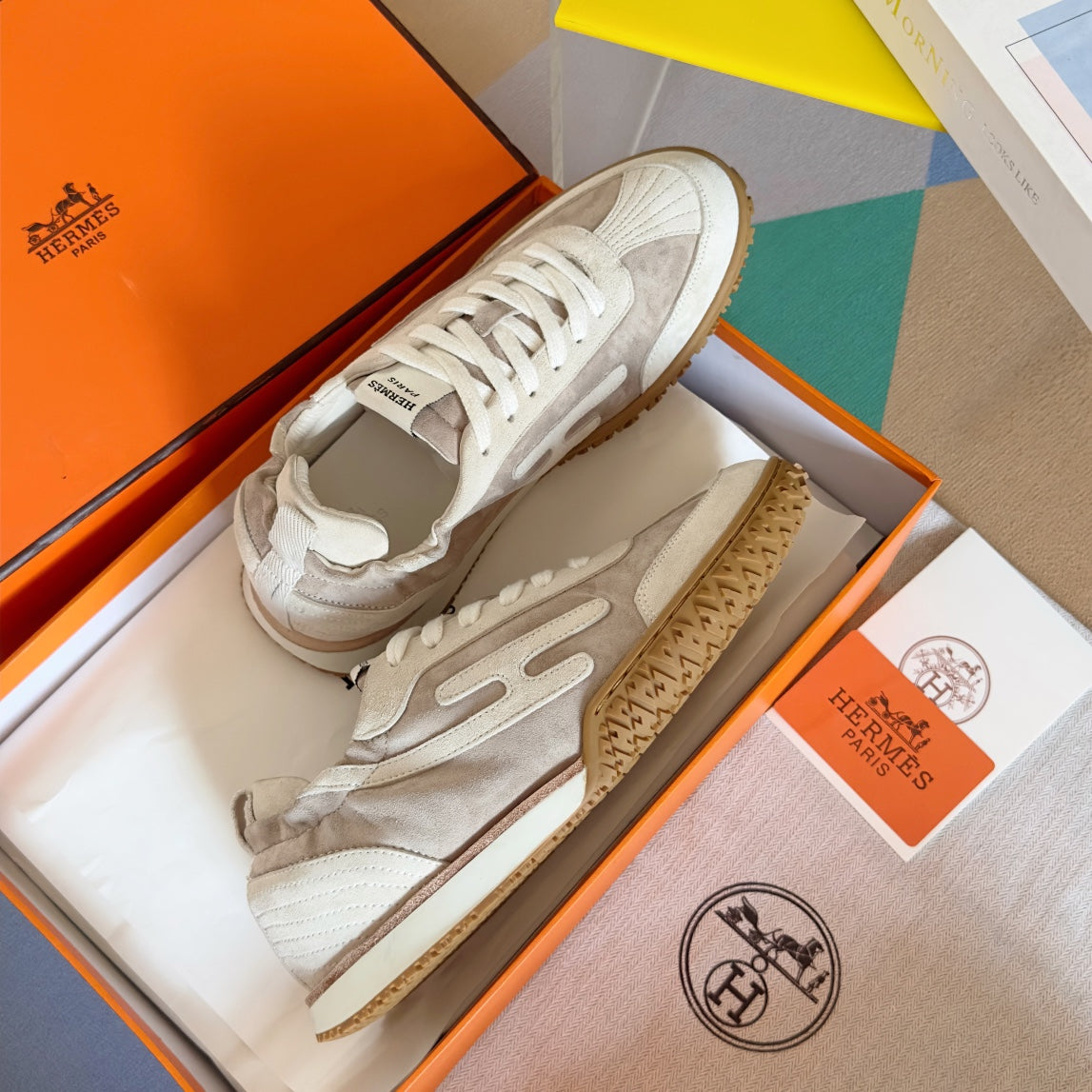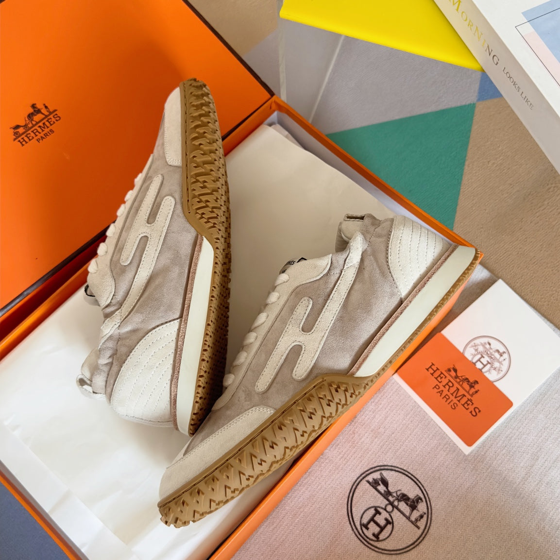 Step into style with the Hermes Jet Series Couples Casual Sports Shoes. Designed for both men and women, these sneakers combine a cutting-edge retro aesthetic with ultimate comfort for training and casual wear. Crafted from premium suede goatskin, they feature unique contrasting patterns and the iconic "H" detail for a distinctive look.