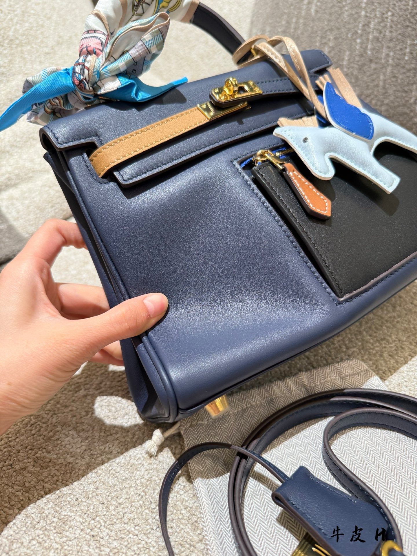 Elevate your style with the Hermes Kelly Colormatic Bag, meticulously crafted from imported first-layer cowhide. This iconic handbag features pure leather both inside and out, offering unparalleled luxury and durability.