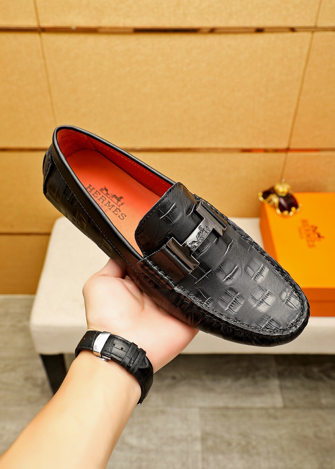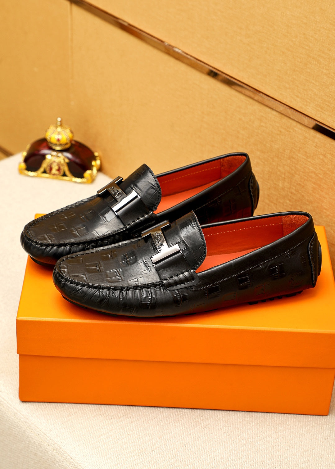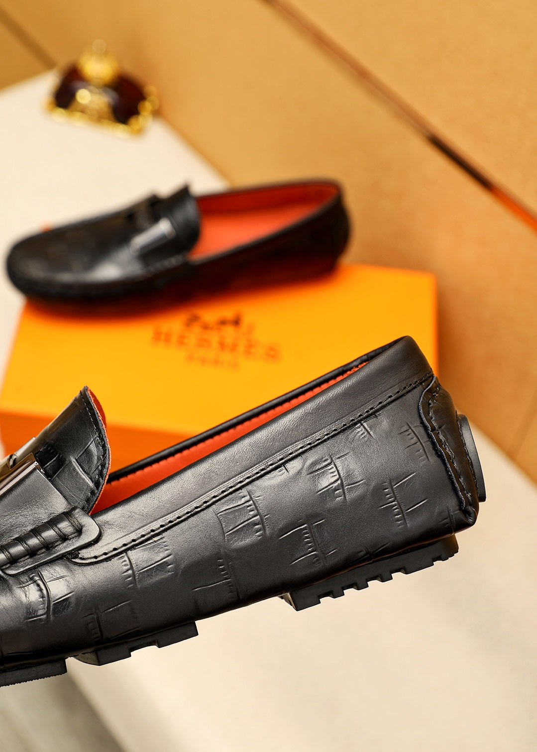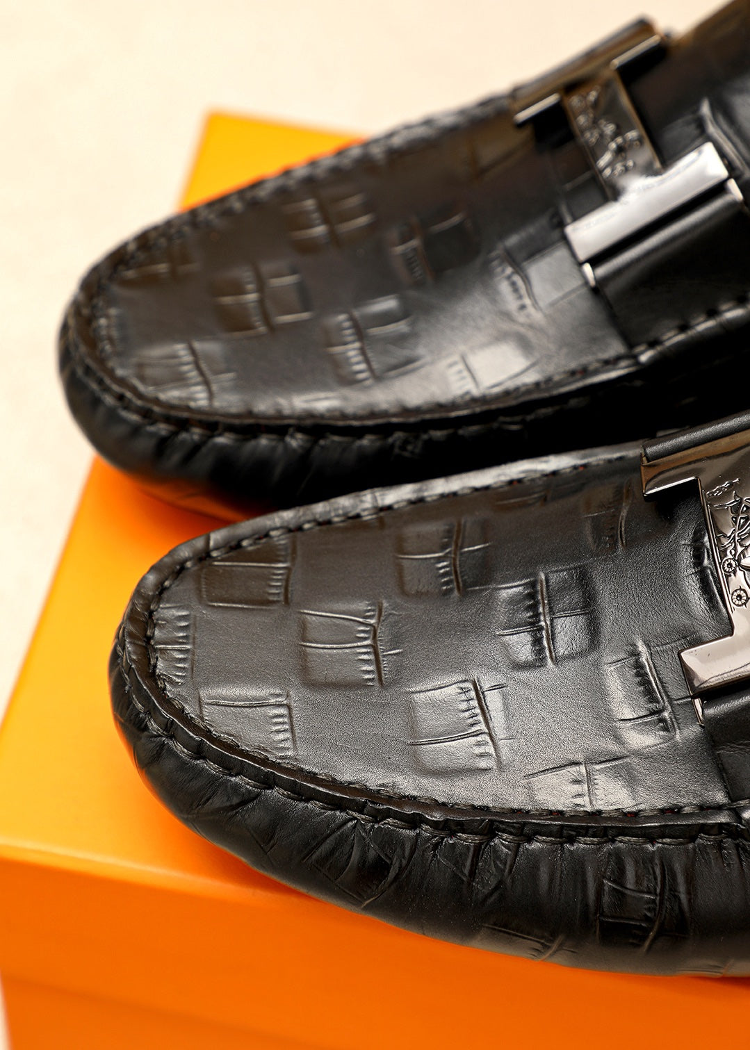 HERMES Premium Bean Shoes - Embossed Calfskin with Classic Hardware Buckle