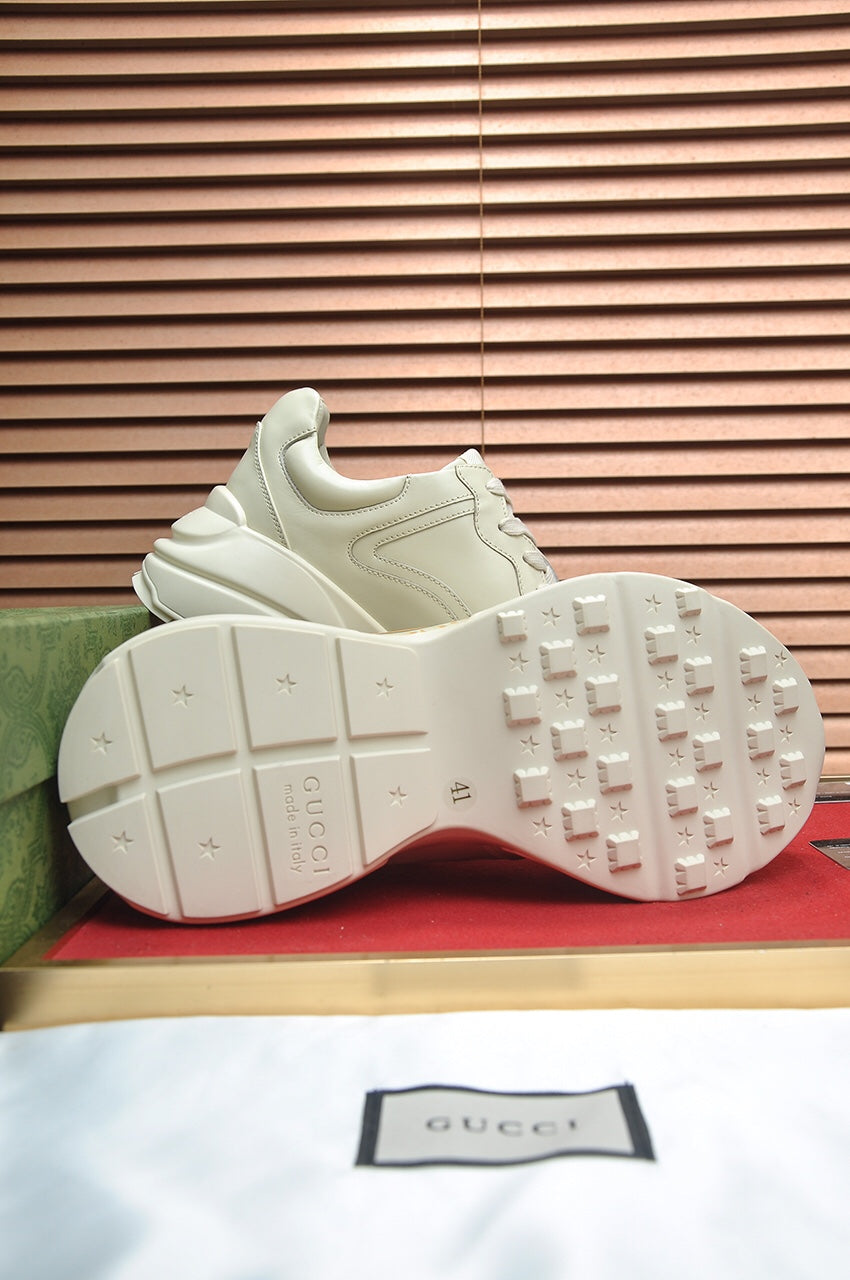 Introducing the premium version of Gucci's iconic dad shoes, designed for couples in 2023. Crafted with imported cowhide, these stylish sneakers feature a plush sheepskin lining for exceptional comfort. The lightweight, shock-absorbing foam outsole ensures a superior walking experience.