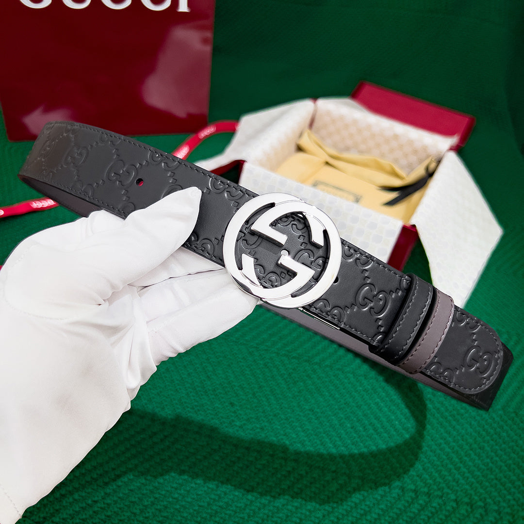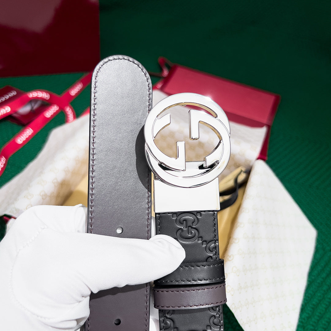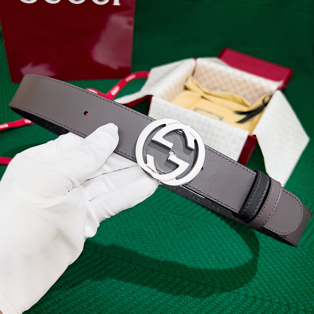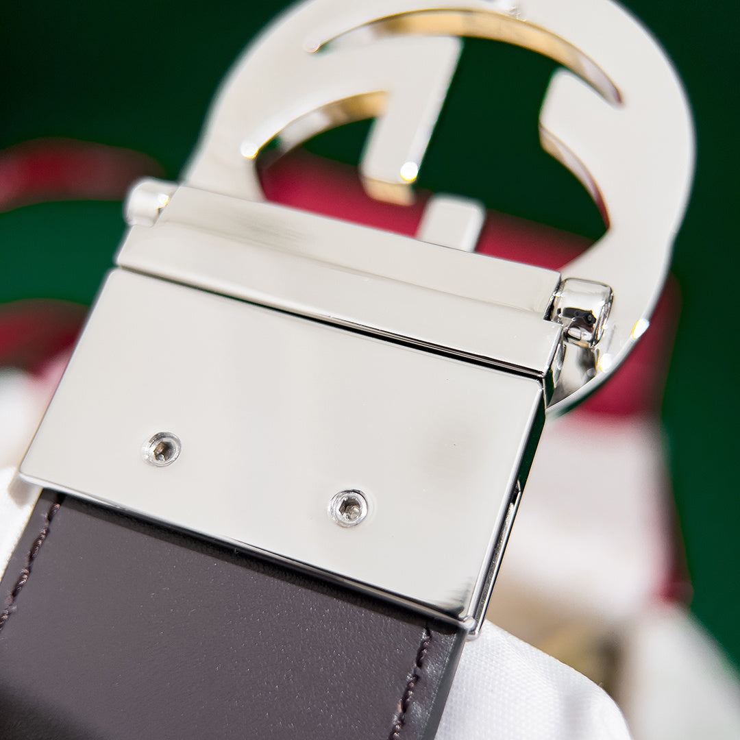 Elevate your style with the GUCCI Men's 3.7MM Reversible Leather Belt. Crafted from premium original leather, this high-end accessory features a unique counter-rotating buckle for enhanced functionality and elegance. Designed for double-sided use, it offers versatility to complement any outfit seamlessly. Experience top-notch quality and timeless sophistication with this must-have belt. Perfect for the modern man who values both fashion and durability.