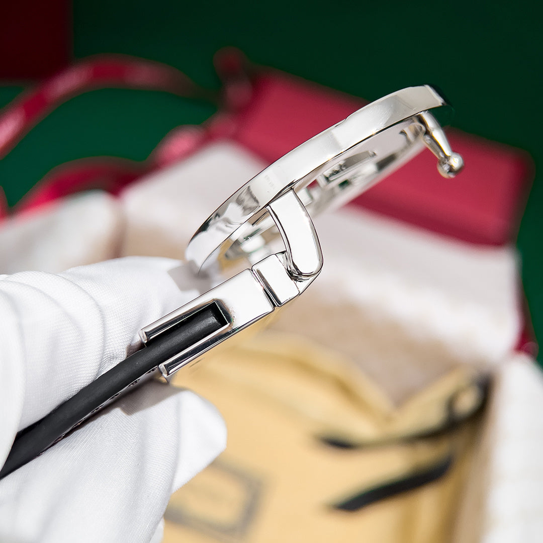 High-Quality GUCCI Men's Reversible Leather Belt with Counter Rotating Buckle