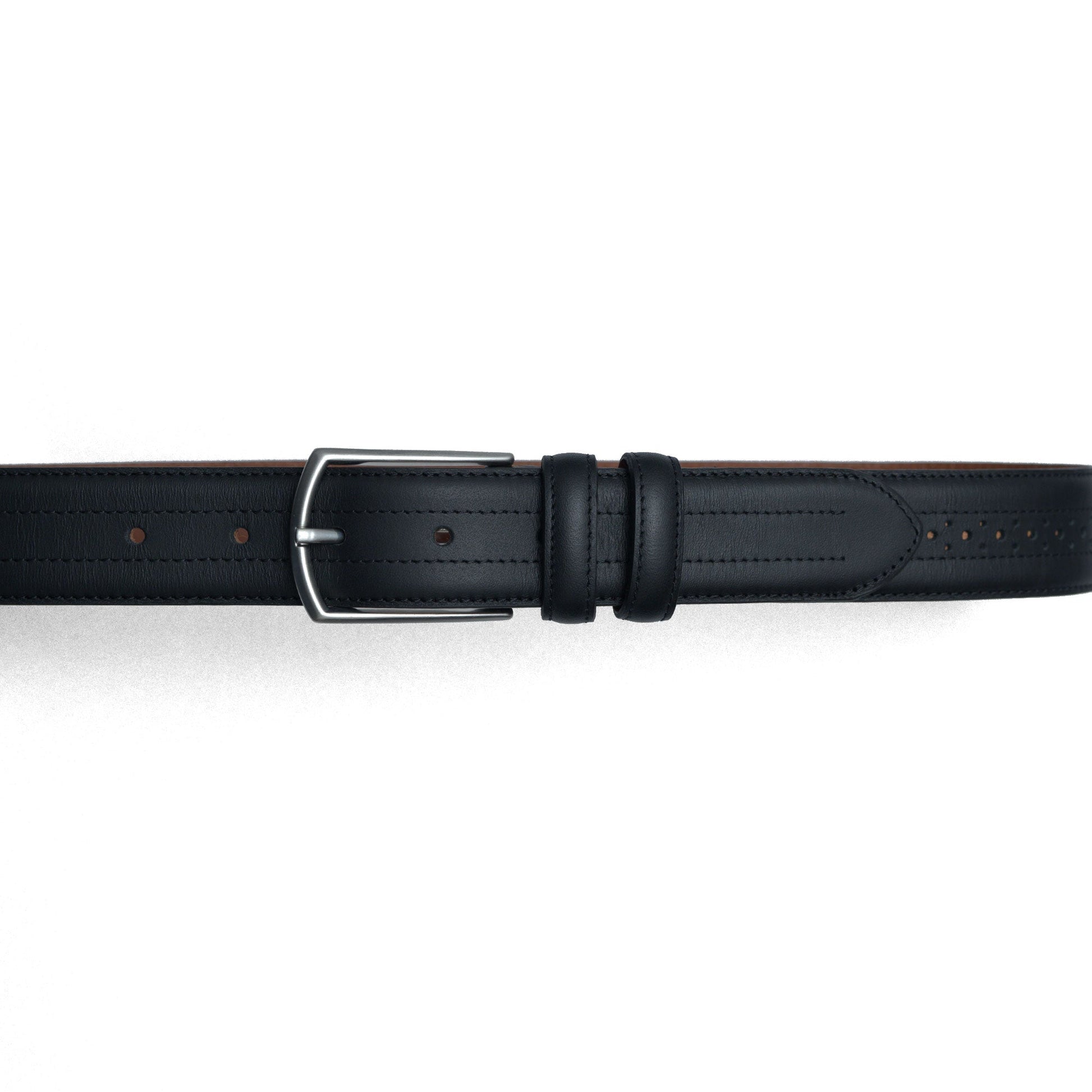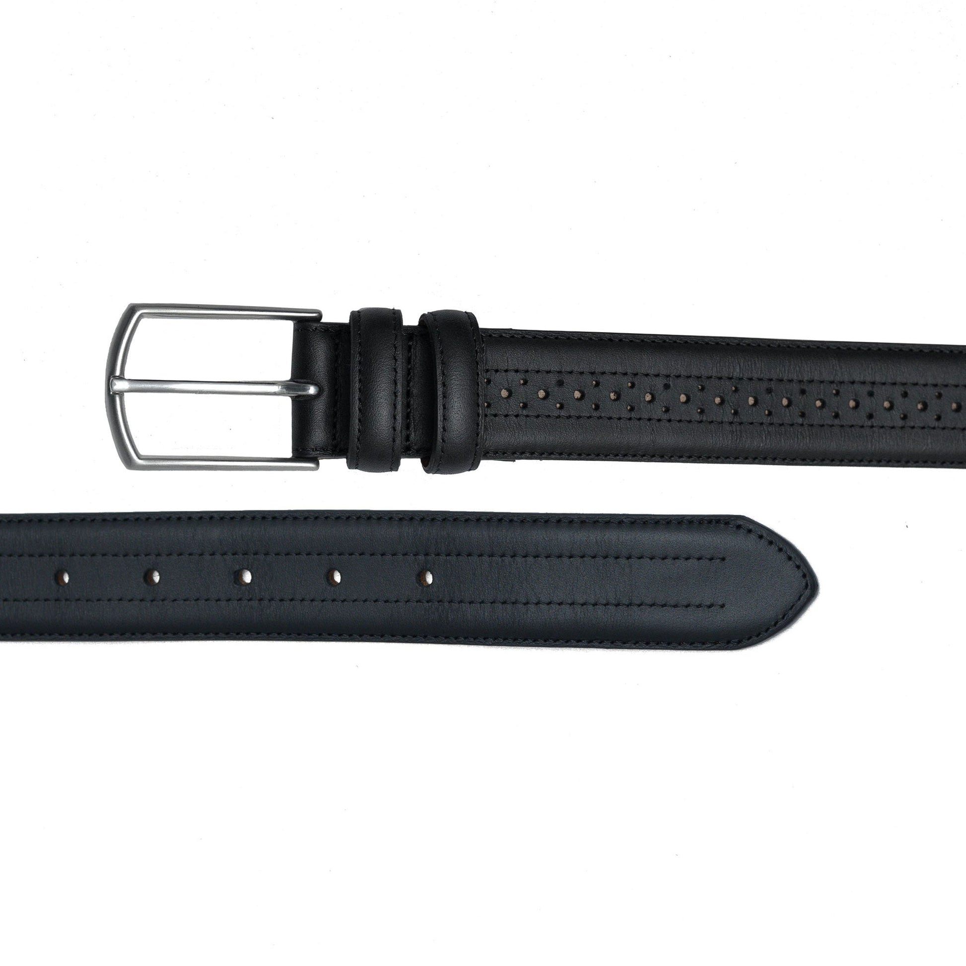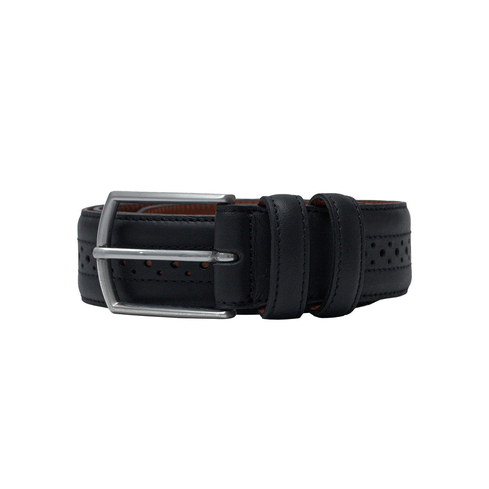 The Highland black brogue belt is more than an accessory, it’s a statement. The intricate perforated detailing sets it apart from traditional black belts, offering a refined look that works for both formal and casual settings.