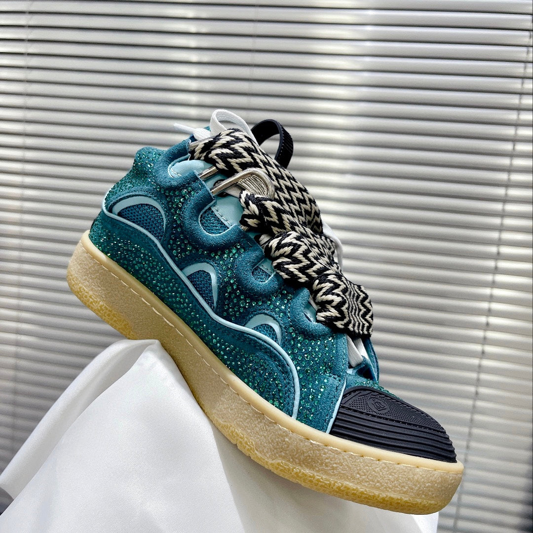 Elevate your footwear collection with the LANVIN Couple's Bread Sneakers, designed by renowned stylist Bruno Sialelli in Portugal. These sneakers take inspiration from 1990s aesthetics, blending delicate design with bold flair.