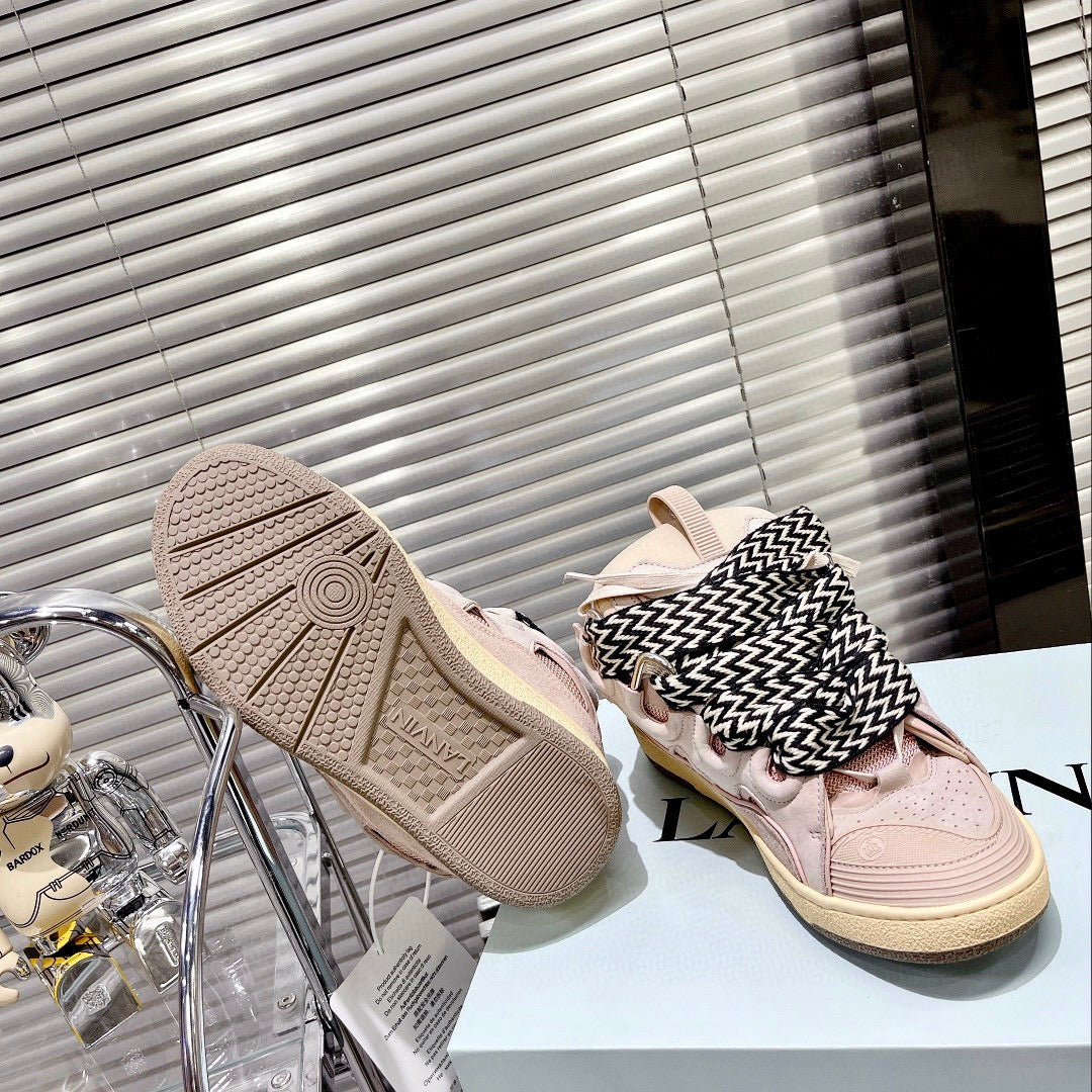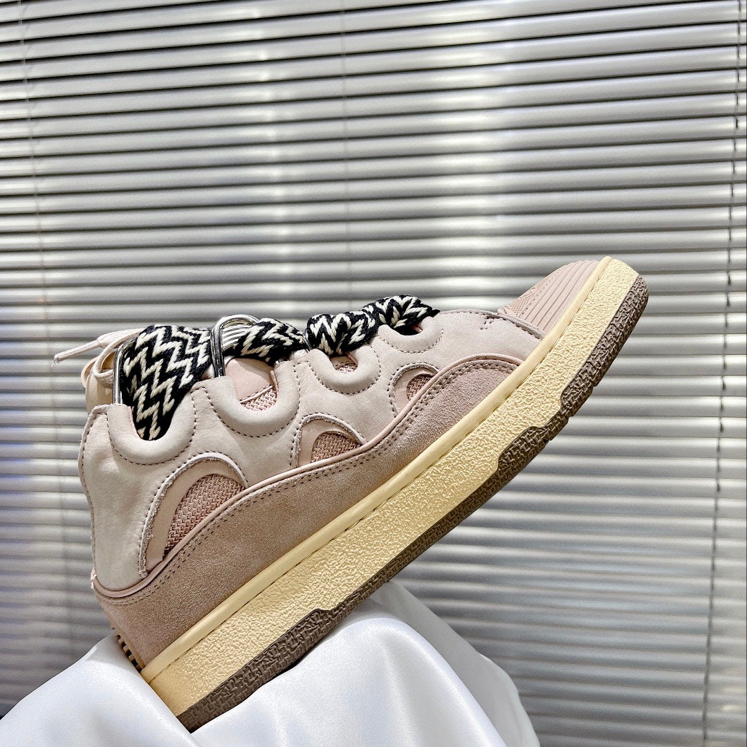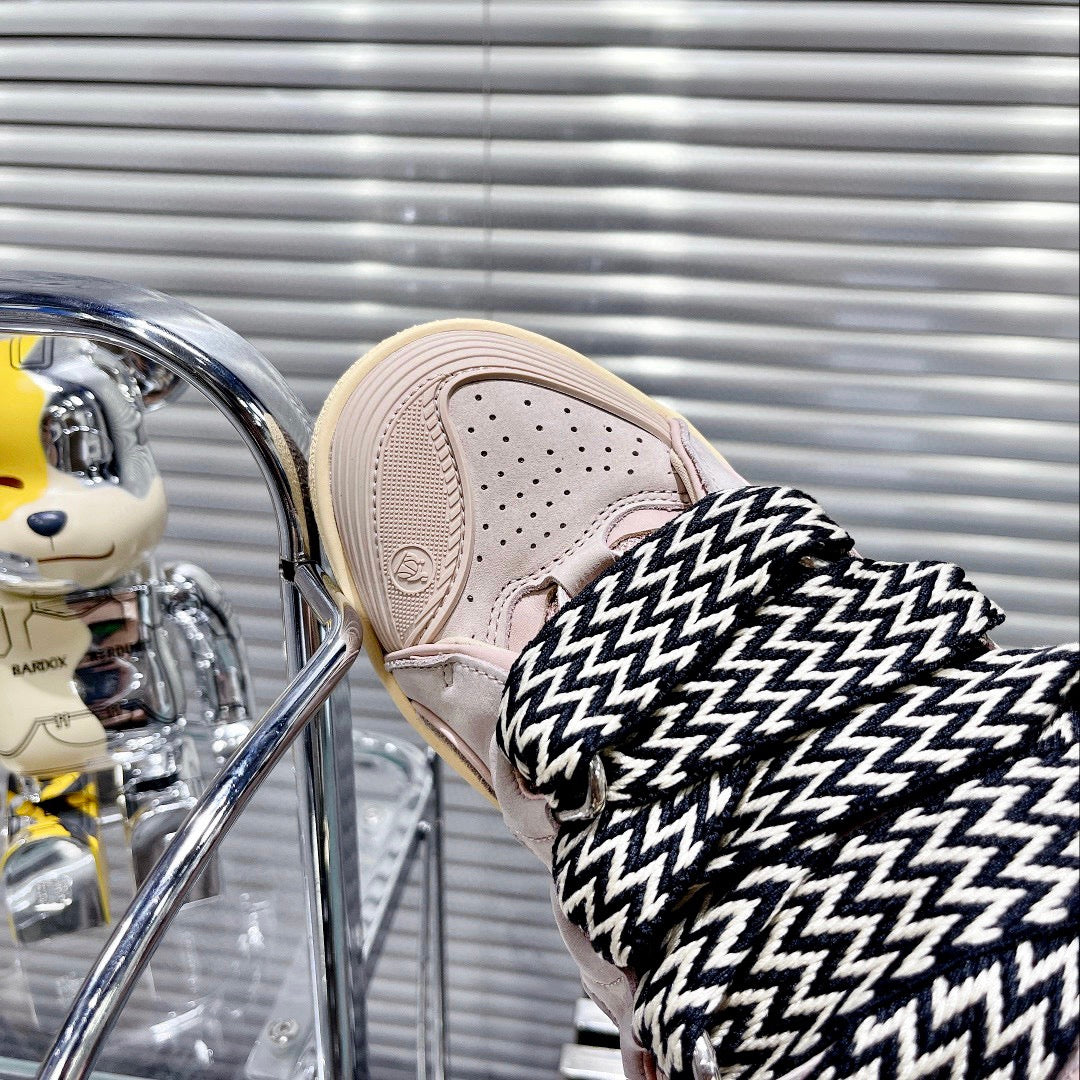Elevate your sneaker game with the LANVIN Couple's Bread Sneakers, designed by Bruno Sialelli in Portugal. Drawing inspiration from the vibrant 1990s, these premium patchwork sneakers combine nappa calfskin, suede, and mesh for a truly unique look.
