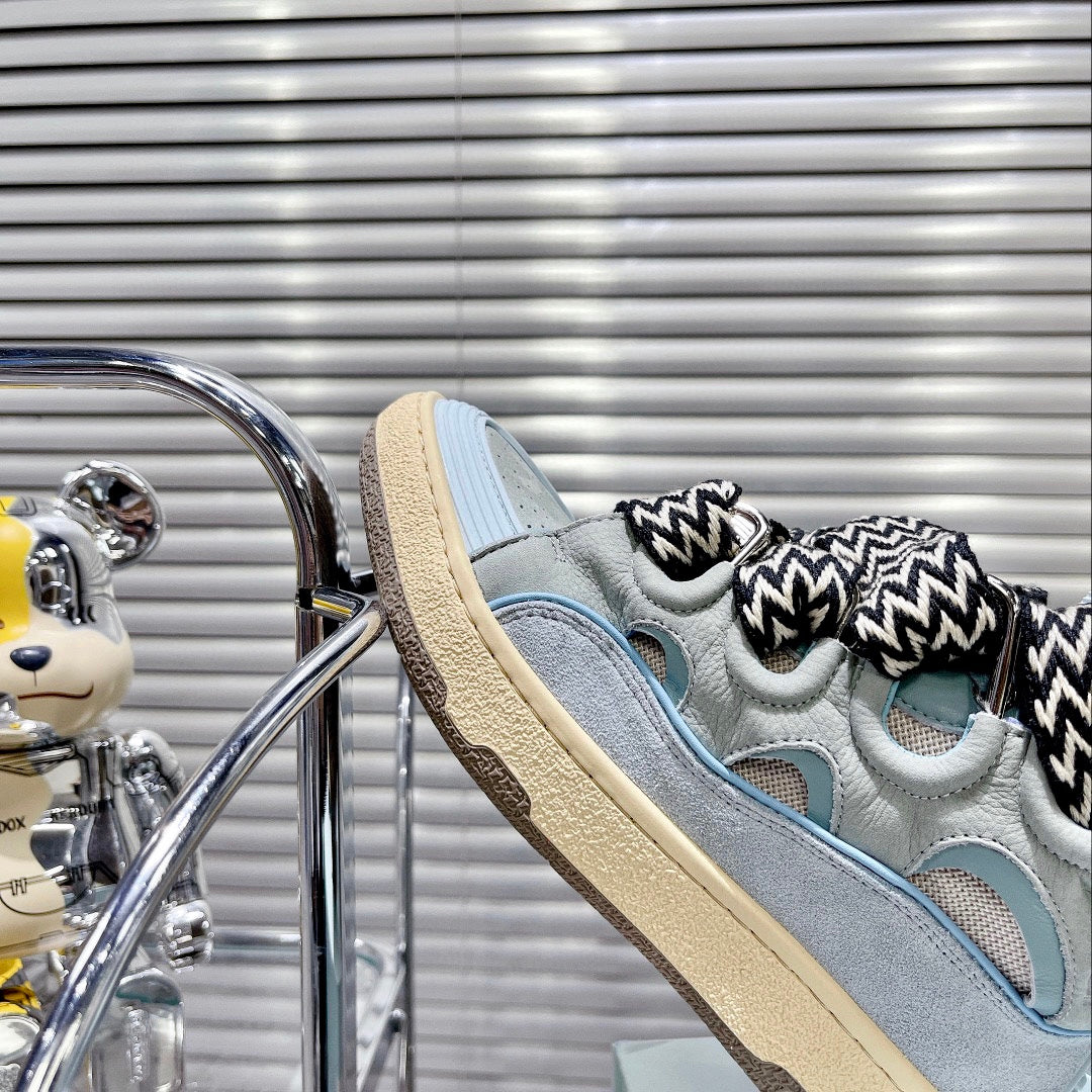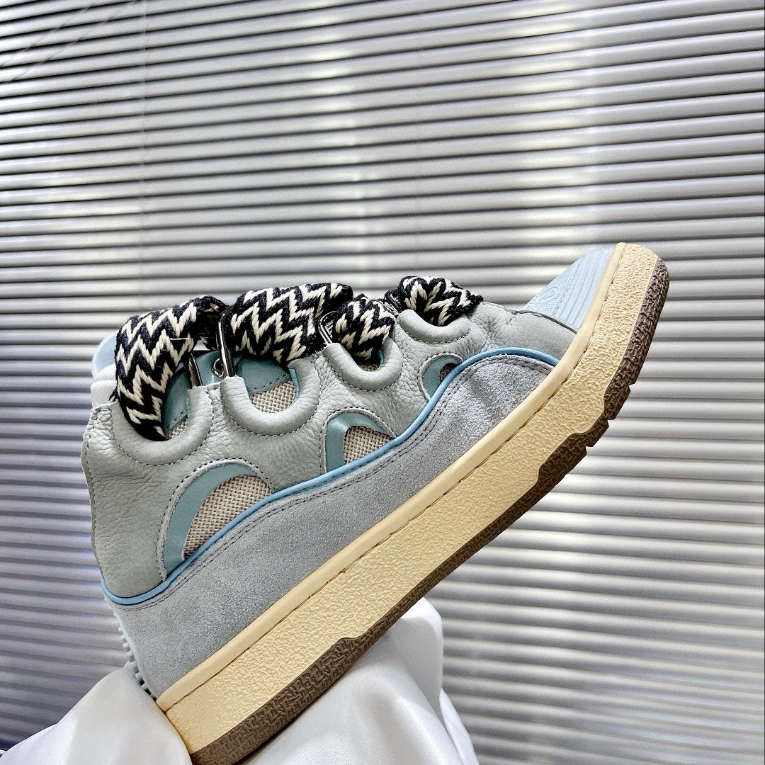 Step into luxury with the LANVIN Couple's Bread Sneakers, a stunning fusion of 1990s inspiration and contemporary design. Created by renowned designer Bruno Sialelli in Portugal, these sneakers are crafted from premium nappa calfskin, soft suede, and breathable mesh, offering a unique patchwork effect that stands out in any crowd.