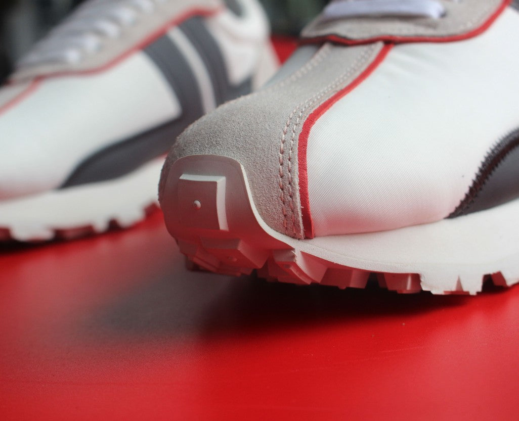 The highlights of these sneakers include a two-color outsole that complements the upper, designed for a cohesive and stylish appearance. Constructed from full-height elastic material, the outsole enhances lightness and offers superior rebound, making each step feel effortless.