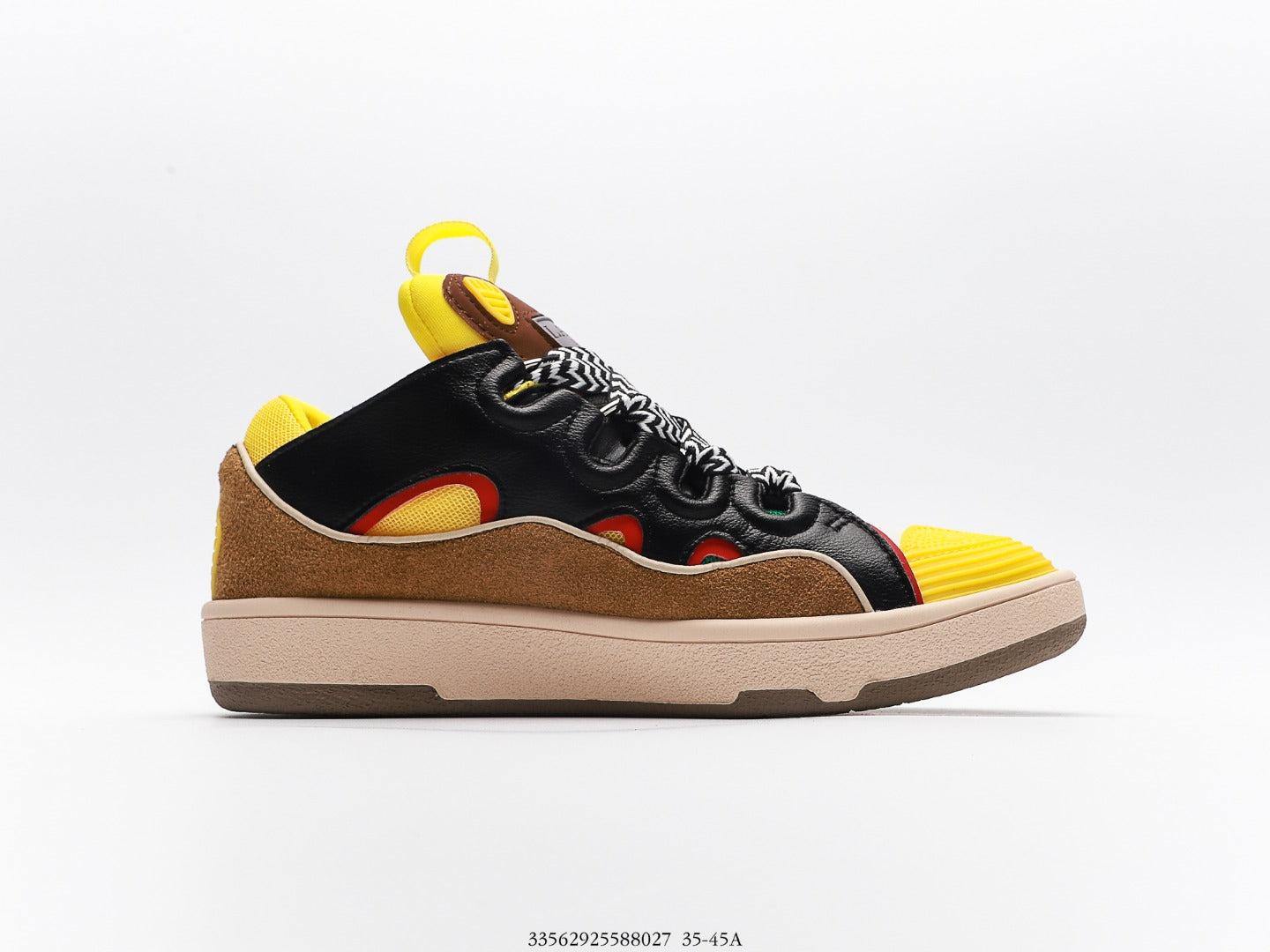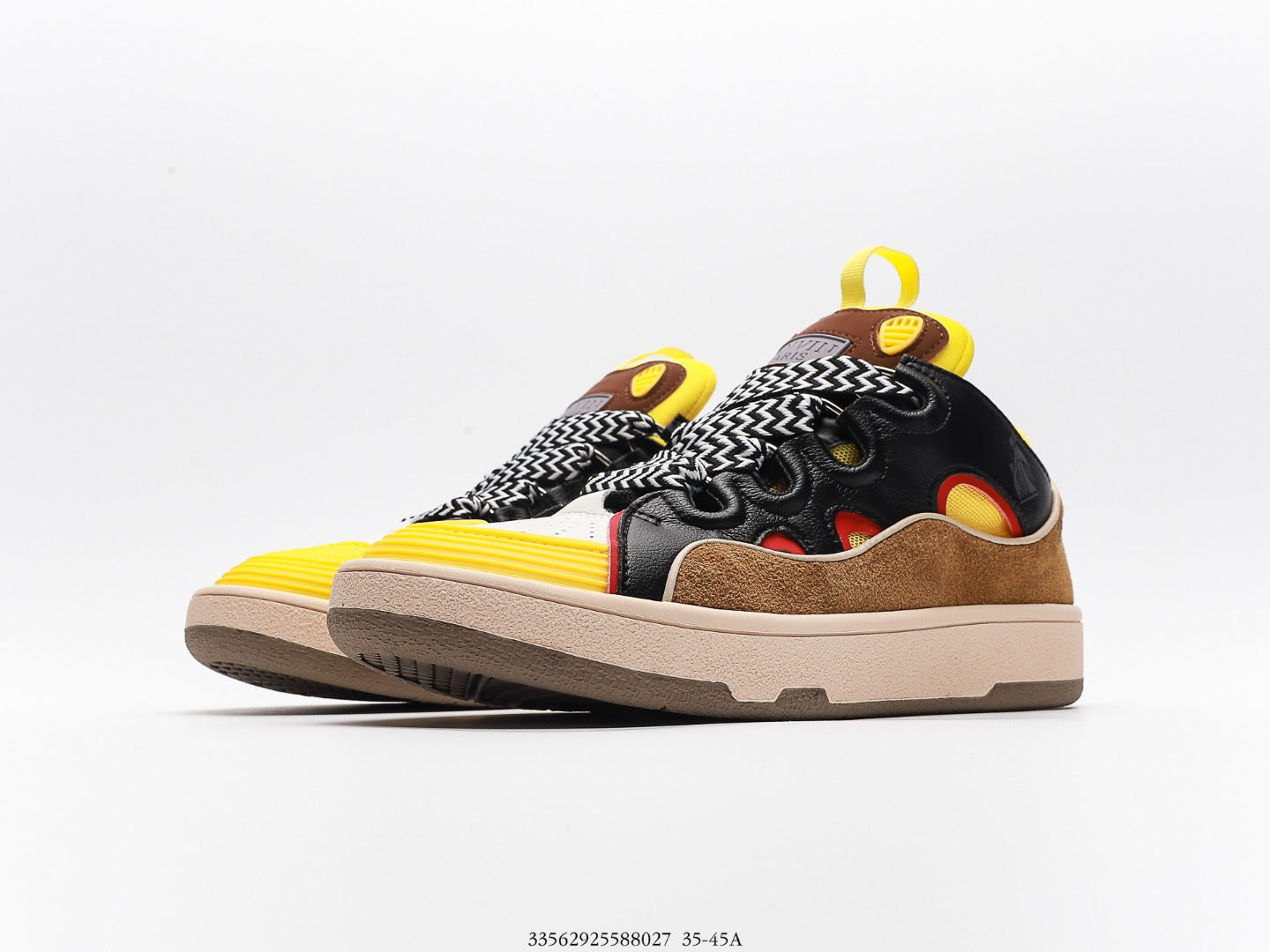 Elevate your style with the Lanvin Multi-Color High and Low Top Casual Business Sneakers. Expertly crafted with a sophisticated splicing design, these sneakers combine fashion and luxury seamlessly. The upper features a blend of imported calfskin leather and breathable polyester woven mesh, ensuring a comfortable fit that supports all-day wear. The lining is also made from premium cowhide and polyester mesh, while the cushioned cowhide foot pads provide exceptional comfort. The durable two-color molded rubber outsole adds extra wear-resistance, making these sneakers perfect for any occasion. Available in sizes 35-45, these versatile shoes can effortlessly complement any outfit, helping you stand out in any casual business setting.