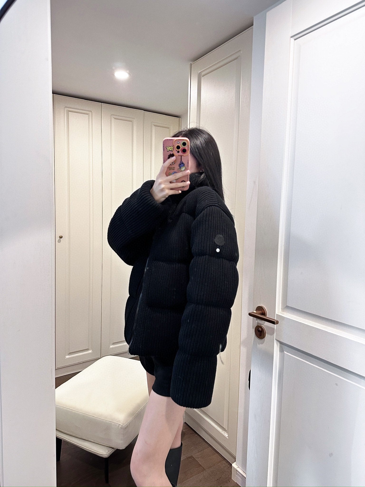 Introducing the Limited Edition Moncler A-Line Knitted Down Jacket in an eye-catching purple-black hue. This exclusive piece is a standout model for the season, crafted utilizing advanced knitted fabric technology that sets it apart in the world of luxury outerwear.