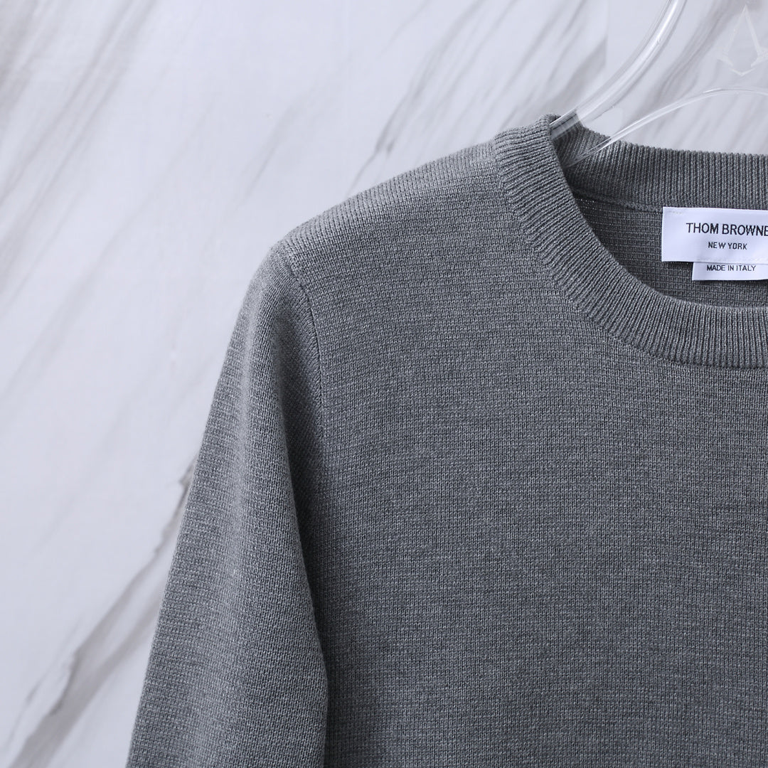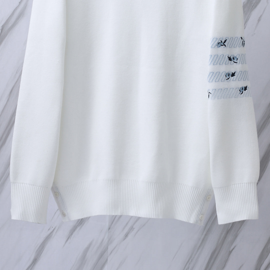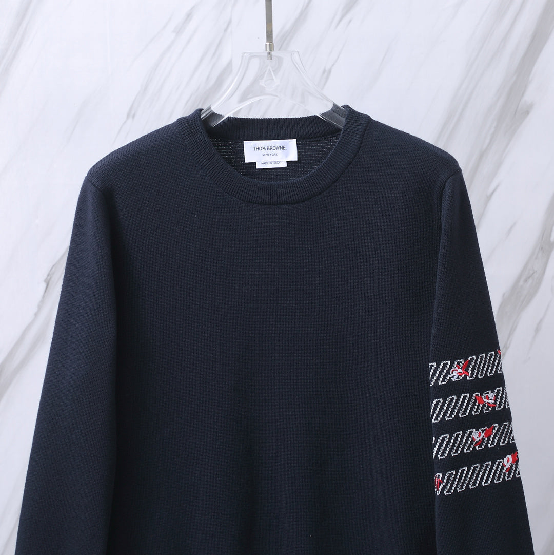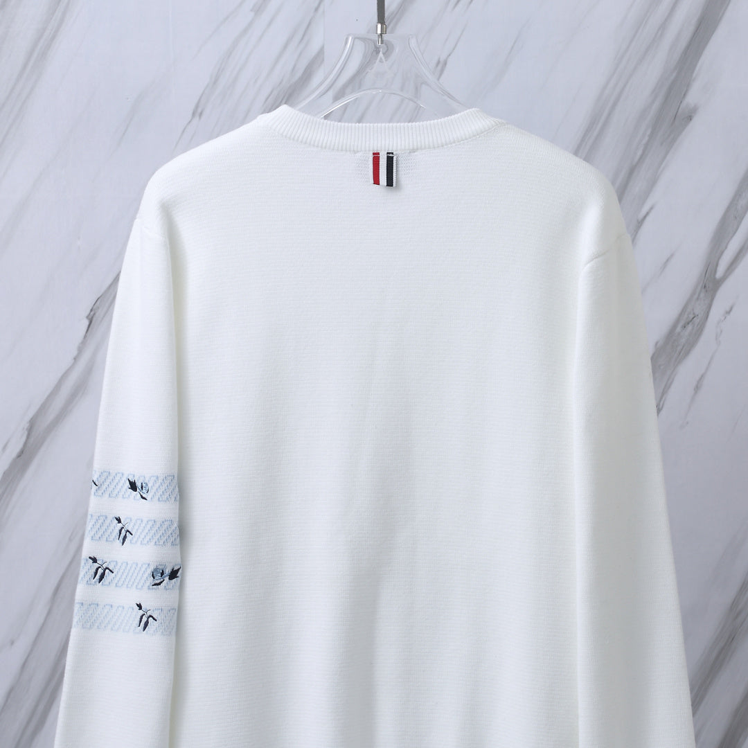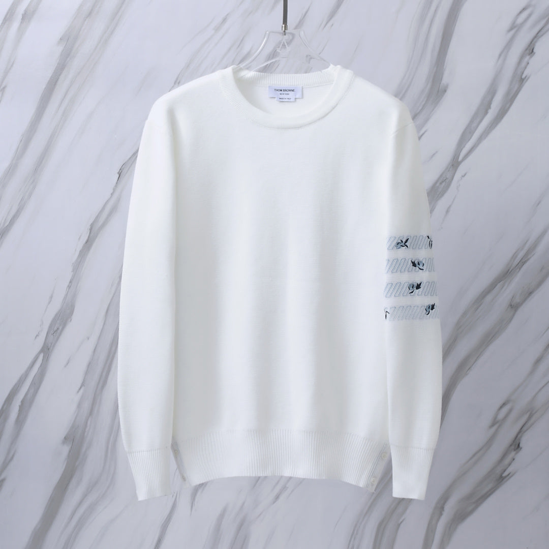 Discover timeless style and unparalleled quality with the Thom Browne TB M41 Striped Rose Crew Neck Sweater—your new wardrobe staple.
