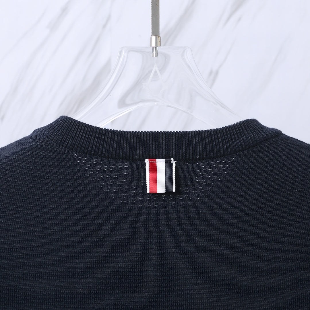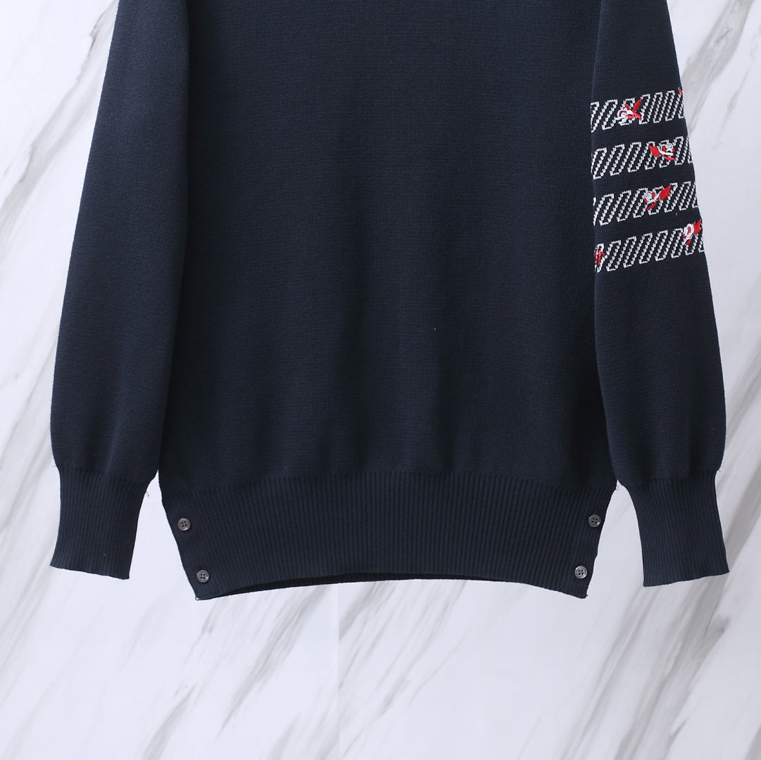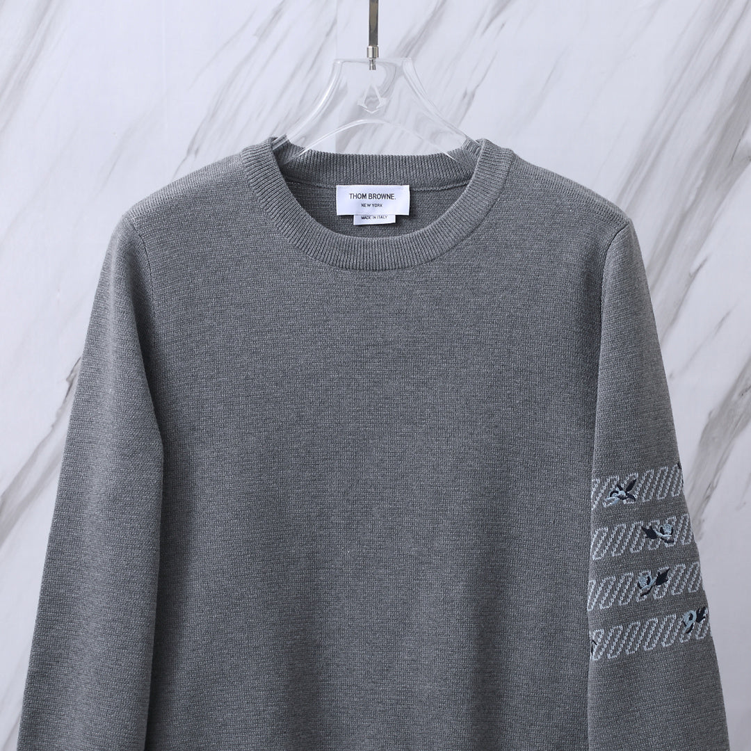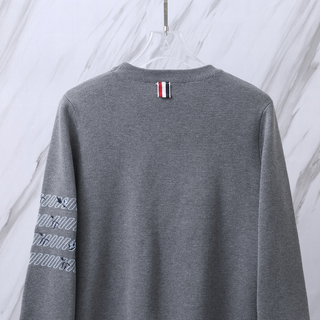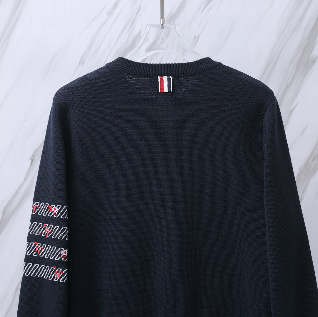 Discover timeless style and unparalleled quality with the Thom Browne TB M41 Striped Rose Crew Neck Sweater—your new wardrobe staple.