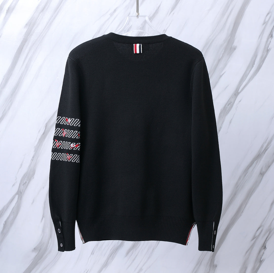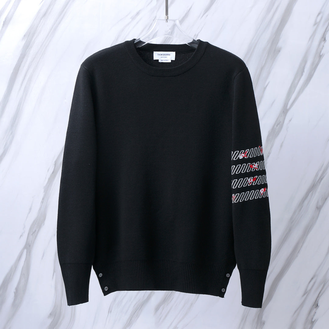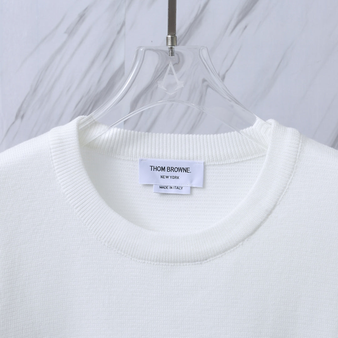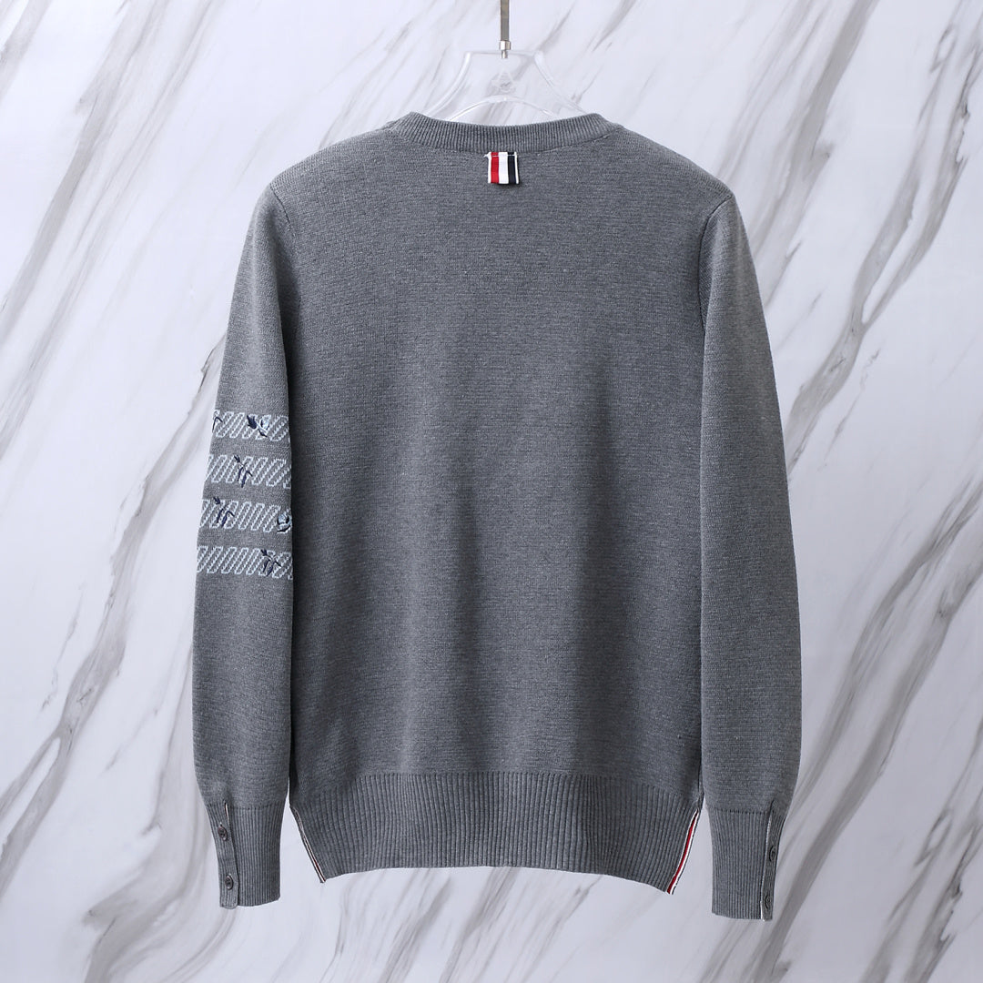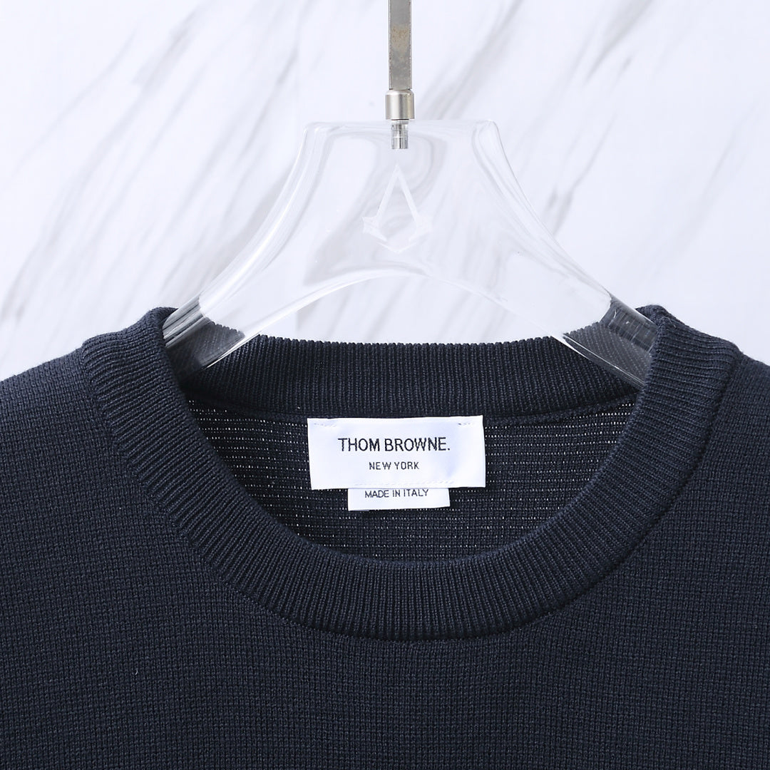 Discover timeless style and unparalleled quality with the Thom Browne TB M41 Striped Rose Crew Neck Sweater—your new wardrobe staple.
