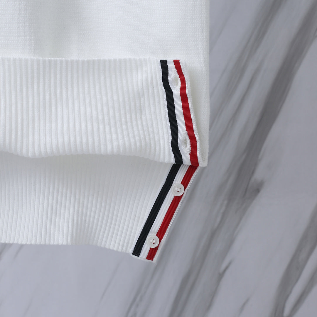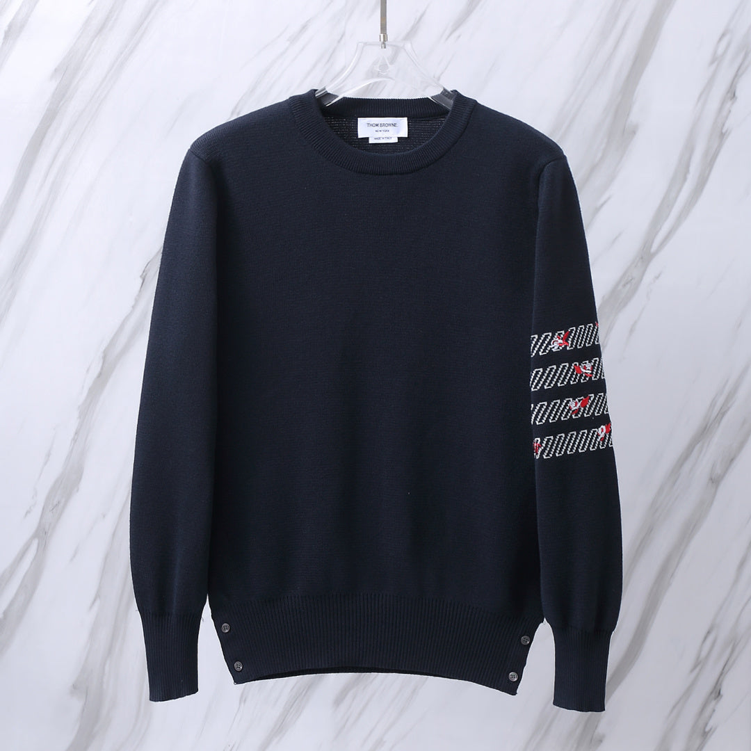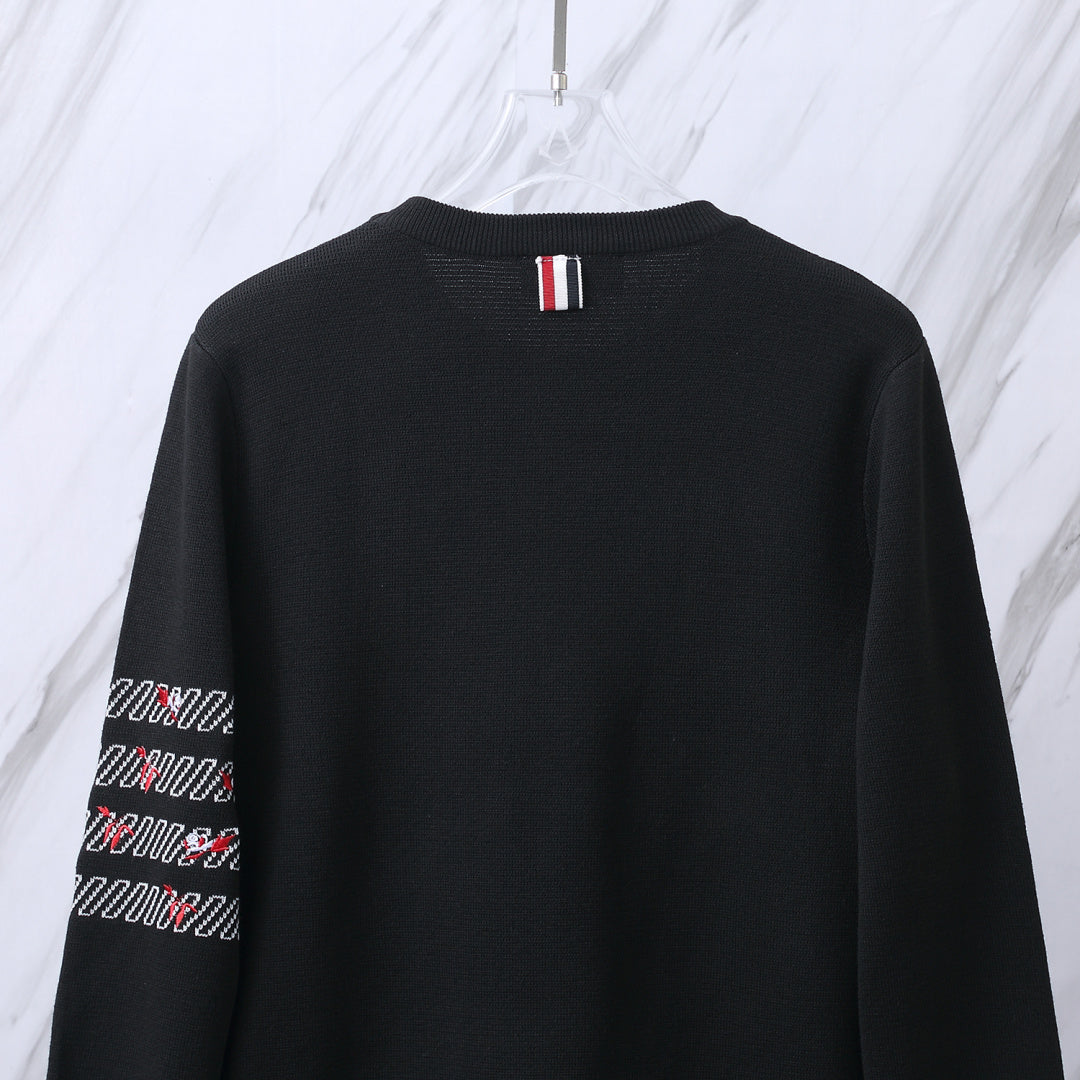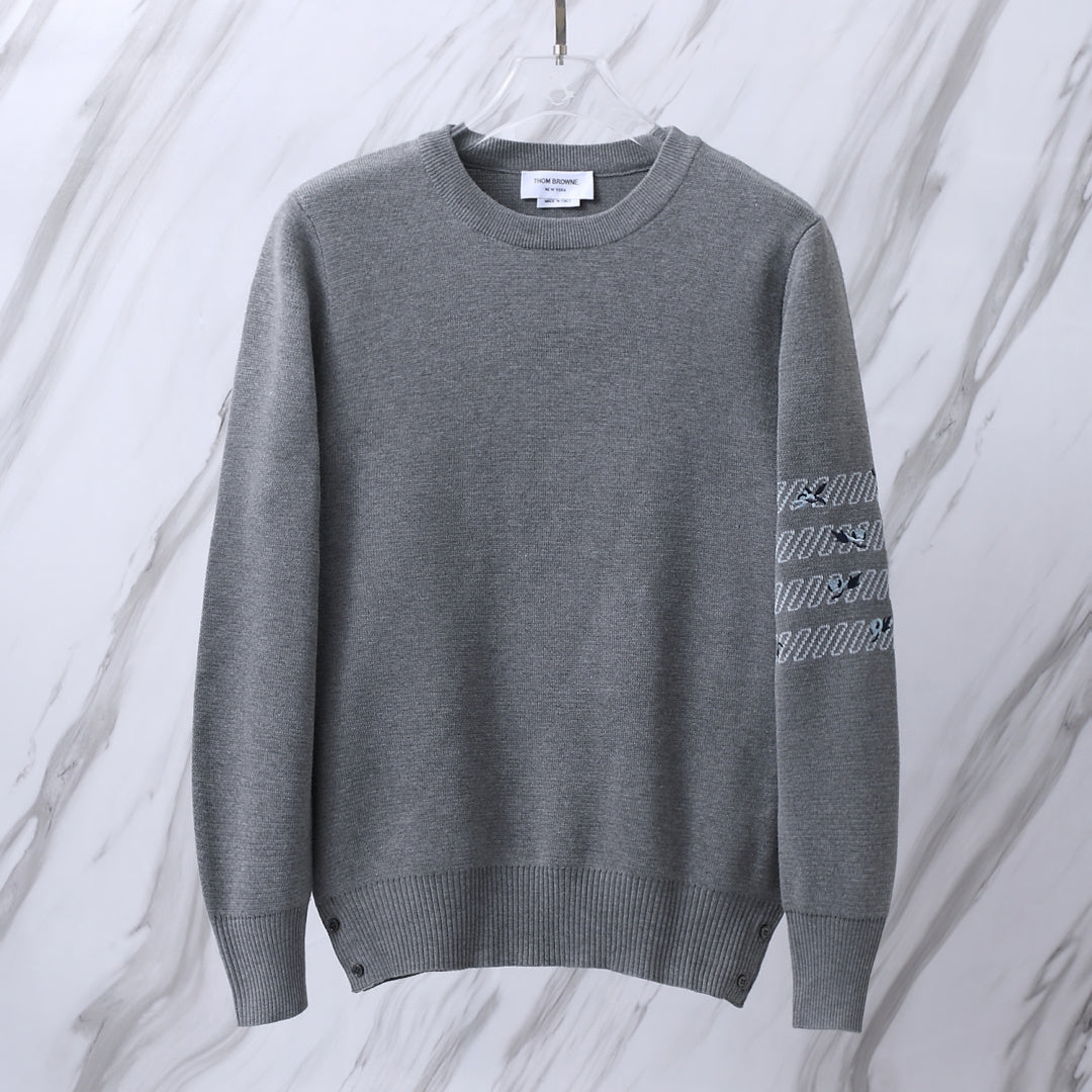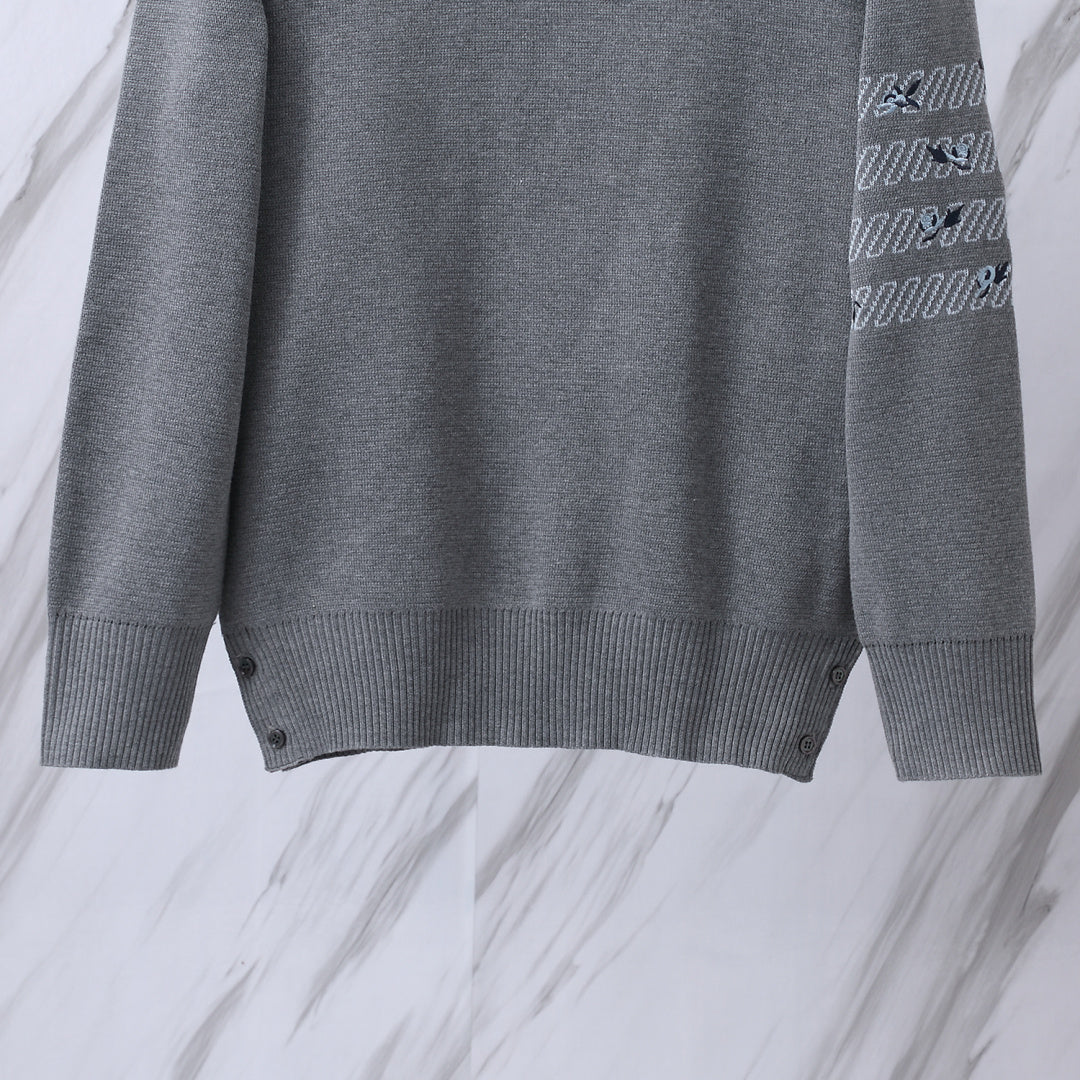 Discover timeless style and unparalleled quality with the Thom Browne TB M41 Striped Rose Crew Neck Sweater—your new wardrobe staple.