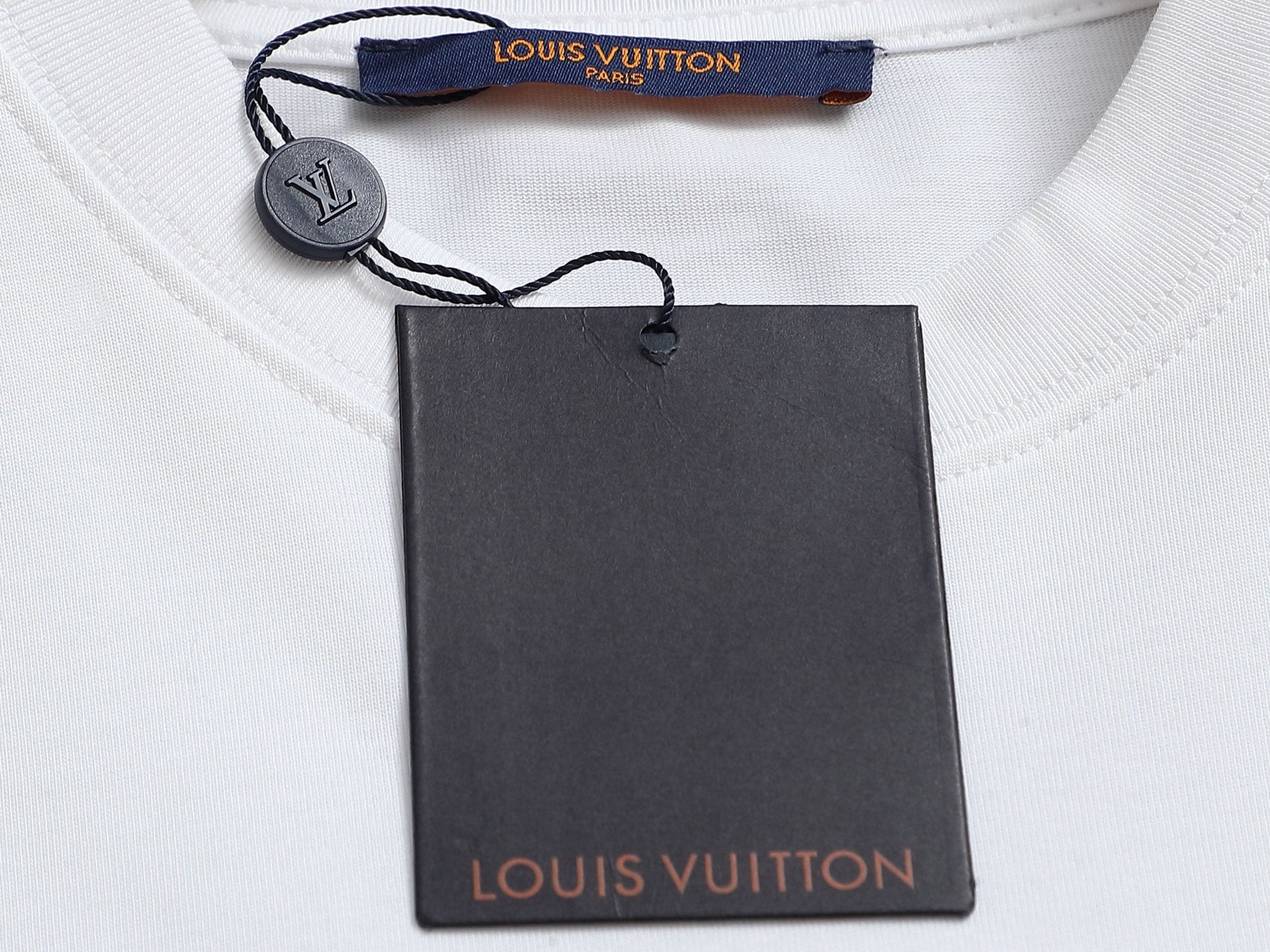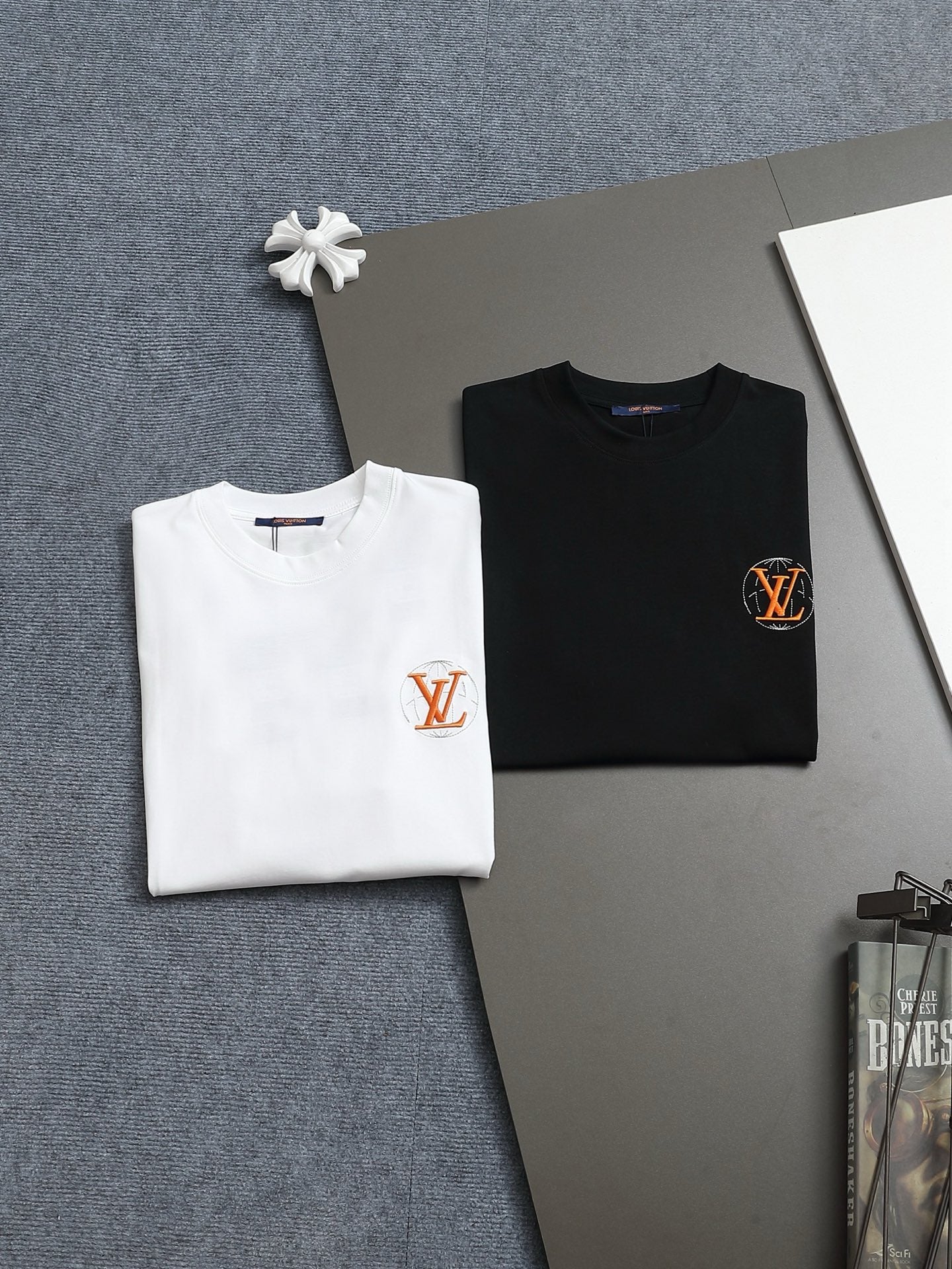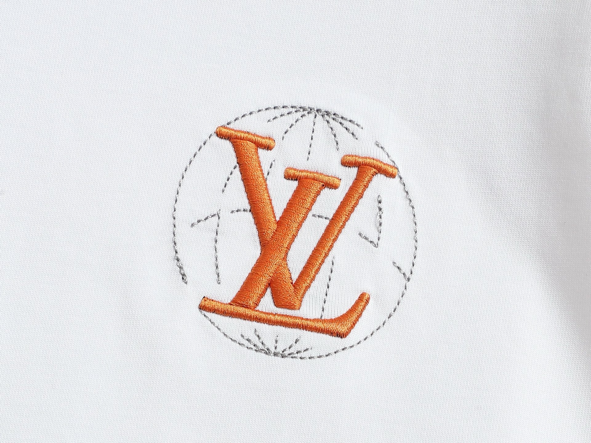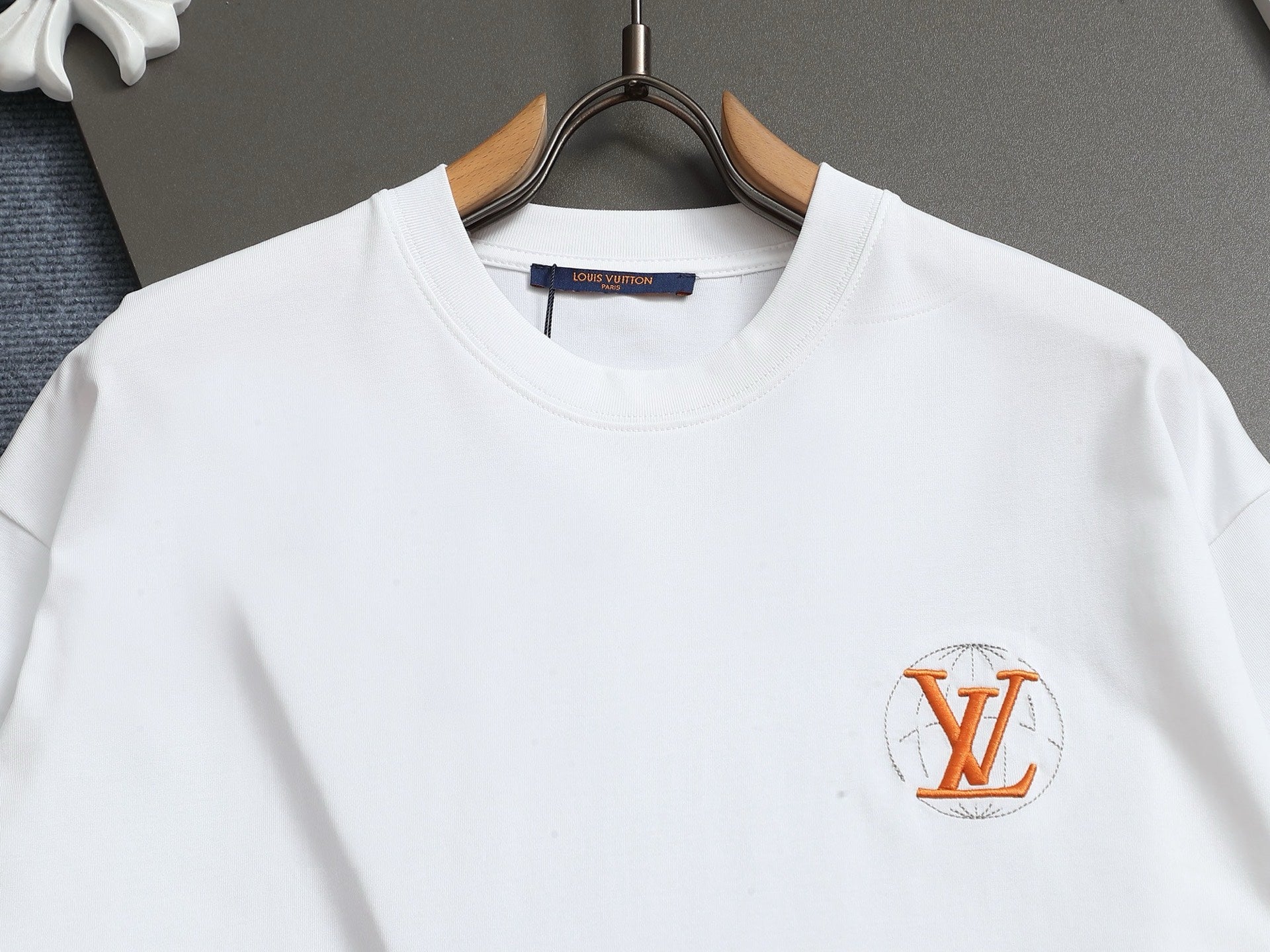Elevate your wardrobe with the Louis Vuitton 260g Round Neck Short-Sleeved T-Shirt. Featuring a stylish globe embroidery and distinctive logo design, this T-shirt is a perfect blend of luxury and fashion-forwardness. Crafted from high-quality, pure original fabric, it ensures both comfort and durability.