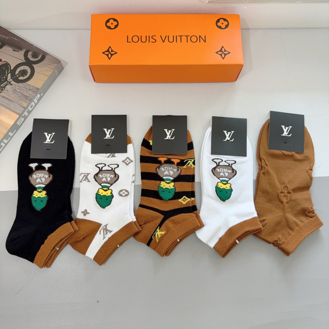 Louis Vuitton Classic Cotton Short Socks - 5 Pairs Box