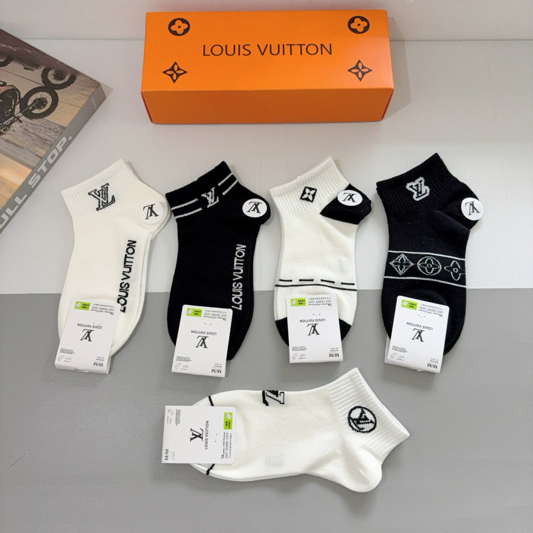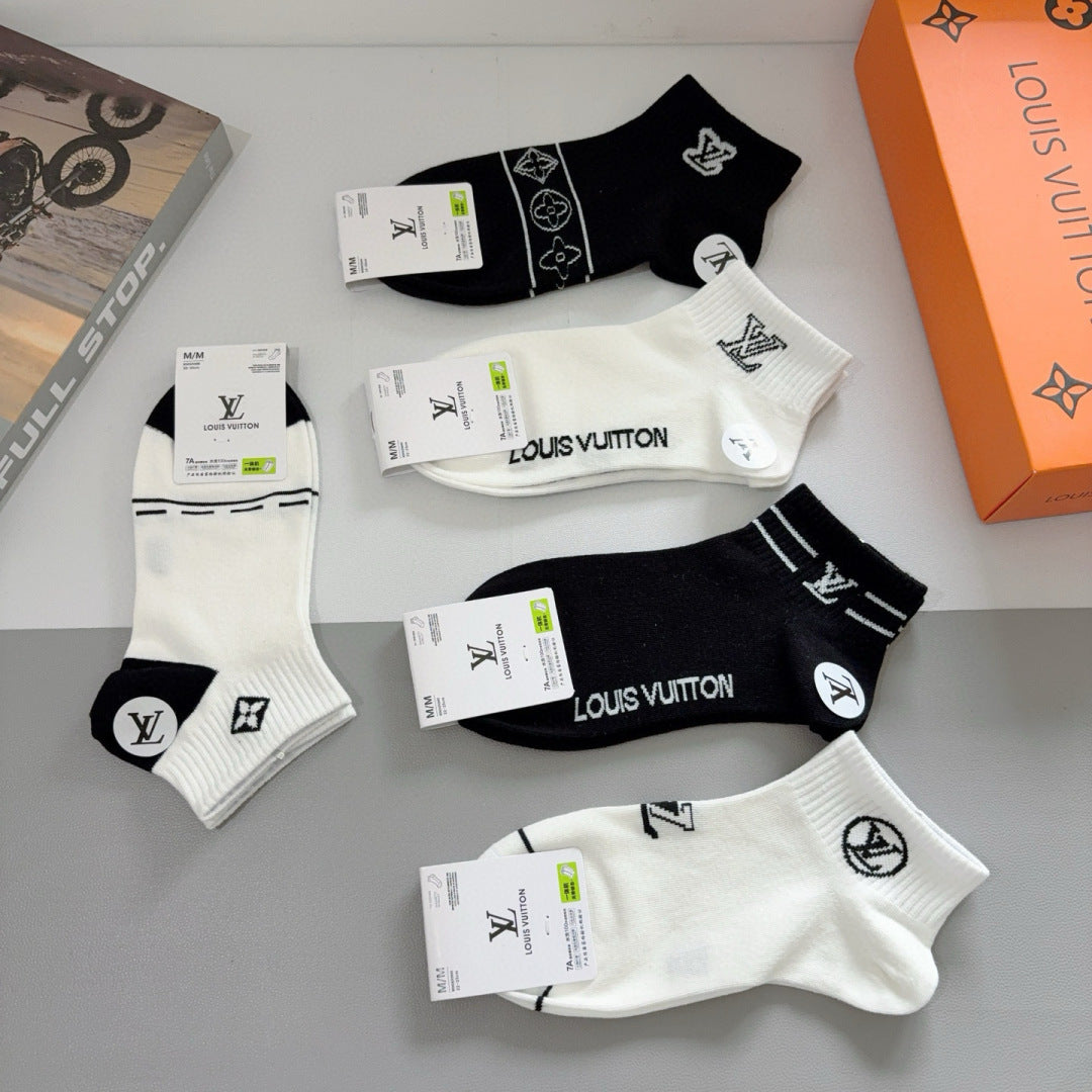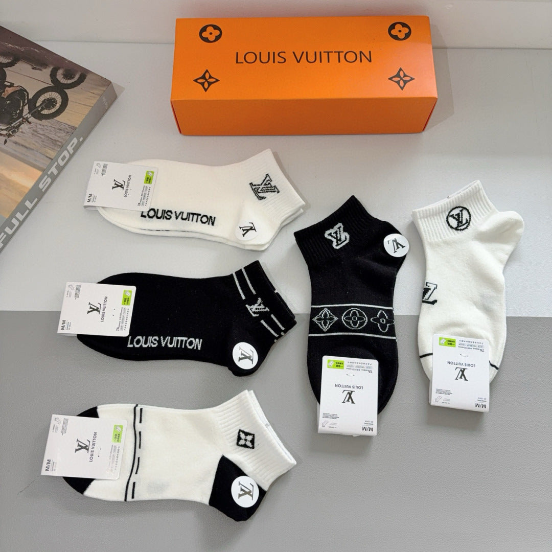 Louis Vuitton Classic Mid-Calf Socks - 5 Pairs of Stylish Cotton Fashion