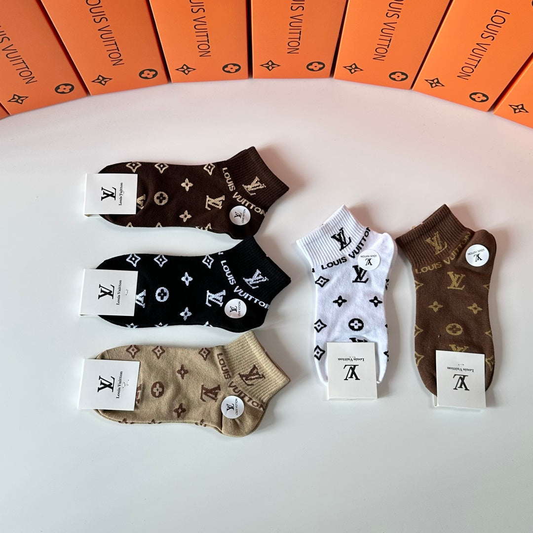 Louis Vuitton Classic Short & Medium Pile Socks – 5 Pairs Gift Set