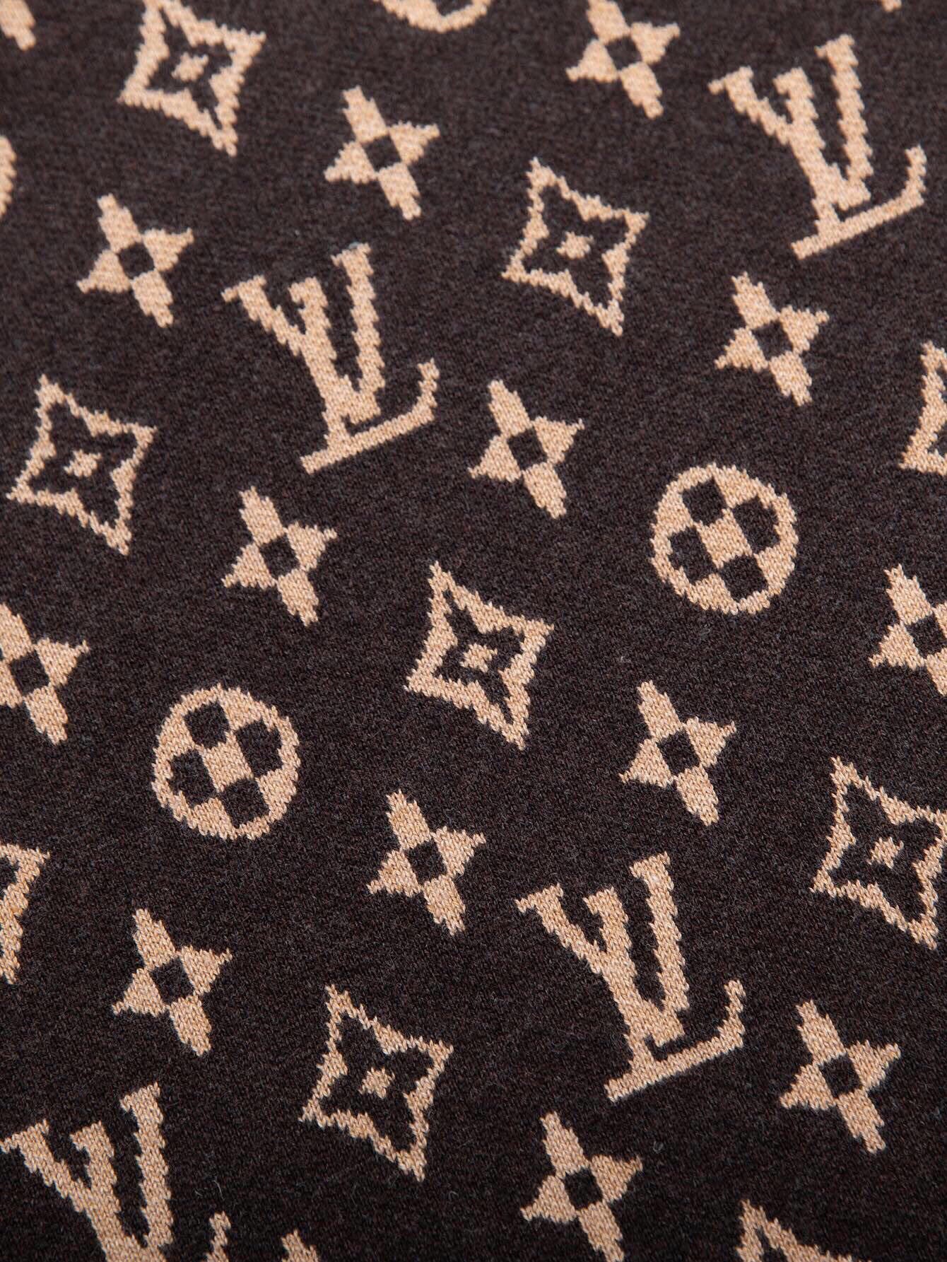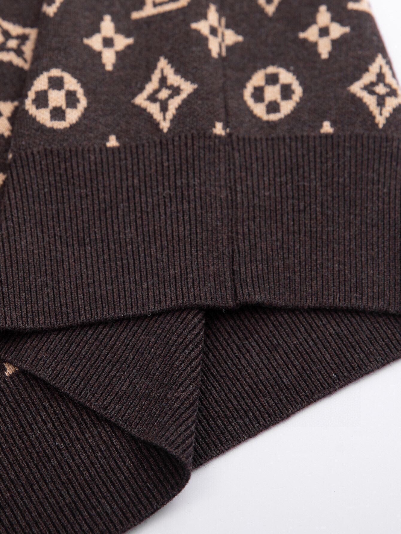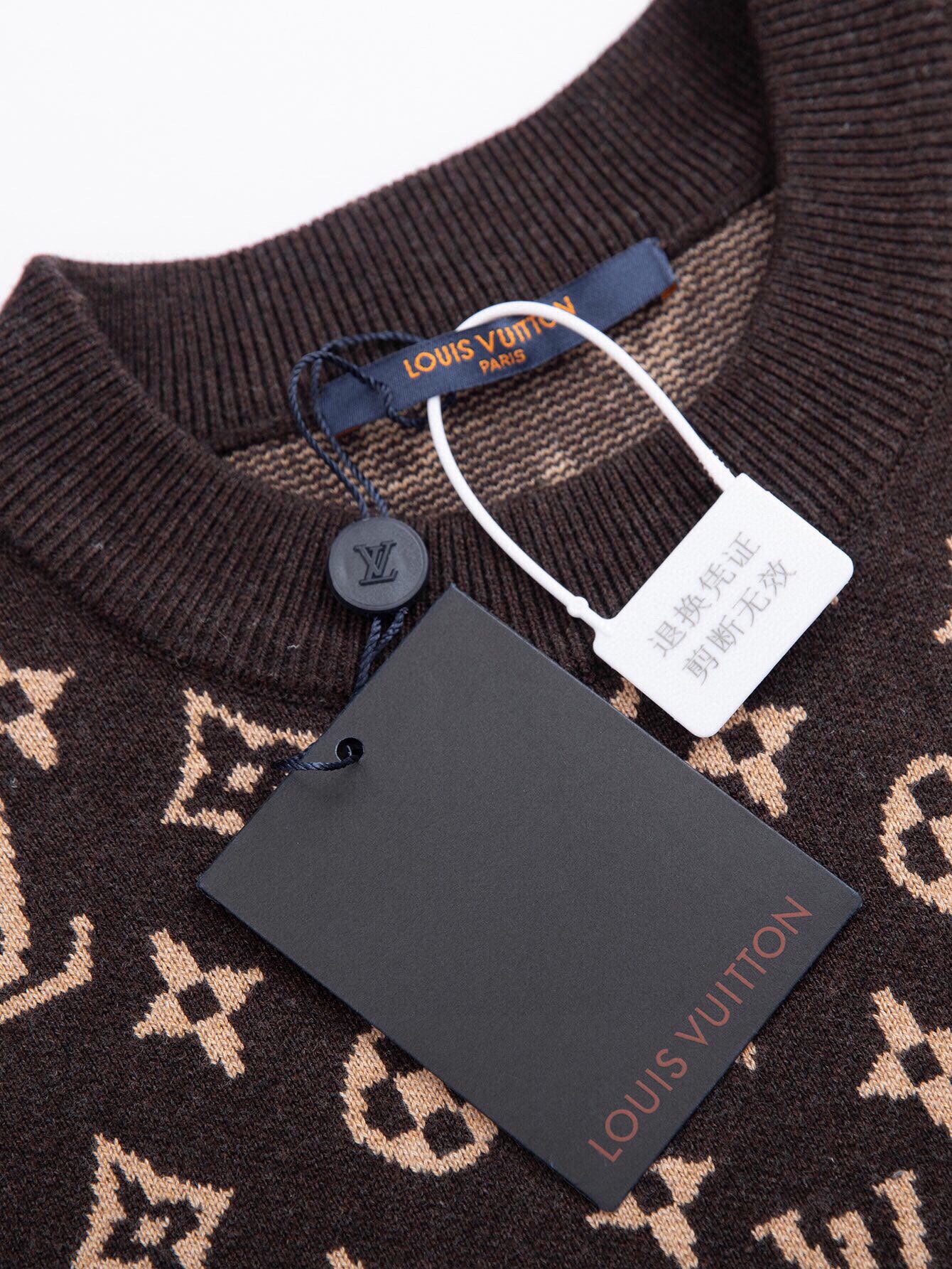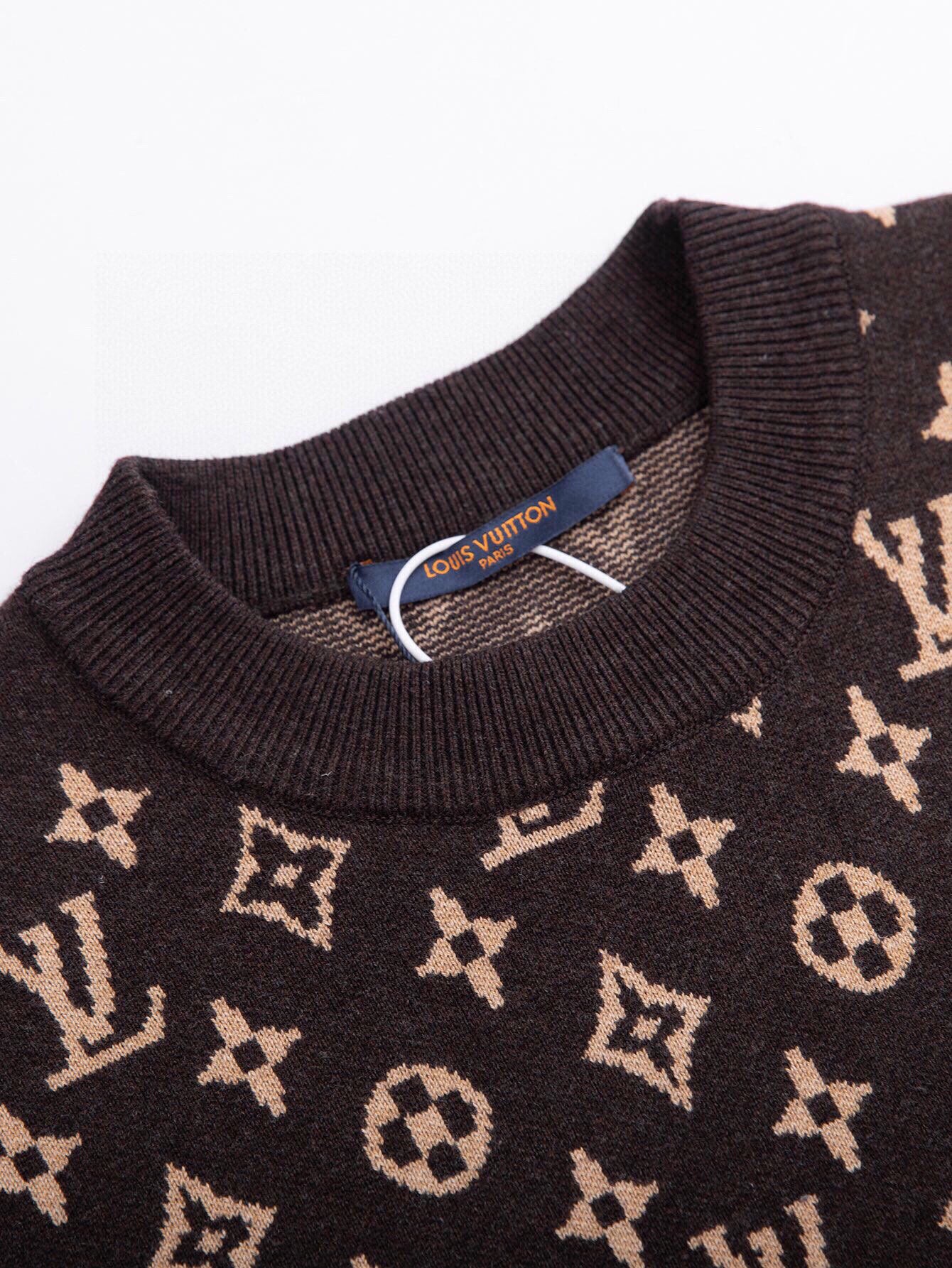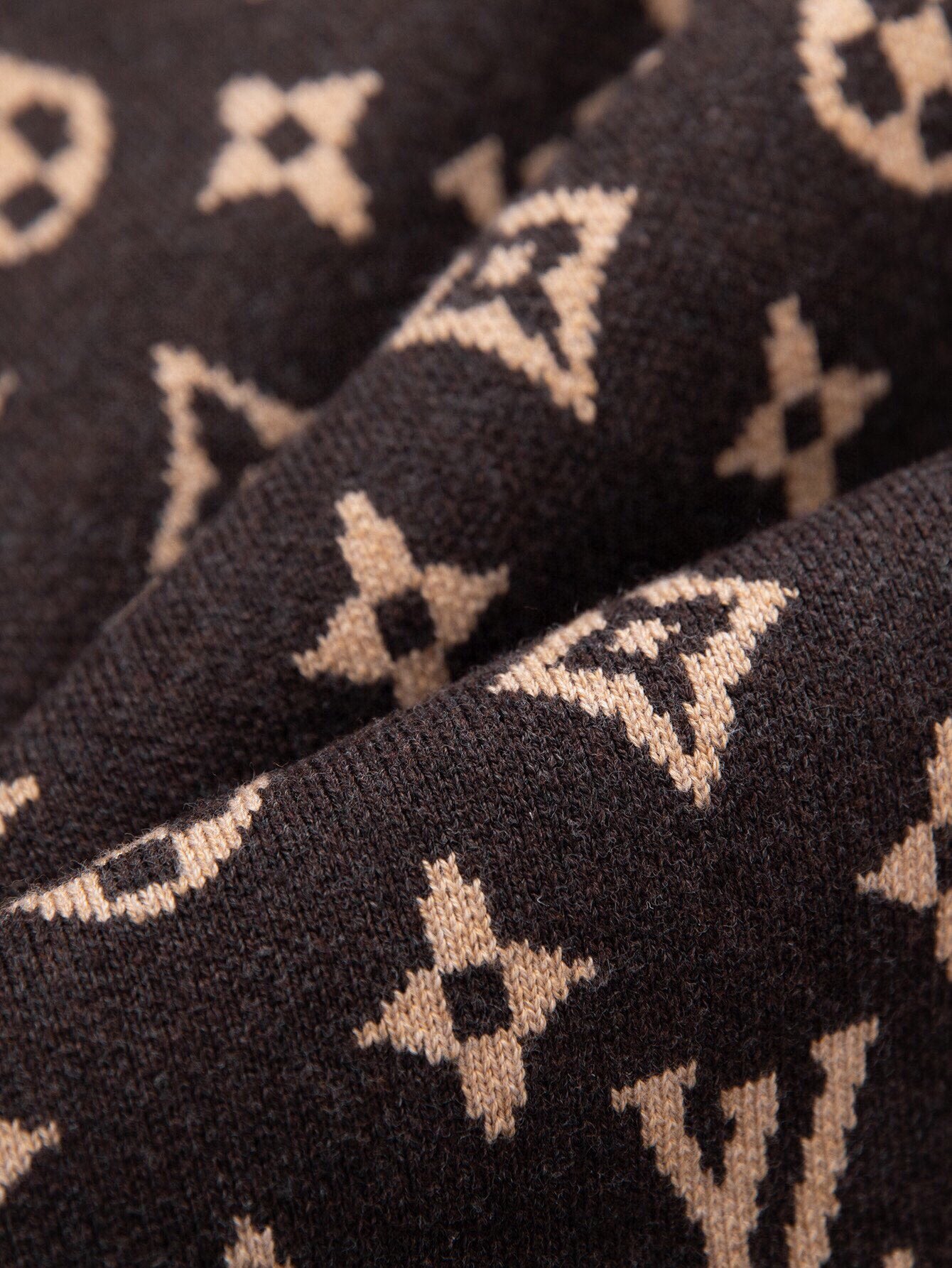 Elevate your wardrobe with the Louis Vuitton Classic Wool Four-Leaf Clover Jacquard Crew Neck Sweater. Crafted with a luxurious blend of 90% custom-dyed wool, this sweater features a striking four-leaf clover jacquard design, perfect for both men and women. Each thread is meticulously dyed in the same vat to ensure uniform color and quality, making this piece a standout in any collection. Available in an elegant coffee black, this sweater offers a versatile addition to your stylish ensemble. Choose from sizes S, M, L, and XL to find your perfect fit. Experience the unmatched quality and sophistication that only Louis Vuitton can deliver.