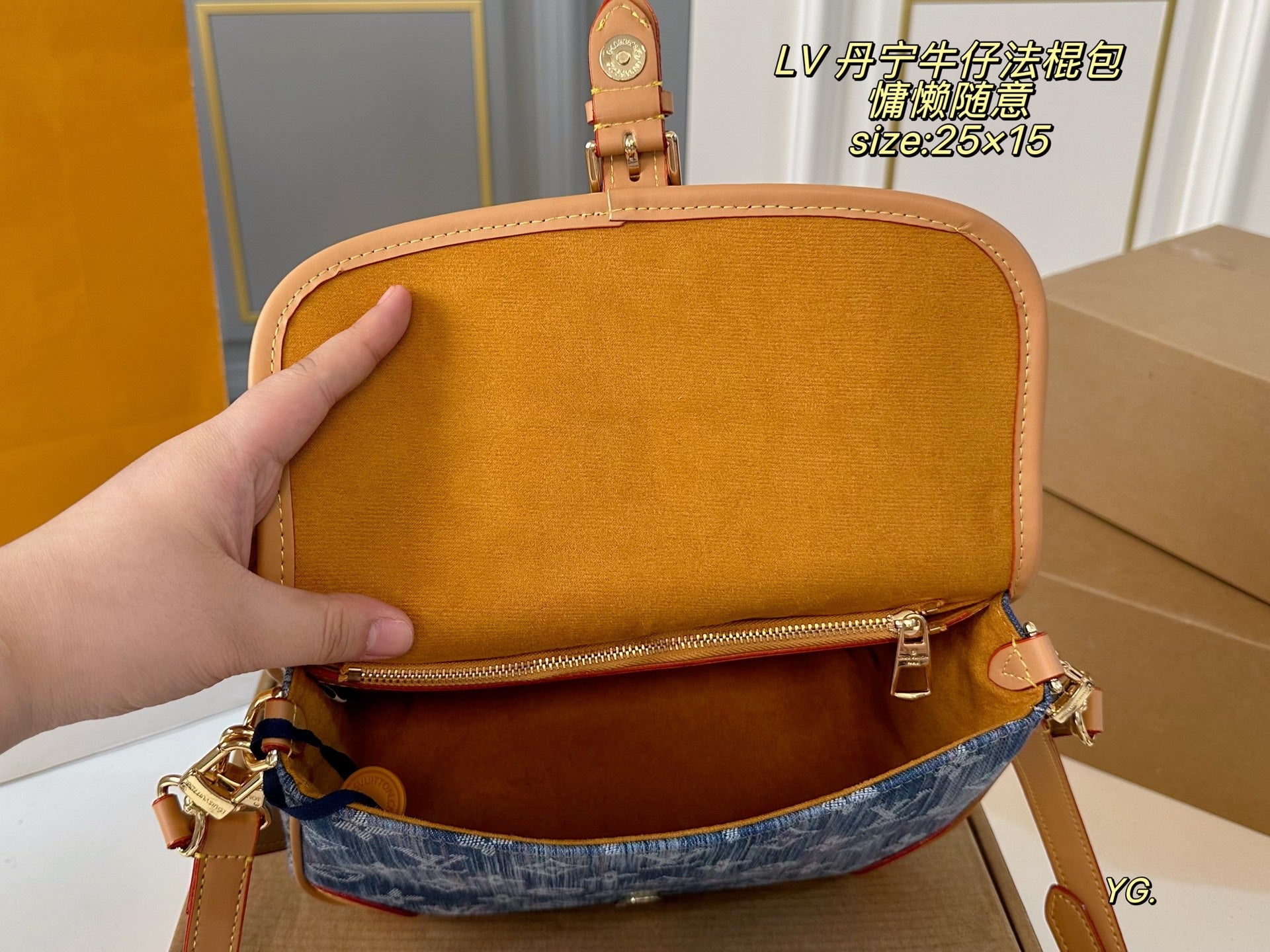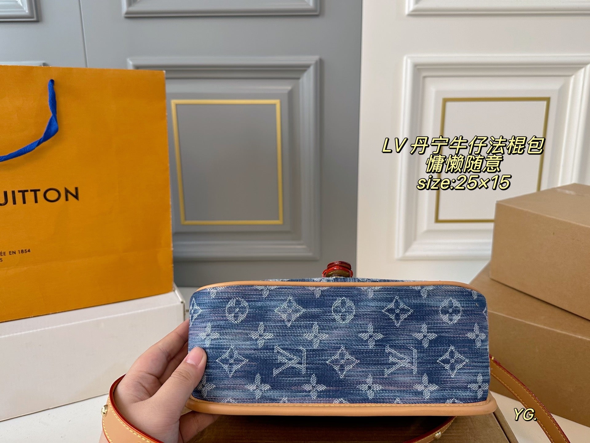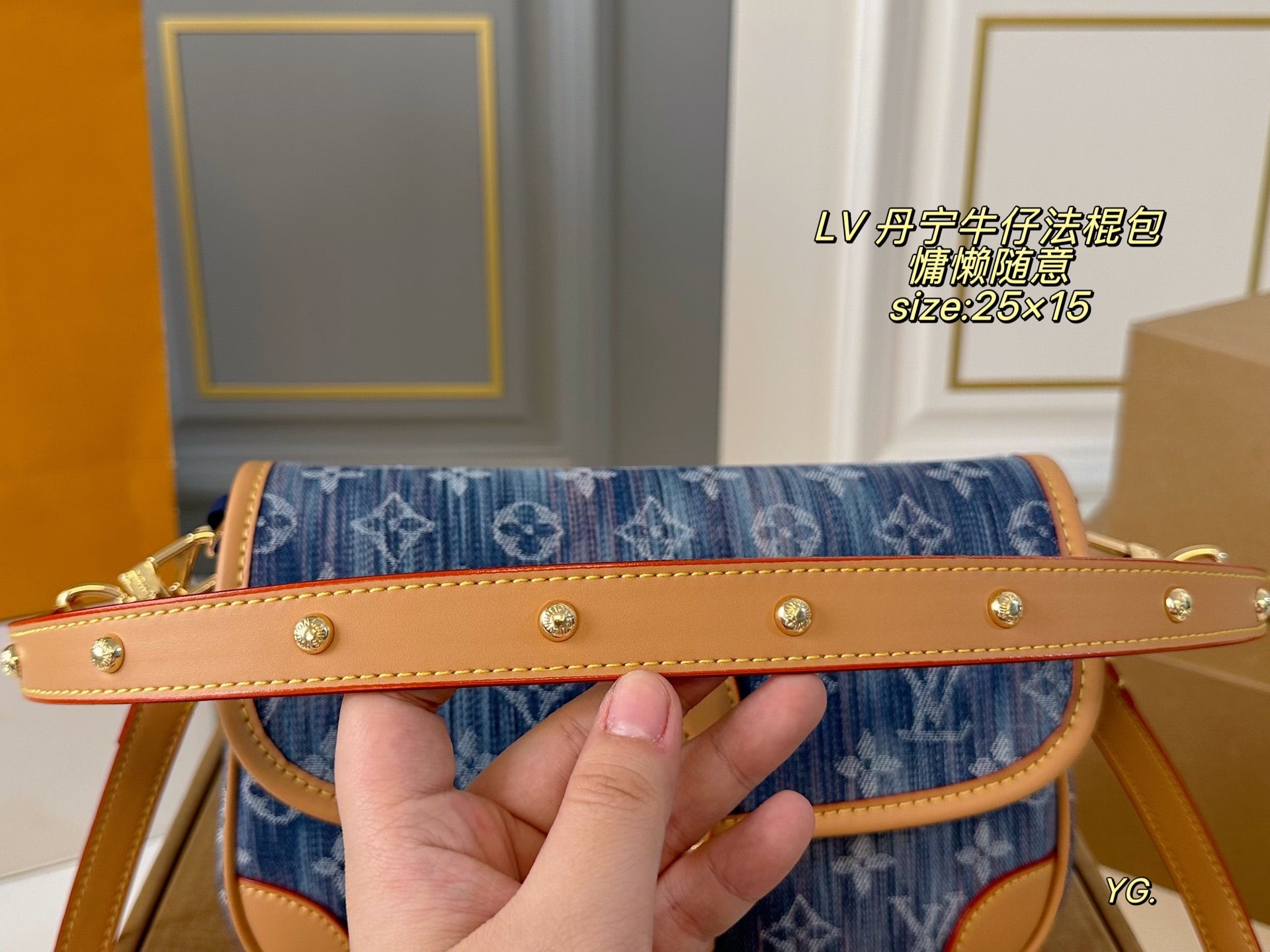 Elevate your style with the Louis Vuitton Denim Baguette Bag, measuring 25×15 cm. This versatile bag features two shoulder straps for your convenience: a chic armpit strap and a stylish crossbody option. The retro belt buckle design adds a classic touch, making it both practical and fashionable. Its minimalist silhouette allows for effortless styling, whether you prefer a salty or sweet look. Perfect for casual outings!