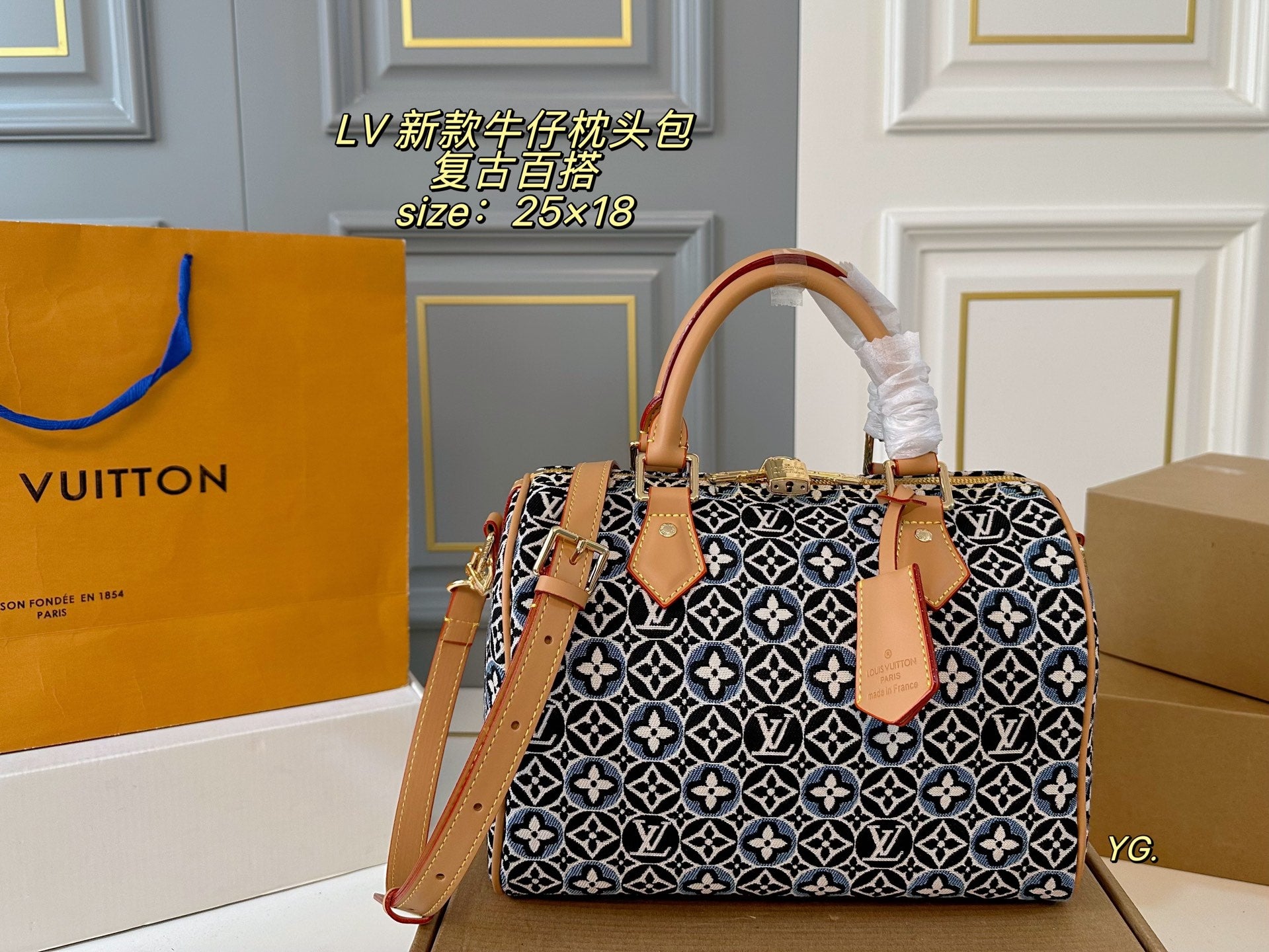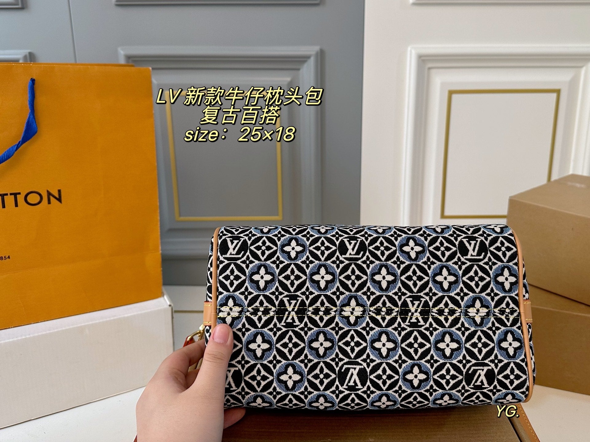 Introducing the Louis Vuitton Denim Pillow Bag, meticulously designed in a stylish folding box size of 25×18 cm. Embrace the resurgence of retro fashion with this eye-catching accessory, available in a stunning hue that seamlessly combines style and practicality.