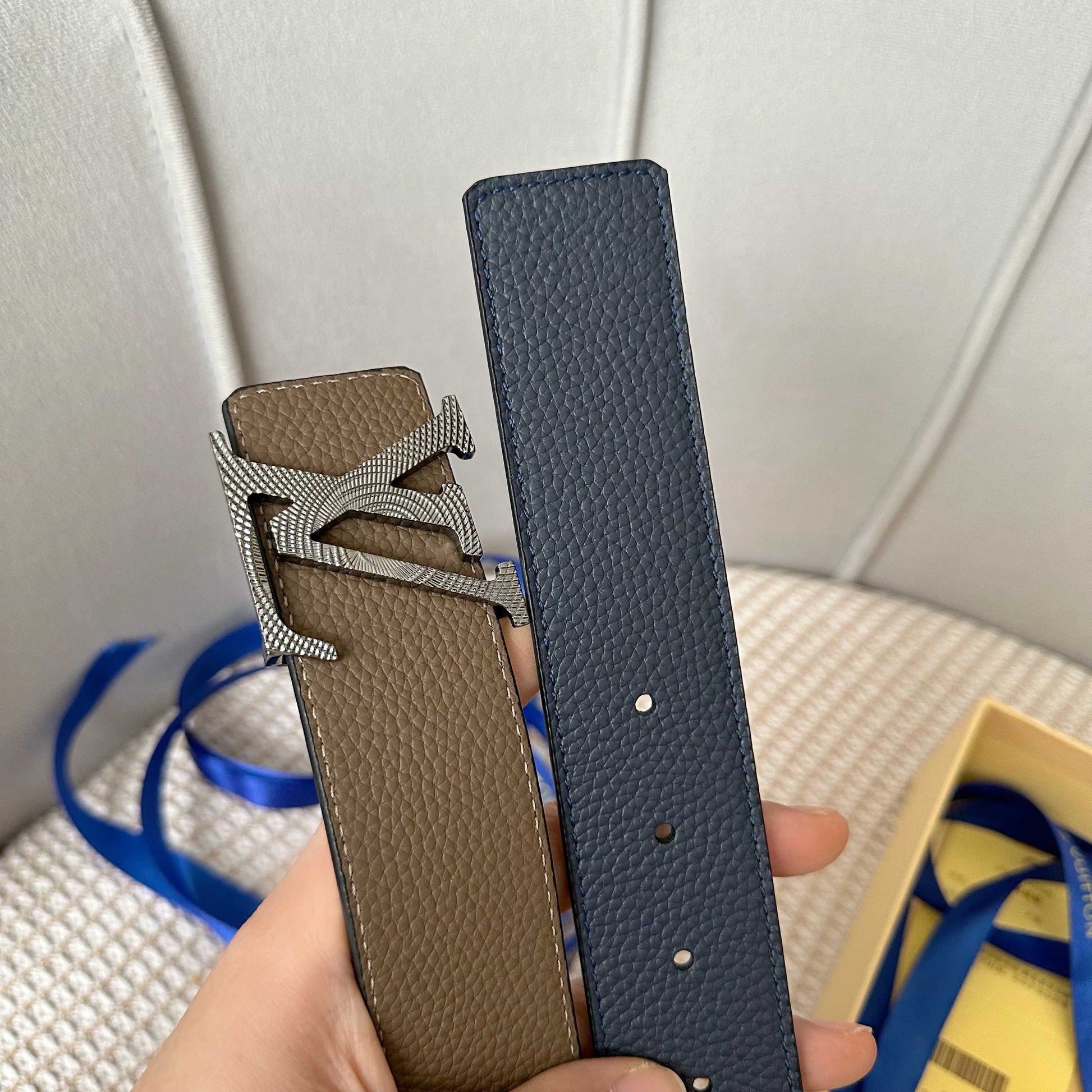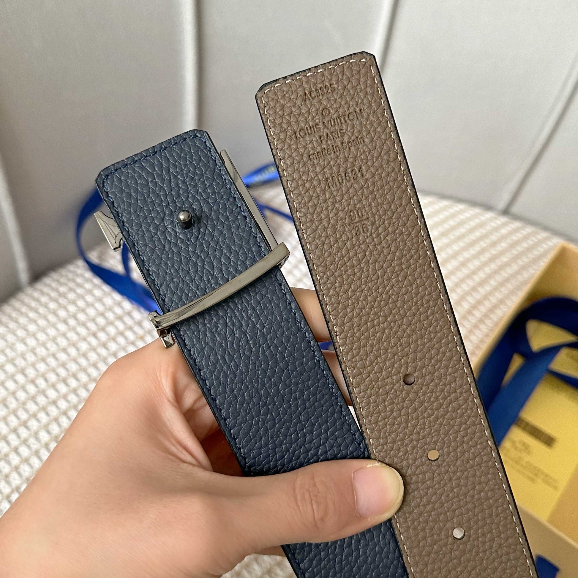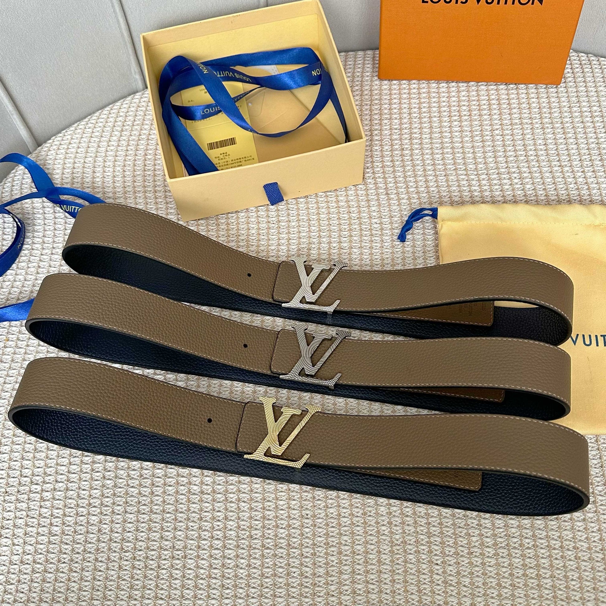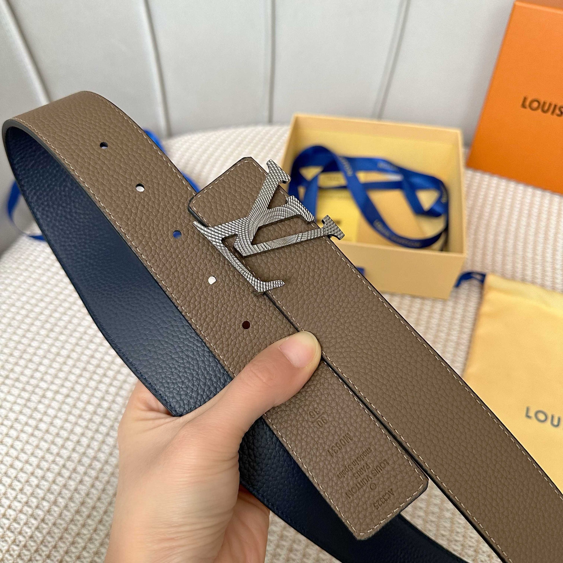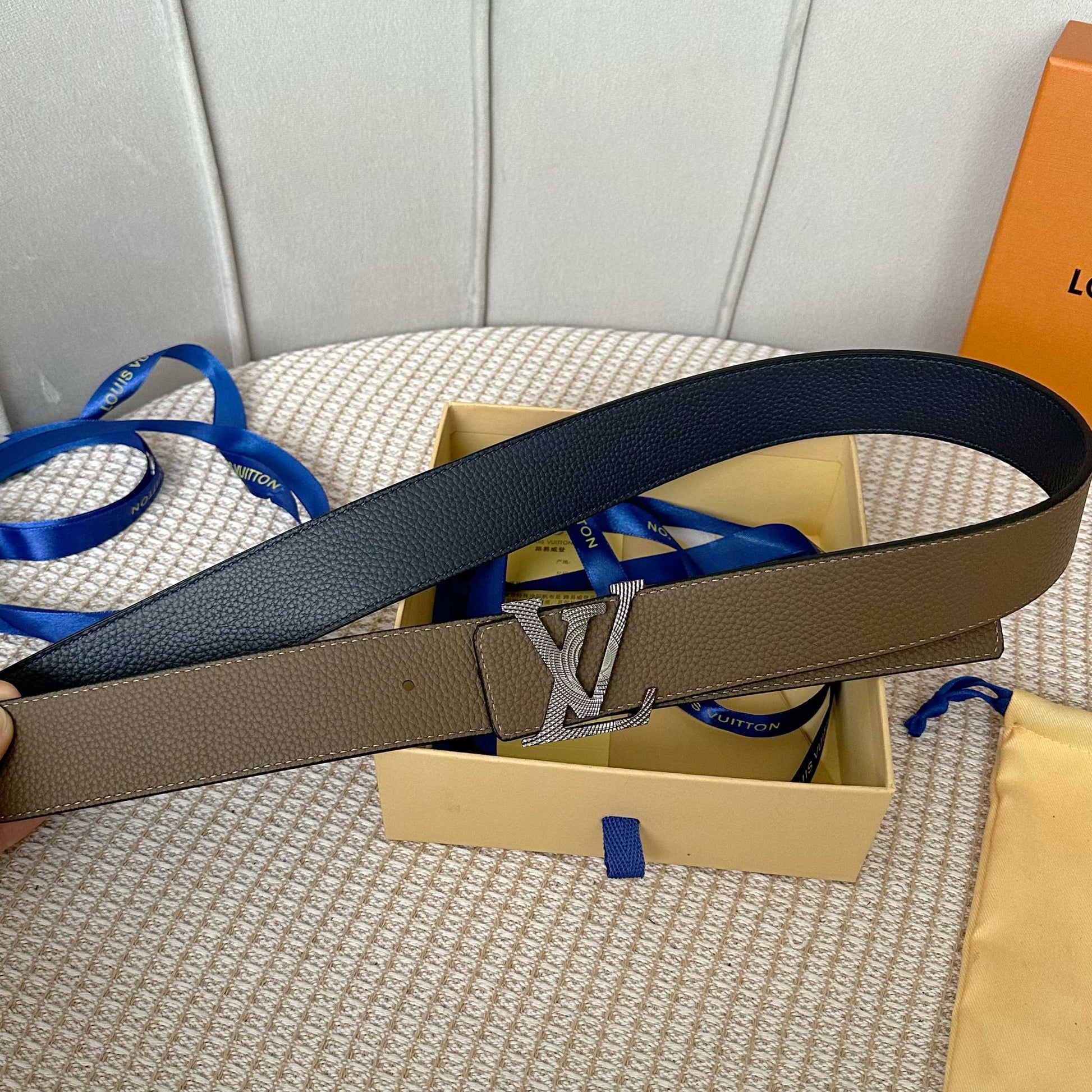Discover the latest upgrade from Louis Vuitton with this 40mm wide belt crafted from premium double-sided Togo leather. Featuring a chic two-tone design, it is adorned with a stylish new monogram buckle, making it a versatile accessory that can be worn on both sides. Perfectly blending functionality and elegance, this belt is easy to pair with any outfit, adding a touch of luxury to your wardrobe.