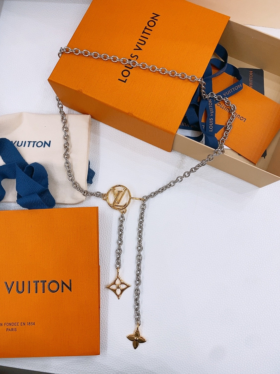 Elevate your style with the Louis Vuitton Floral Chain Belt, a limited-edition accessory that beautifully blends sophistication and femininity. Adorned with iconic LV letters and Monogram flowers, the intricate metal chain link is enhanced by a stunning round Monogram flower detail at the end. Perfect for adding a touch of elegance to jackets, dresses, or jeans, this adjustable belt allows you to find the ideal fit effortlessly. With a total length of 105cm, this exquisite piece is a must-have for fashion-forward individuals. Embrace luxury and make a statement with the Louis Vuitton Floral Chain Belt.