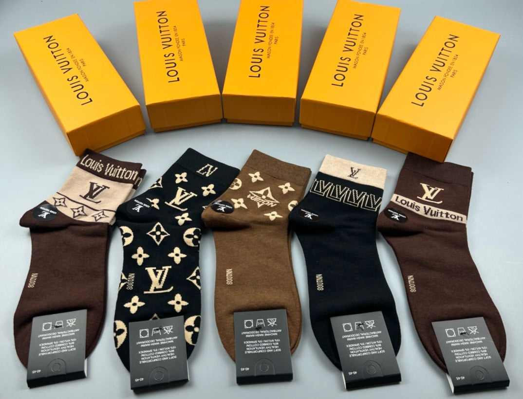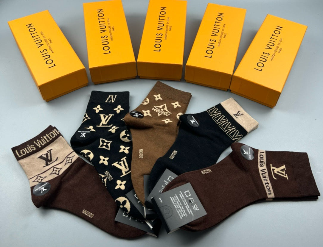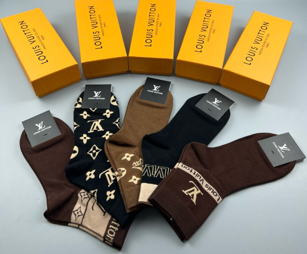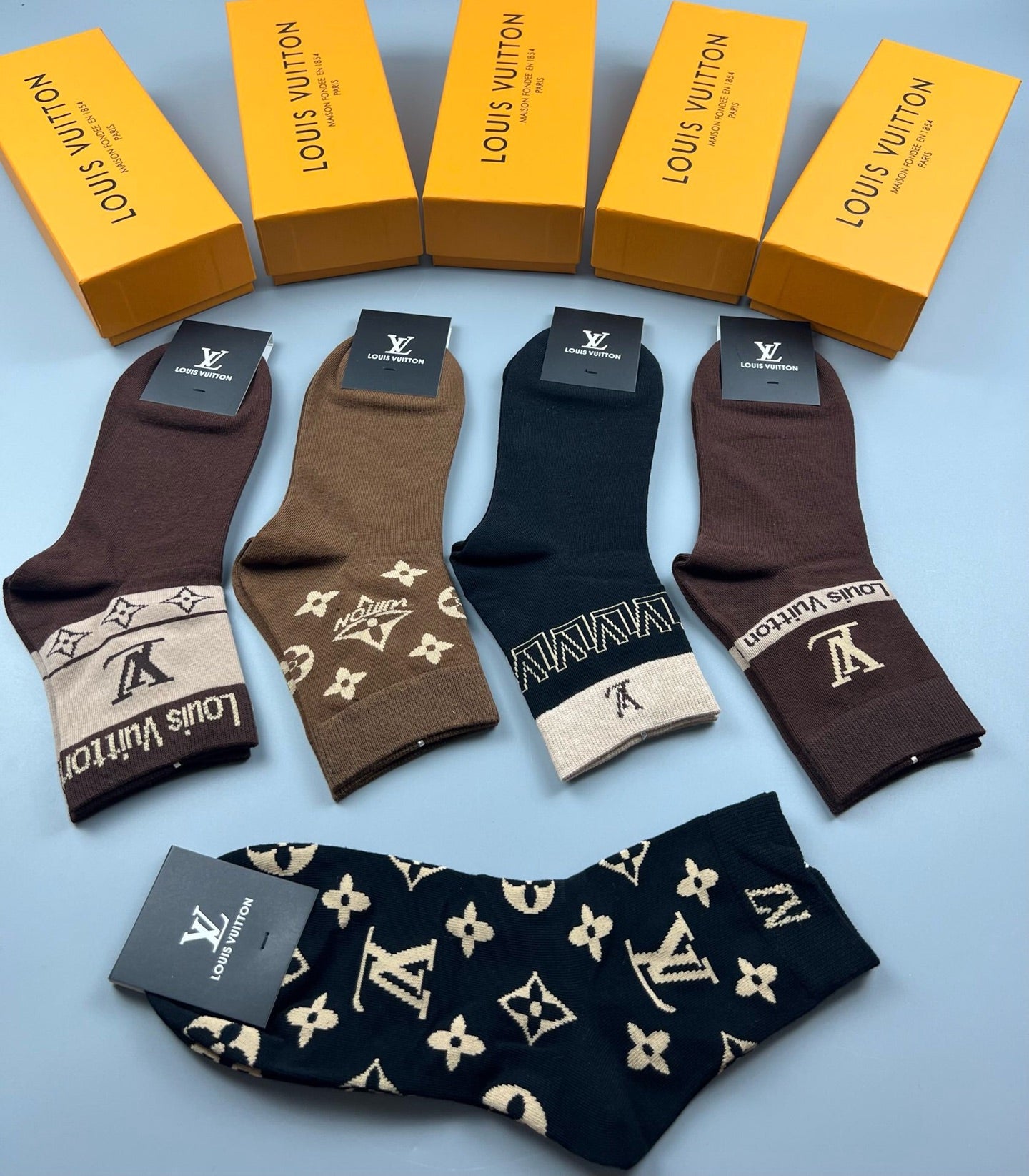 Louis Vuitton Inspired Cotton Socks - Set of 5 Pairs