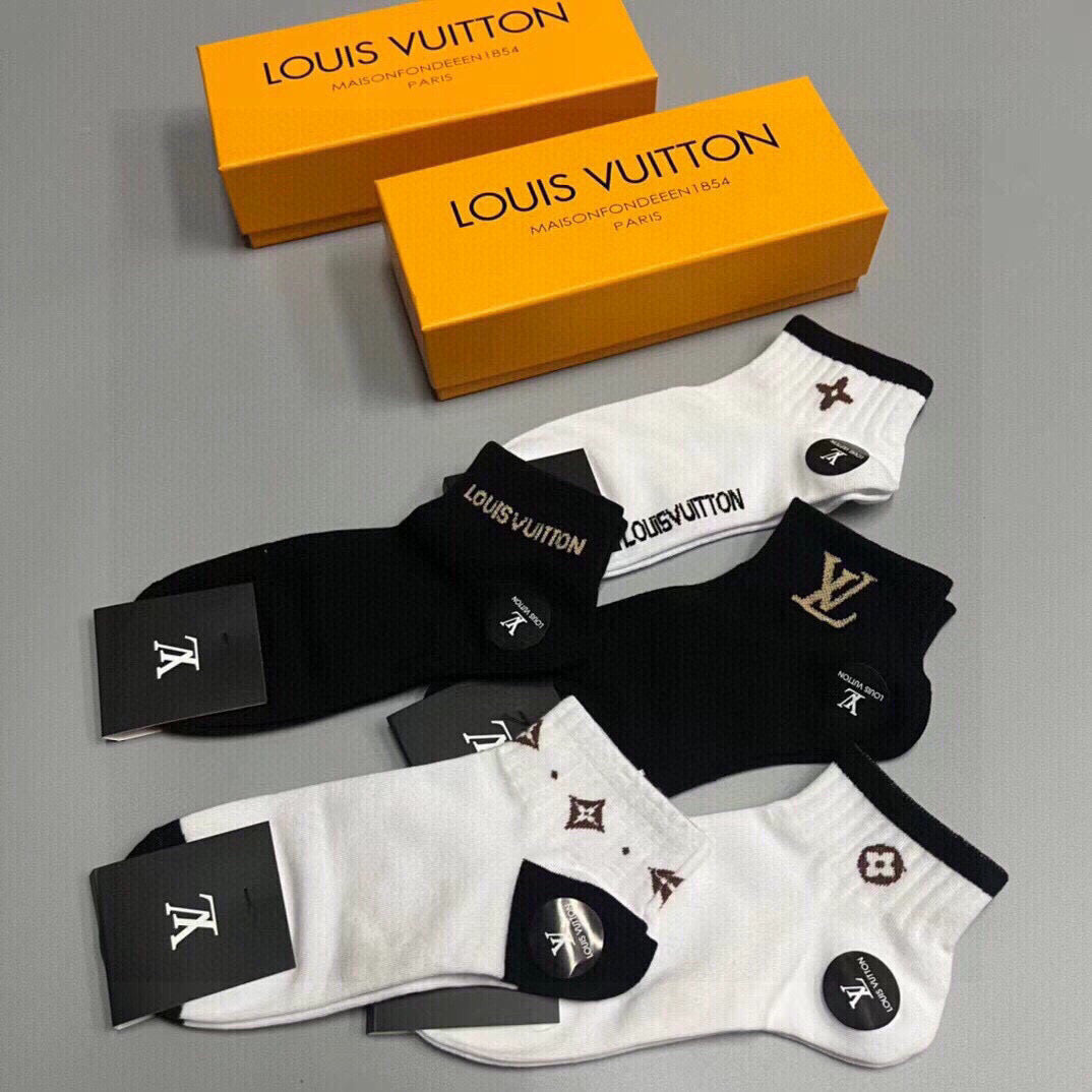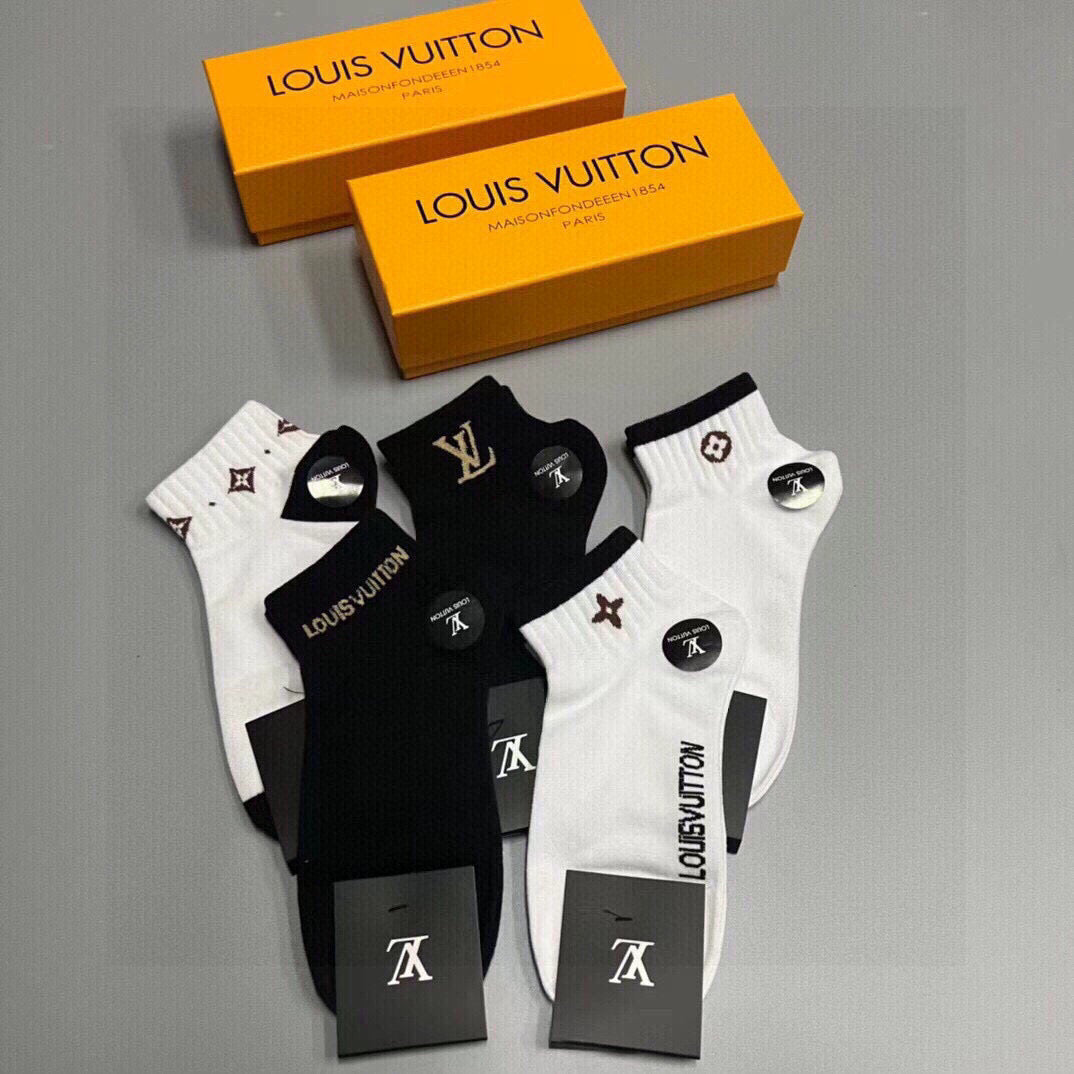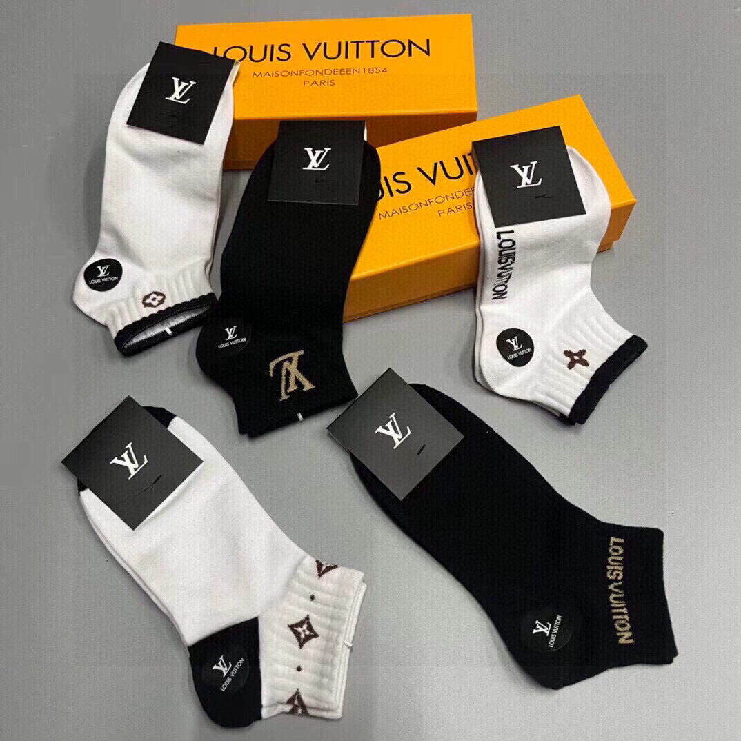 Elevate your style with this exclusive set of Louis Vuitton men's jacquard socks, featuring the iconic LV logo. Crafted from 100% pure cotton, these socks are designed for breathability and comfort, making them the perfect accessory for any fashion enthusiast. Each box contains five pairs, ensuring you have stylish options for every occasion. Effortlessly pair them with your favorite outfits and make a statement wherever you go. A must-have addition to your wardrobe!