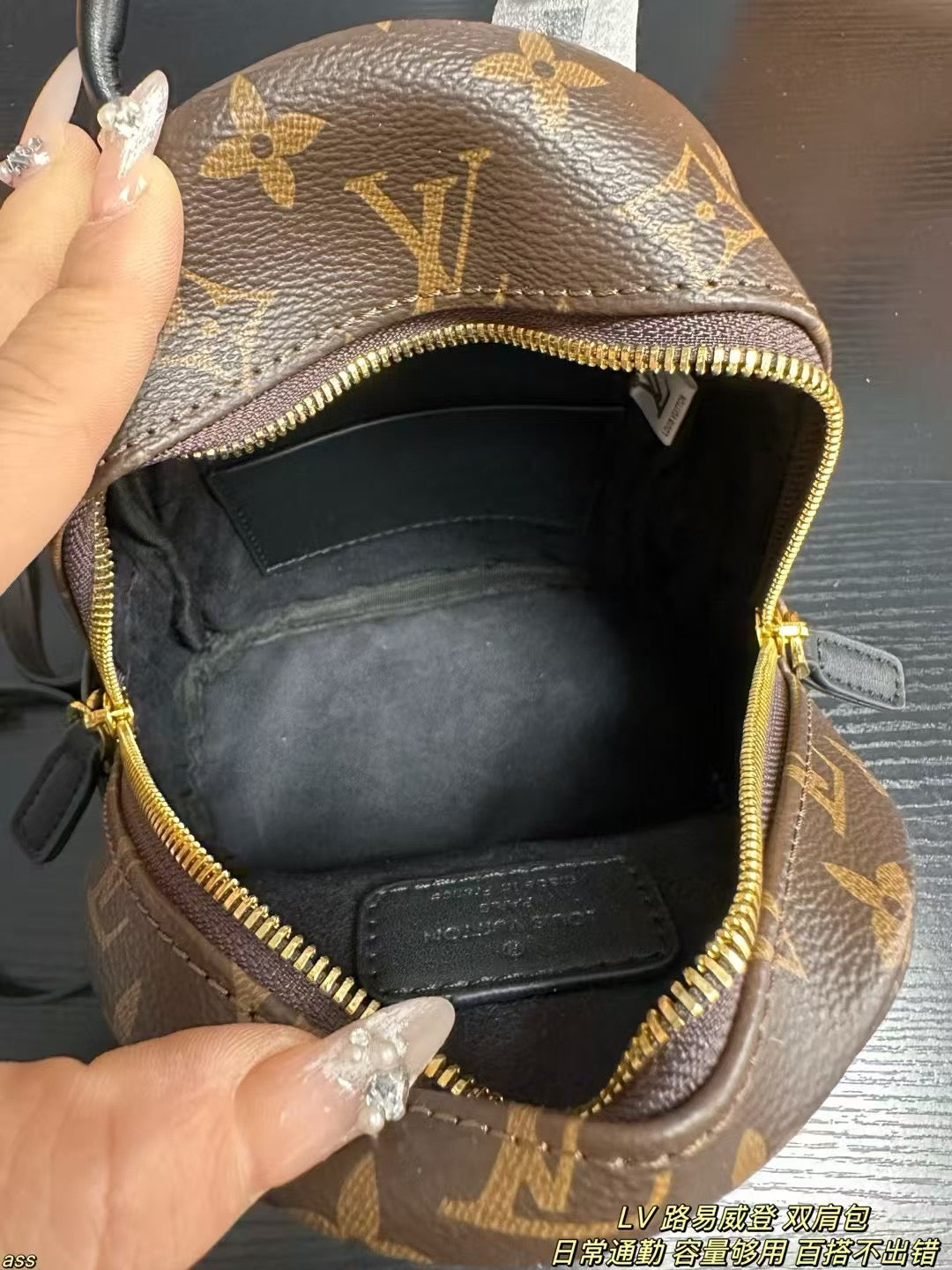 Discover the charm of the Louis Vuitton Palm Springs Mini Backpack, a stylish accessory that beautifully combines practicality with a petite design. Measuring 17 x 20 cm, this bag is perfect for those who appreciate a cute yet functional style. Its compact size allows for efficient organization, accommodating essentials such as a small cosmetic bag, charging cables, and your smartphone. Whether you're on a casual outing or simply running errands, this backpack offers both elegance and convenience in one sophisticated package. **Please note: This item does not come with a box.**