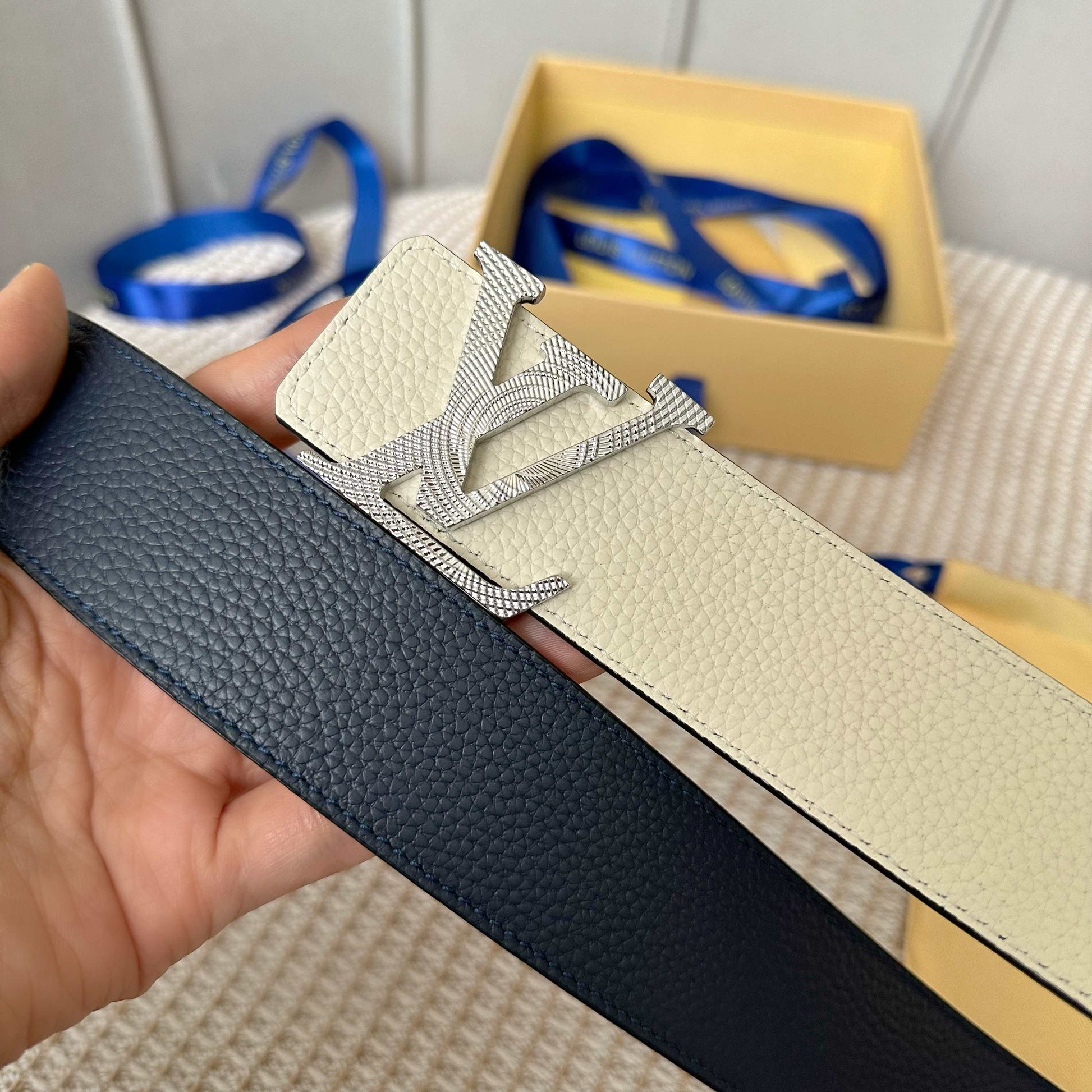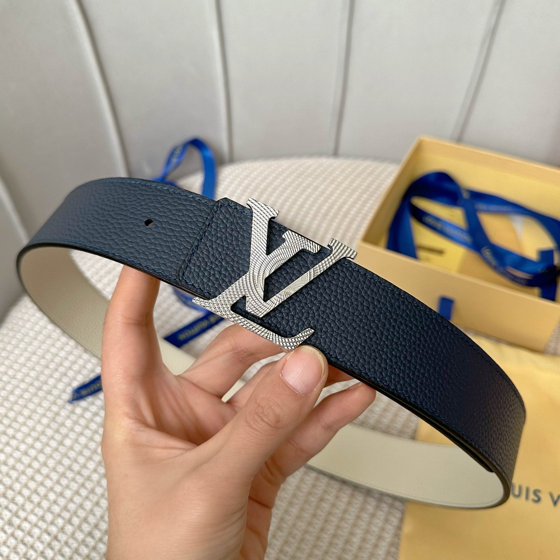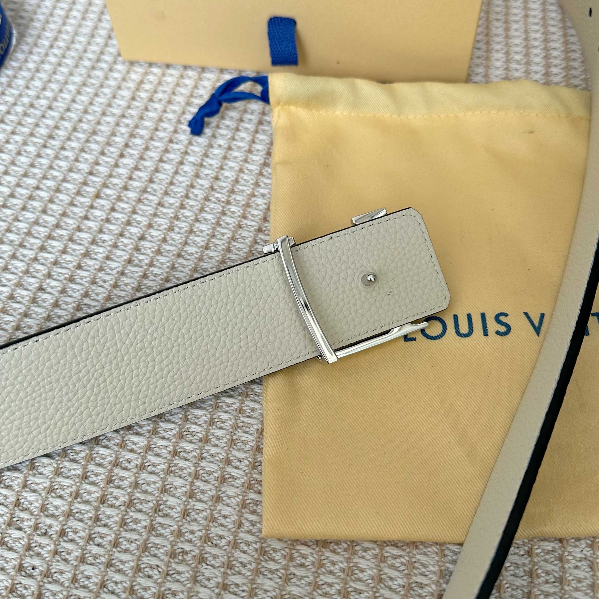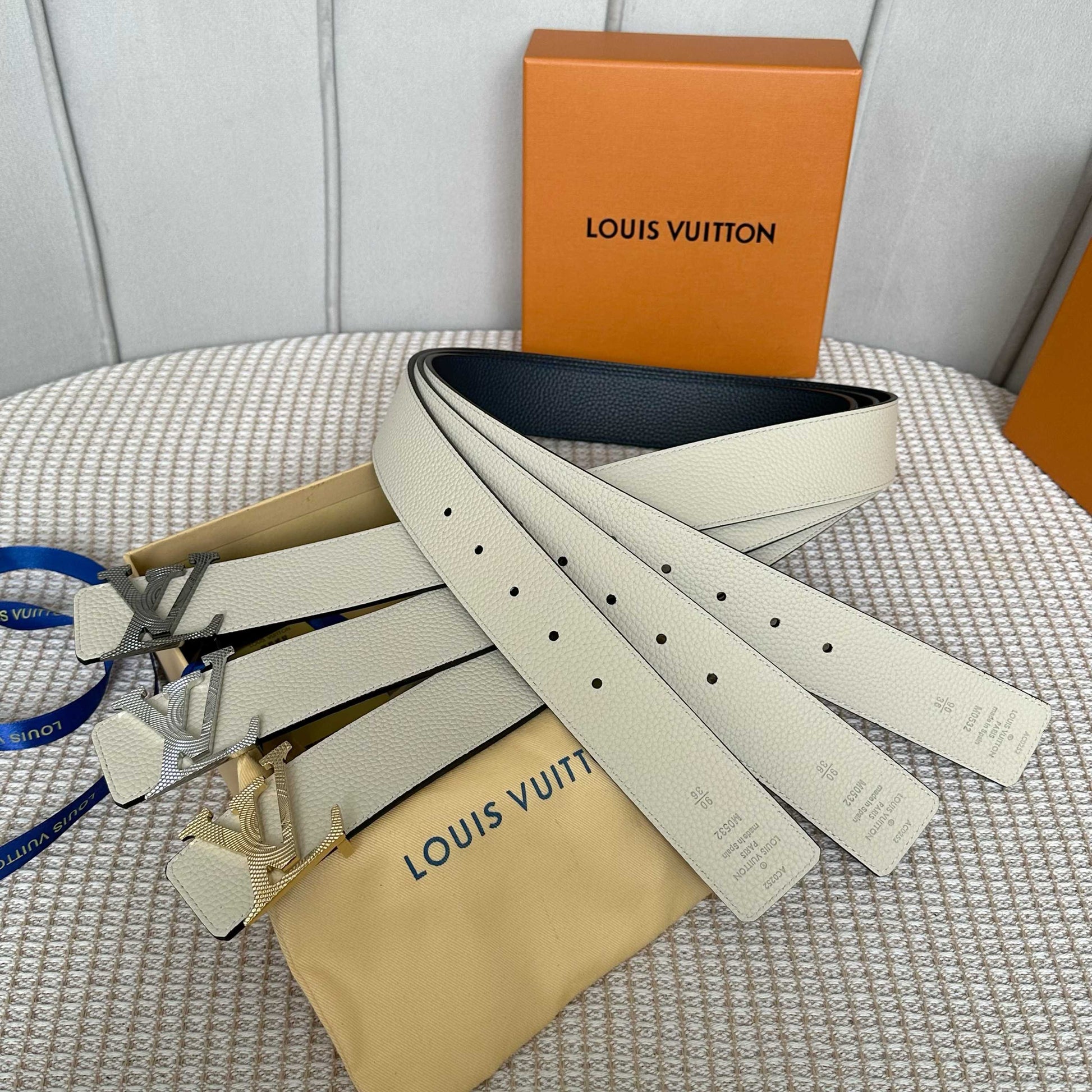 Discover the latest upgraded version of the Louis Vuitton reversible belt. Crafted from premium dual-sided Togo leather with a soft grain texture, this 40mm wide belt features a stylish new logo buckle for easy adjustments. Enjoy versatility with its double-sided design, allowing you to effortlessly switch up your look to match any outfit. A must-have accessory that combines luxury and functionality, making it the perfect complement to any wardrobe.