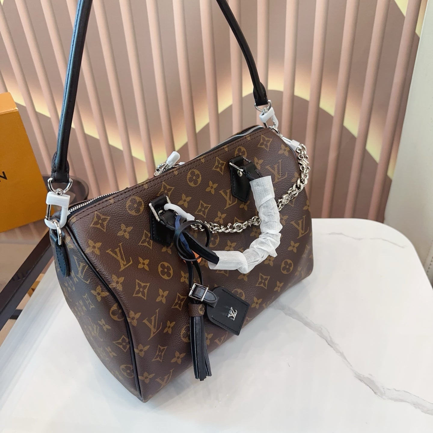 Elevate your accessory collection with the Louis Vuitton Speedy Boston Pillow Bag. This stylish piece combines a classic silhouette with modern functionality. Measuring 32cm x 22cm, it's lightweight and perfect for everyday use. The adjustable and detachable shoulder strap allows for versatile styling options, making it both portable and fashionable. Each bag comes beautifully packaged in a folding gift box, making it a perfect gift for yourself or a loved one. Experience the timeless elegance of Louis Vuitton with this must-have accessory.