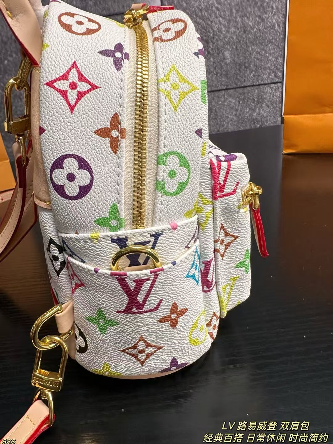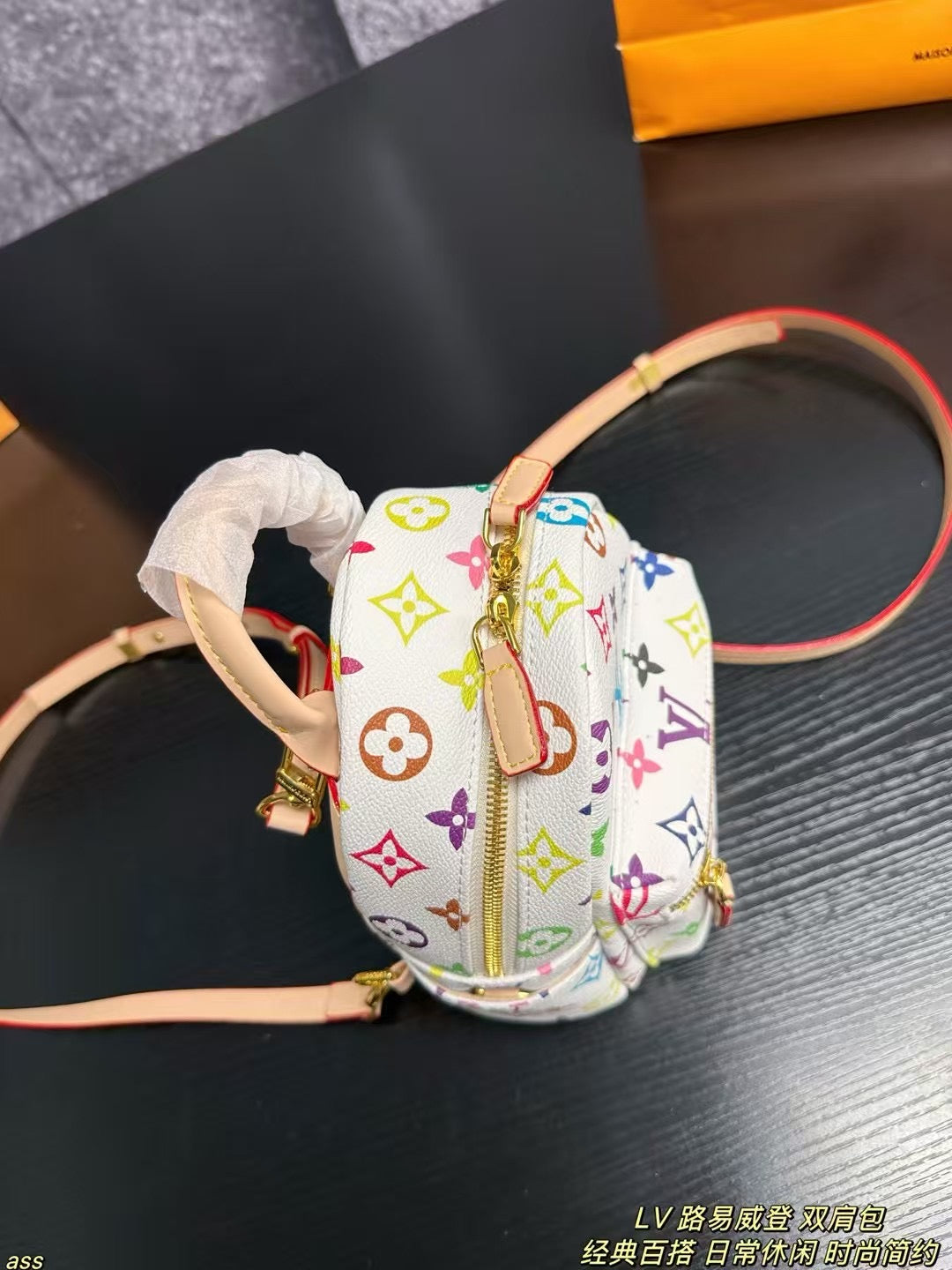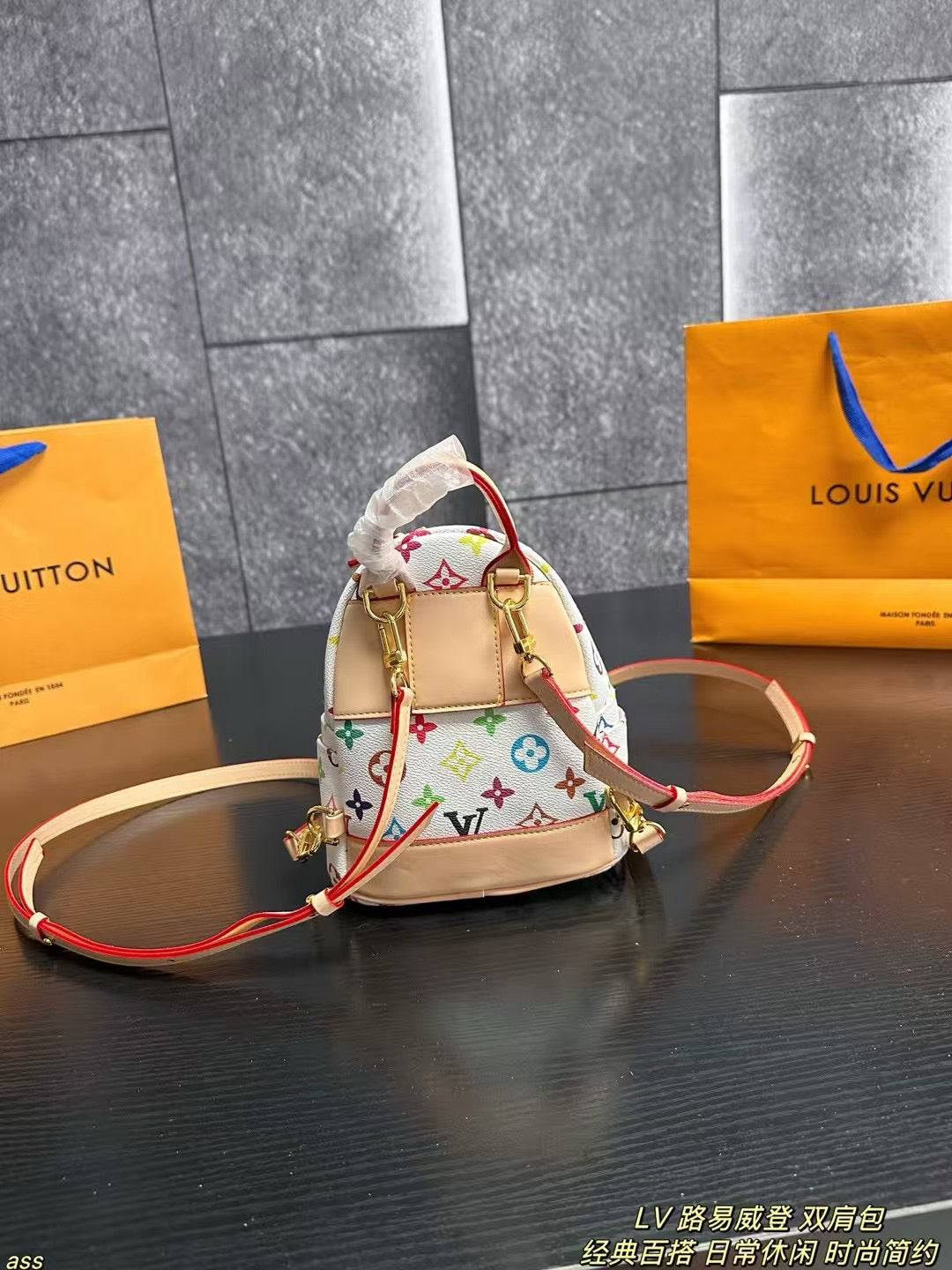 Elevate your style with the Louis Vuitton Tricolor Backpack in white. This stunning piece features a classic LV design, celebrating vibrant hues that capture a lively and romantic French aesthetic. Perfect for those on-the-go, this backpack is both practical and stylish, making it an ideal choice for students or anyone looking for a chic accessory. With dimensions of 17x20cm, it seamlessly combines functionality with elegance. Embrace art and sophistication with every adventure.