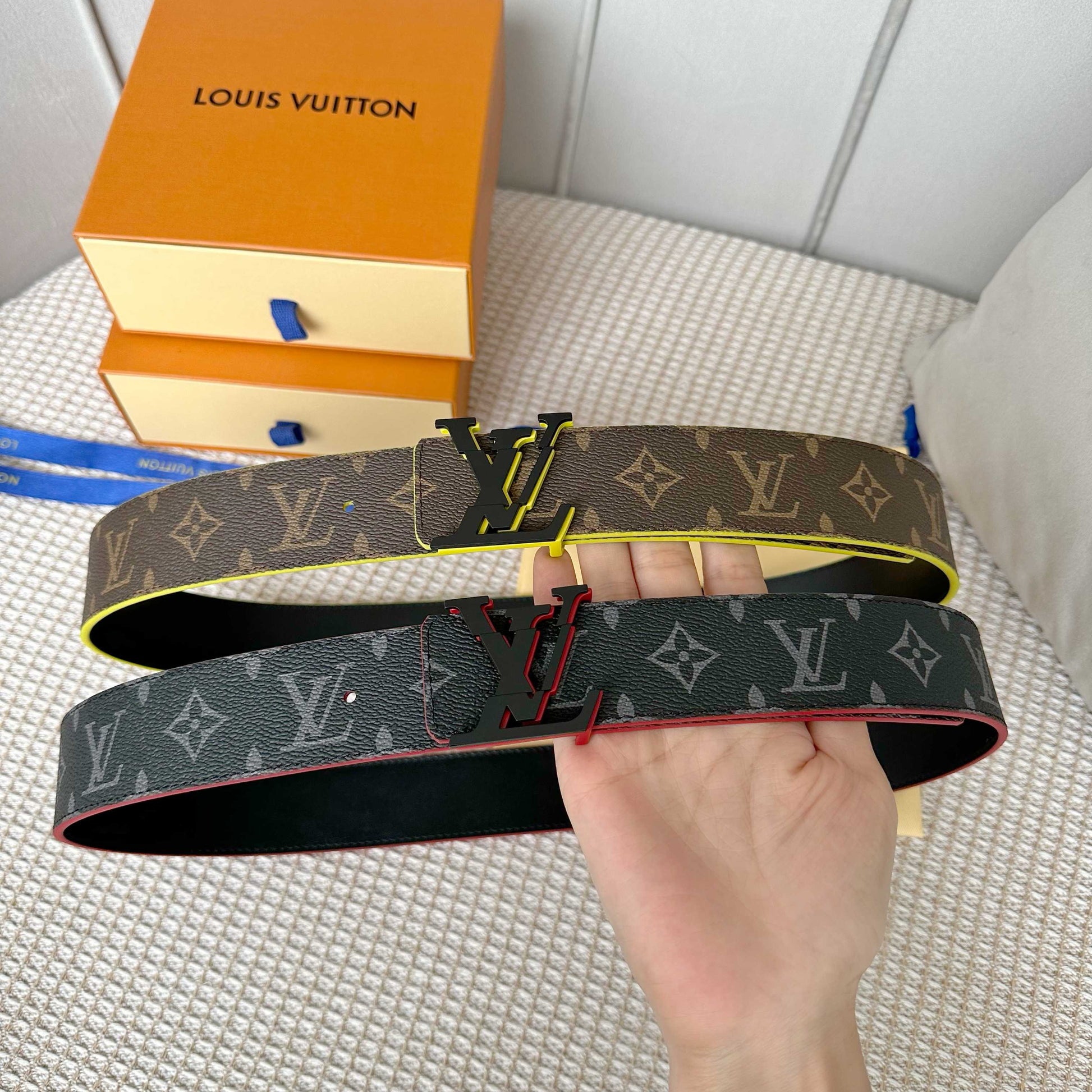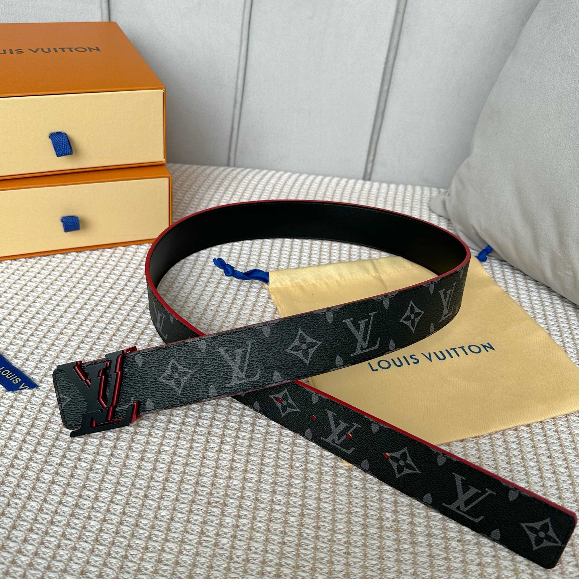 Discover the latest upgraded version of the Louis Vuitton belt, meticulously crafted with a 40mm width to elevate your style. This sophisticated accessory features premium custom canvas fabric, complemented by a luxurious imported calfskin base and a sleek stainless steel buckle. The stylish multicolored edge finishing adds a trendy touch, making it perfect for any occasion. Enjoy versatility with its reversible design, ensuring you can effortlessly switch styles. A timeless, classic piece that seamlessly fits into any wardrobe!