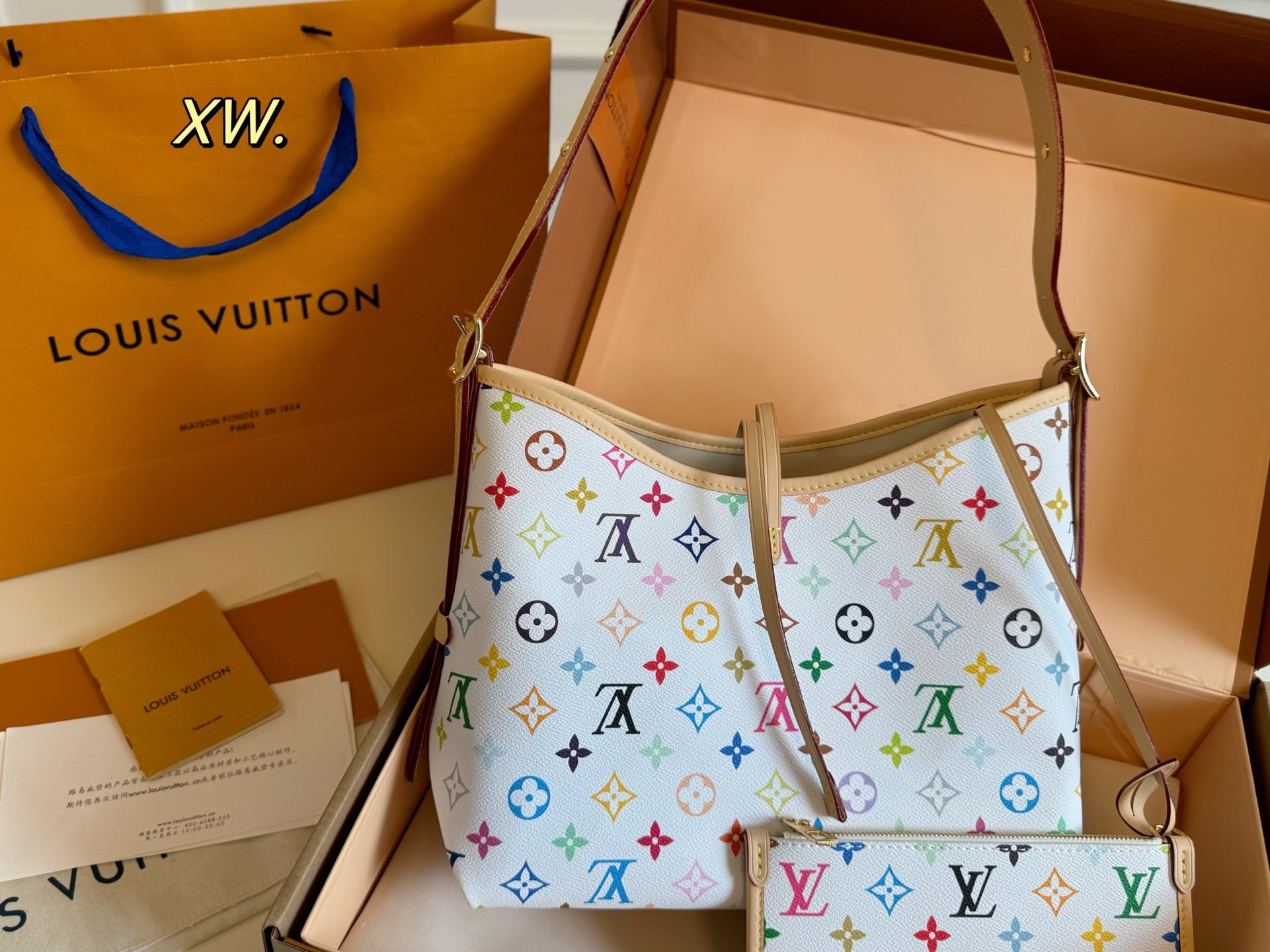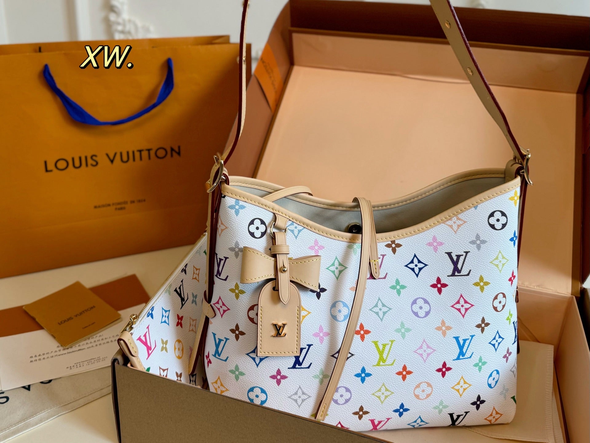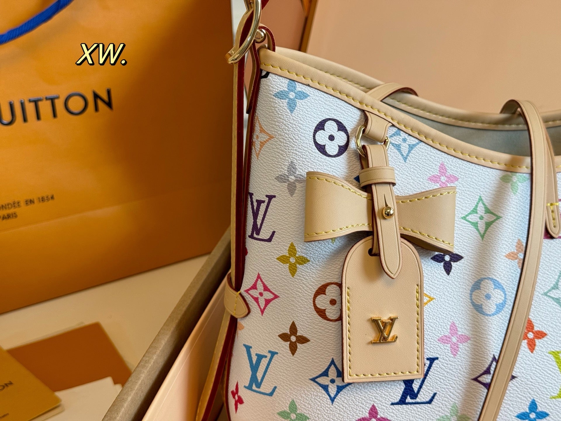 Introducing the Louis Vuitton Carryall Shopping Bag, your new go-to accessory for style and practicality. Measuring 29 x 25 cm, this elegant armpit bag features a chic bow, making it perfect for any occasion. Designed to easily complement a smaller handbag, it includes a convenient magnetic buckle for effortless access.