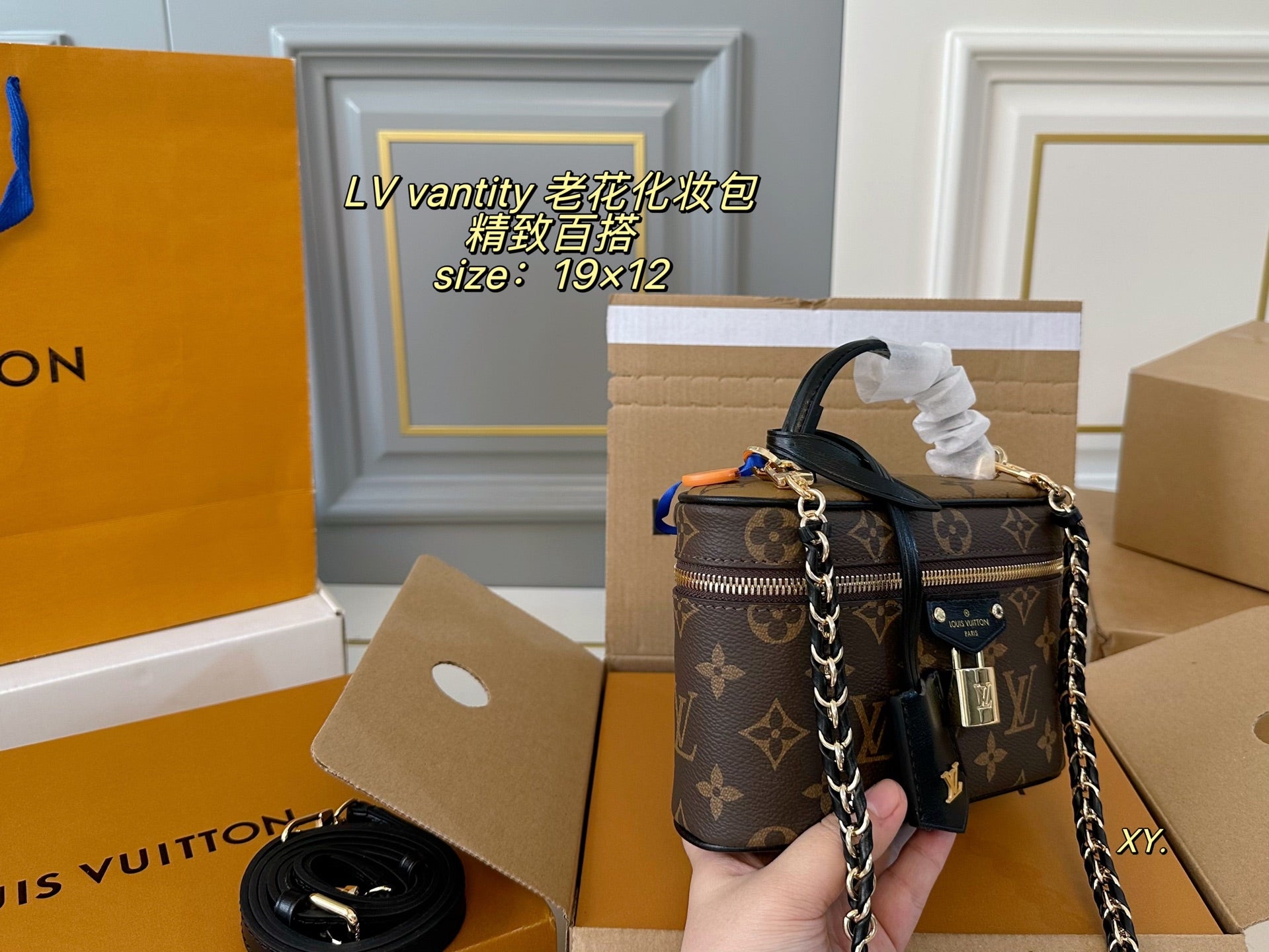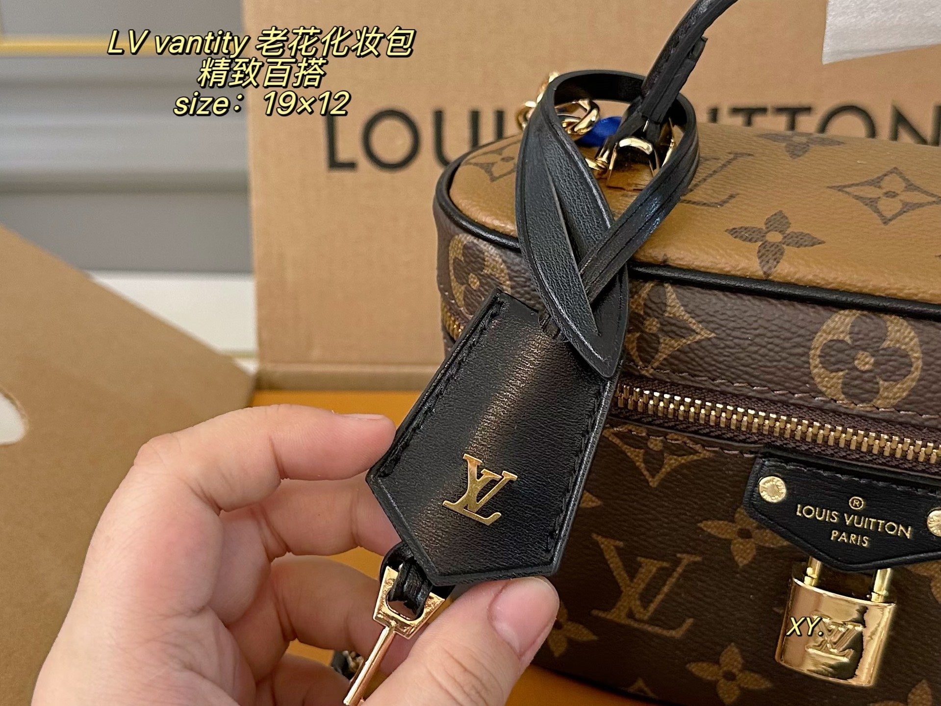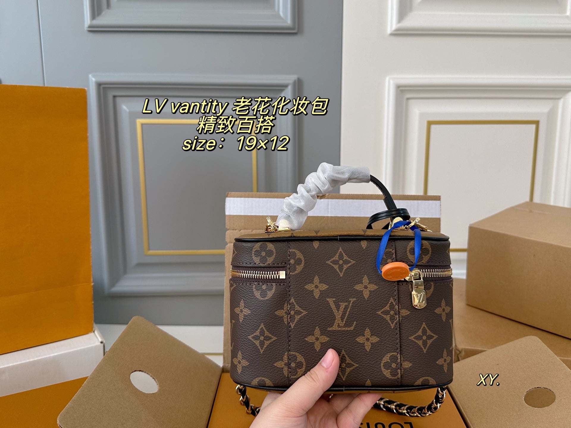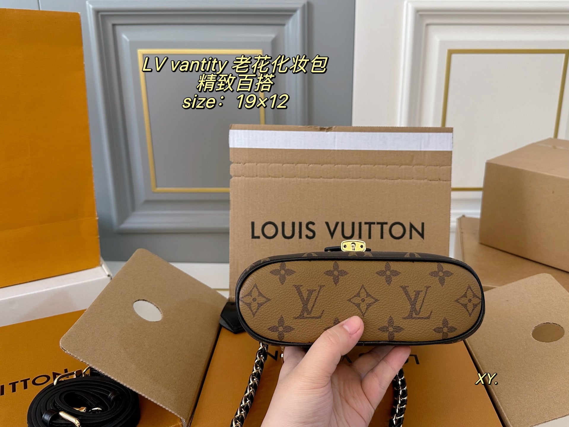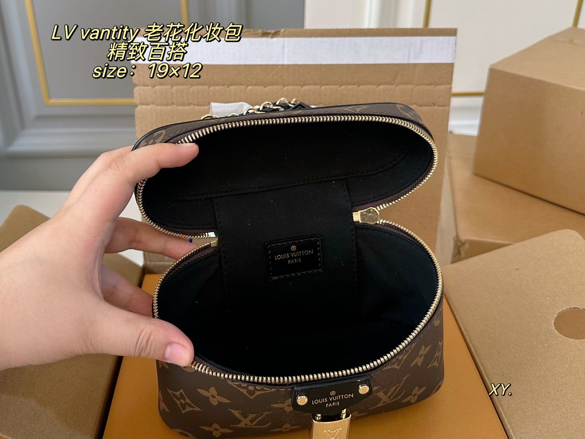 Elevate your elegance with the LV Louis Vuitton Vanity Cosmetic Bag, a perfect blend of classic style and modern functionality. Crafted from soft, high-quality leather, this compact bag measures 19×12 cm and offers impressive storage capacity for all your beauty essentials.