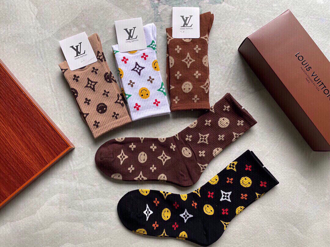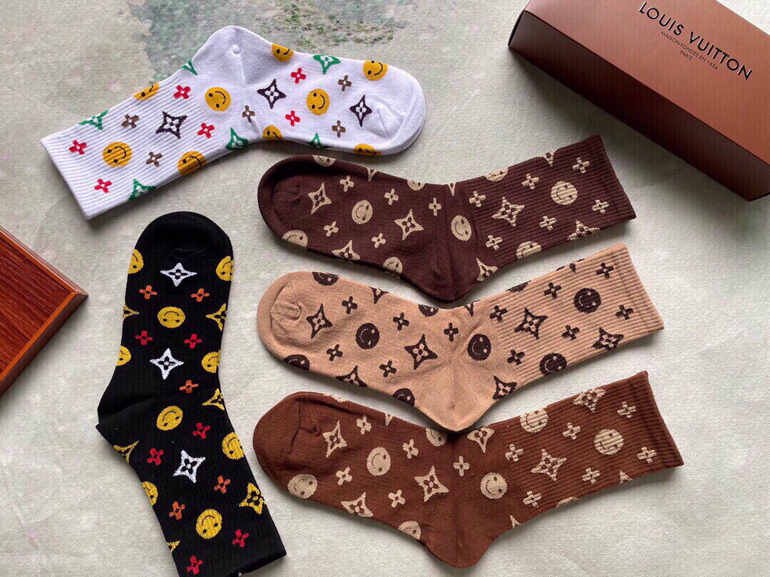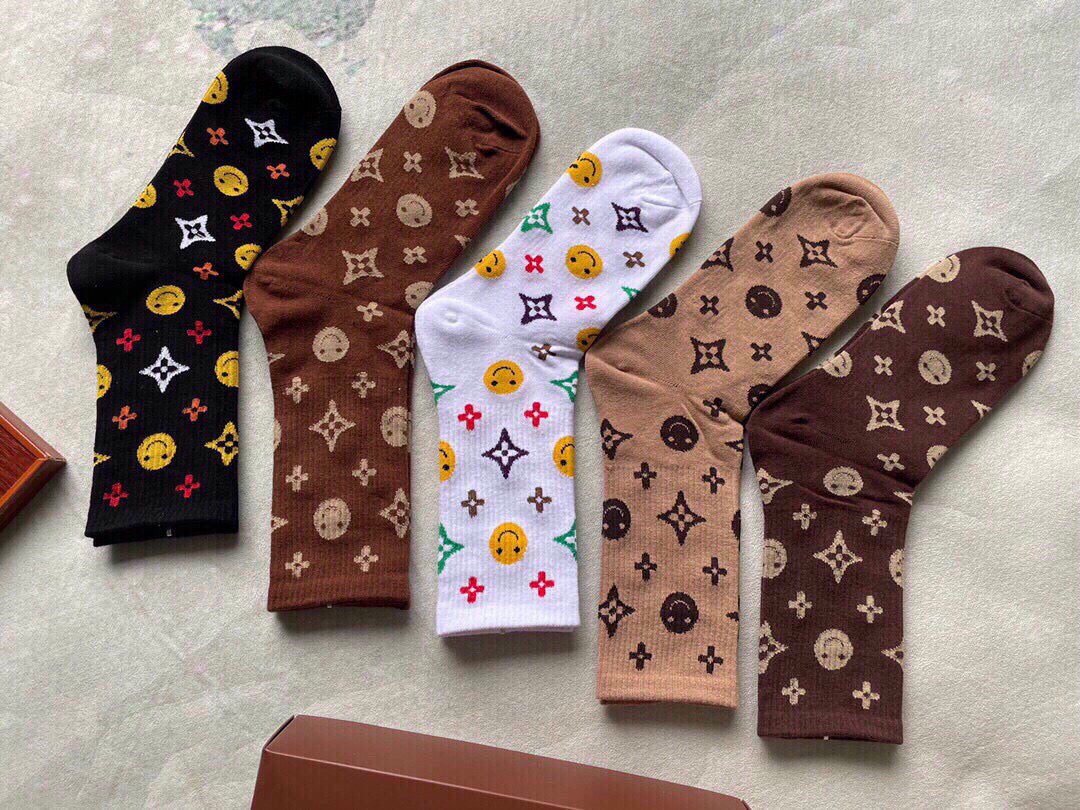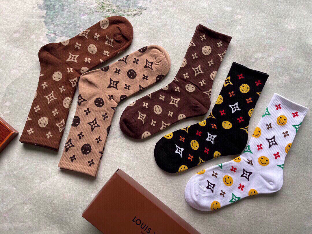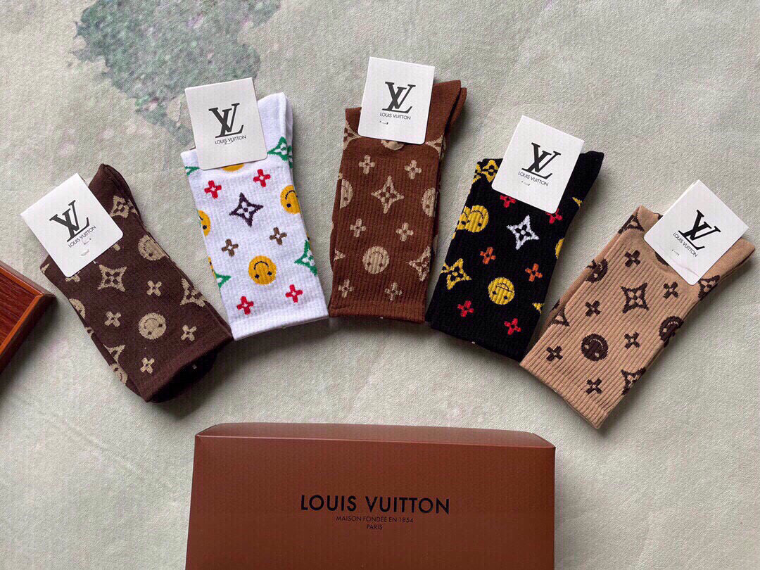 Elevate your wardrobe with the Louis Vuitton Women's Classic Mid-Calf Socks, a stylish set of five pairs presented in a luxurious box. Crafted from pure cotton, these socks are soft, comfortable, and breathable, ensuring all-day wear. Featuring the iconic jacquard logo design, they add a touch of elegance to any outfit. Perfect for fashion enthusiasts, these versatile socks are easy to match and are an essential addition to your collection. Experience the blend of luxury and comfort with Louis Vuitton.
