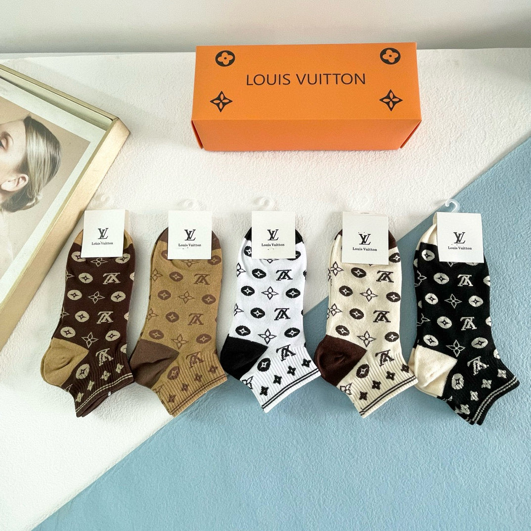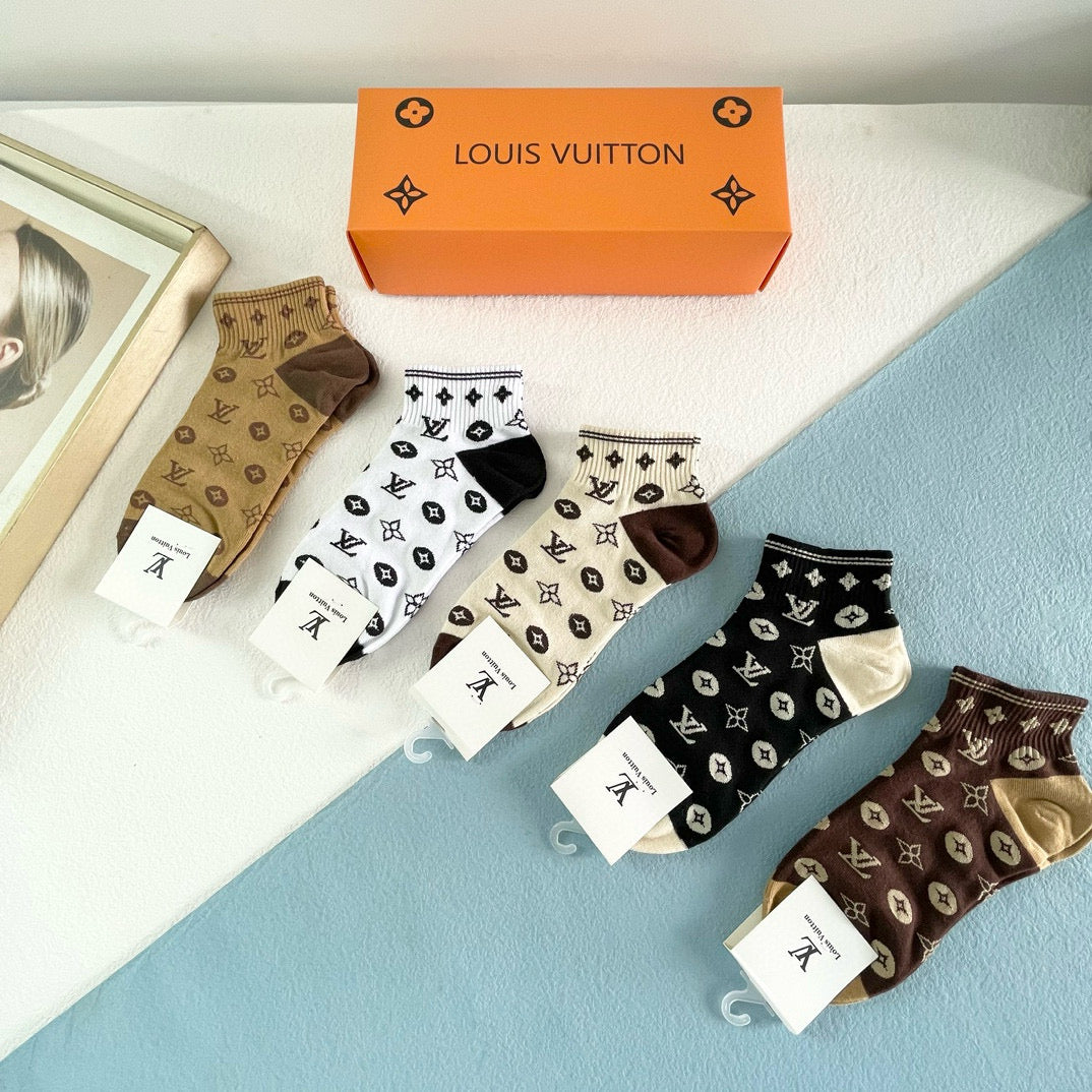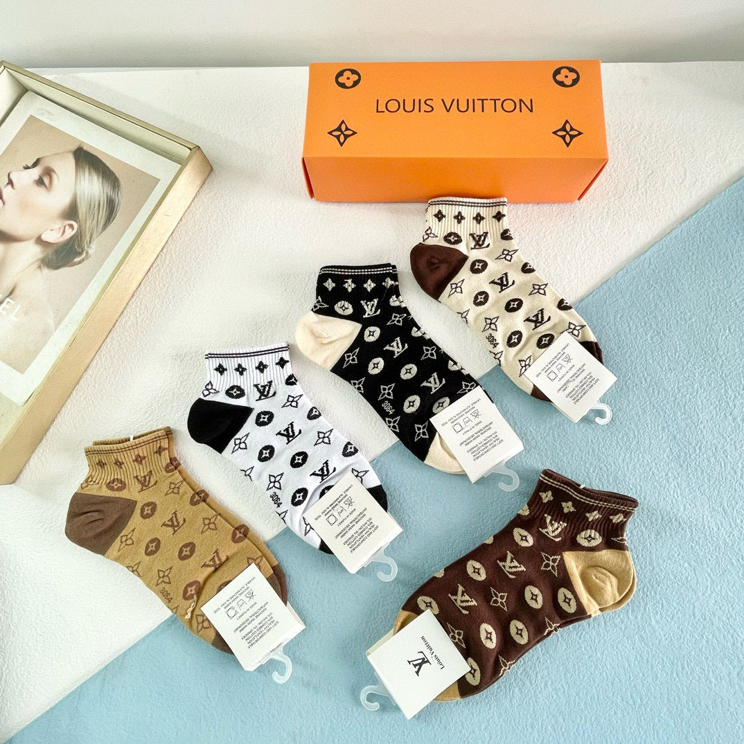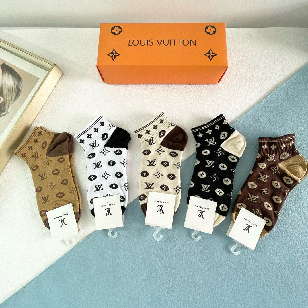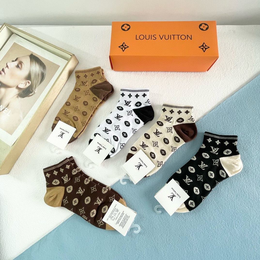 Louis Vuitton Women's Designer Short Socks - 5 Pairs