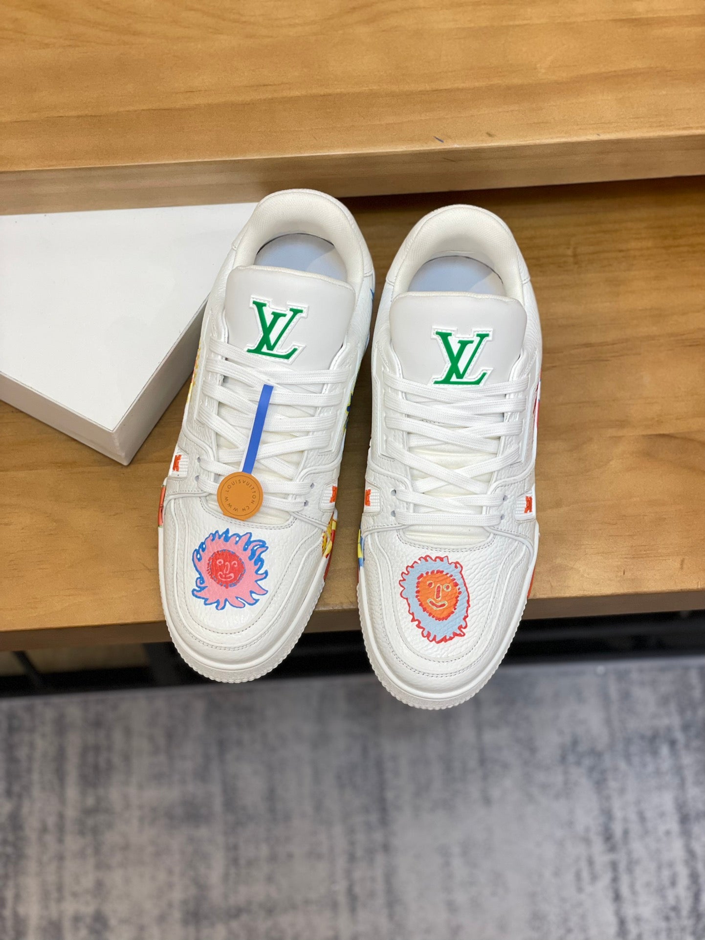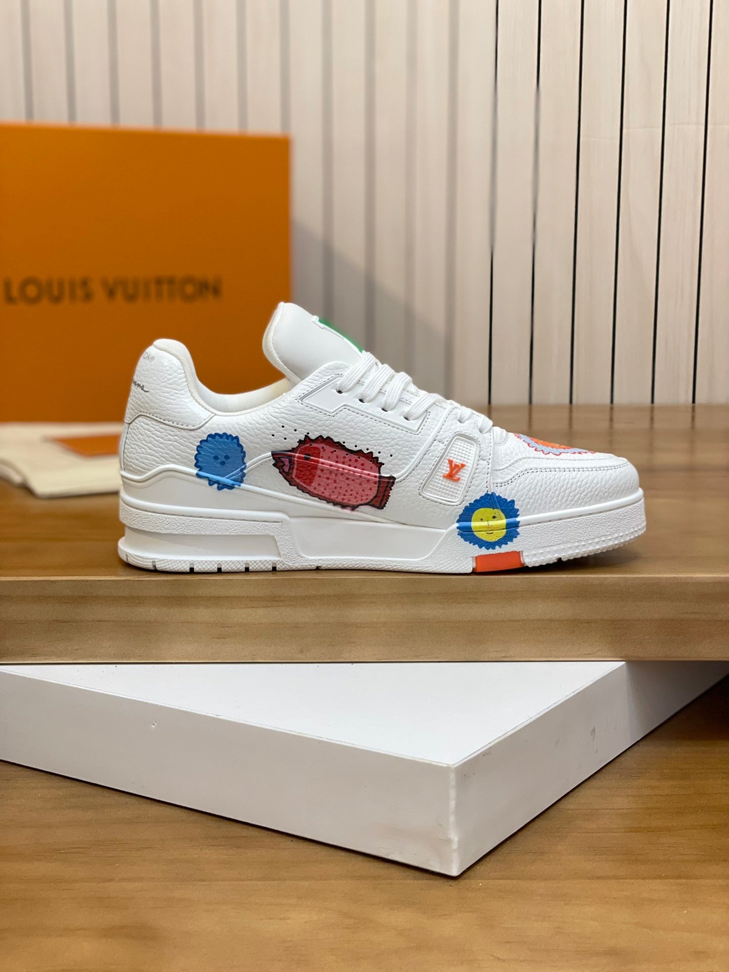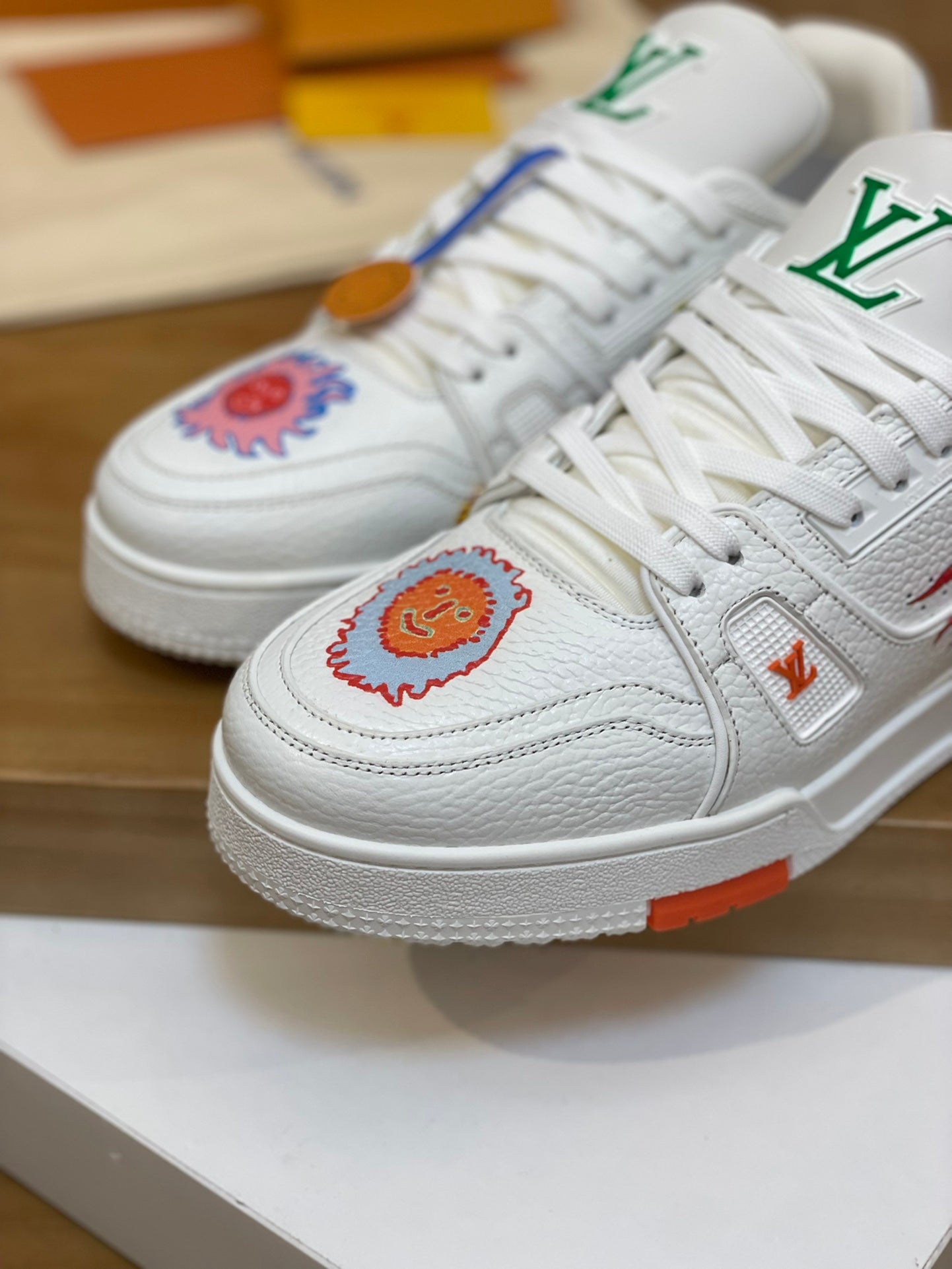 Discover the exclusive Louis Vuitton x Yayoi Kusama collaboration with these limited edition skate shoes. Expertly crafted from premium first-layer cowhide, these shoes feature a vibrant face print inspired by Kusama’s renowned artwork since 2009. The signature branding on the heel signifies the 2023 partnership between two iconic names.