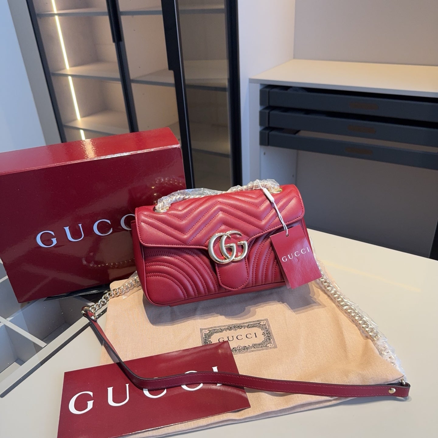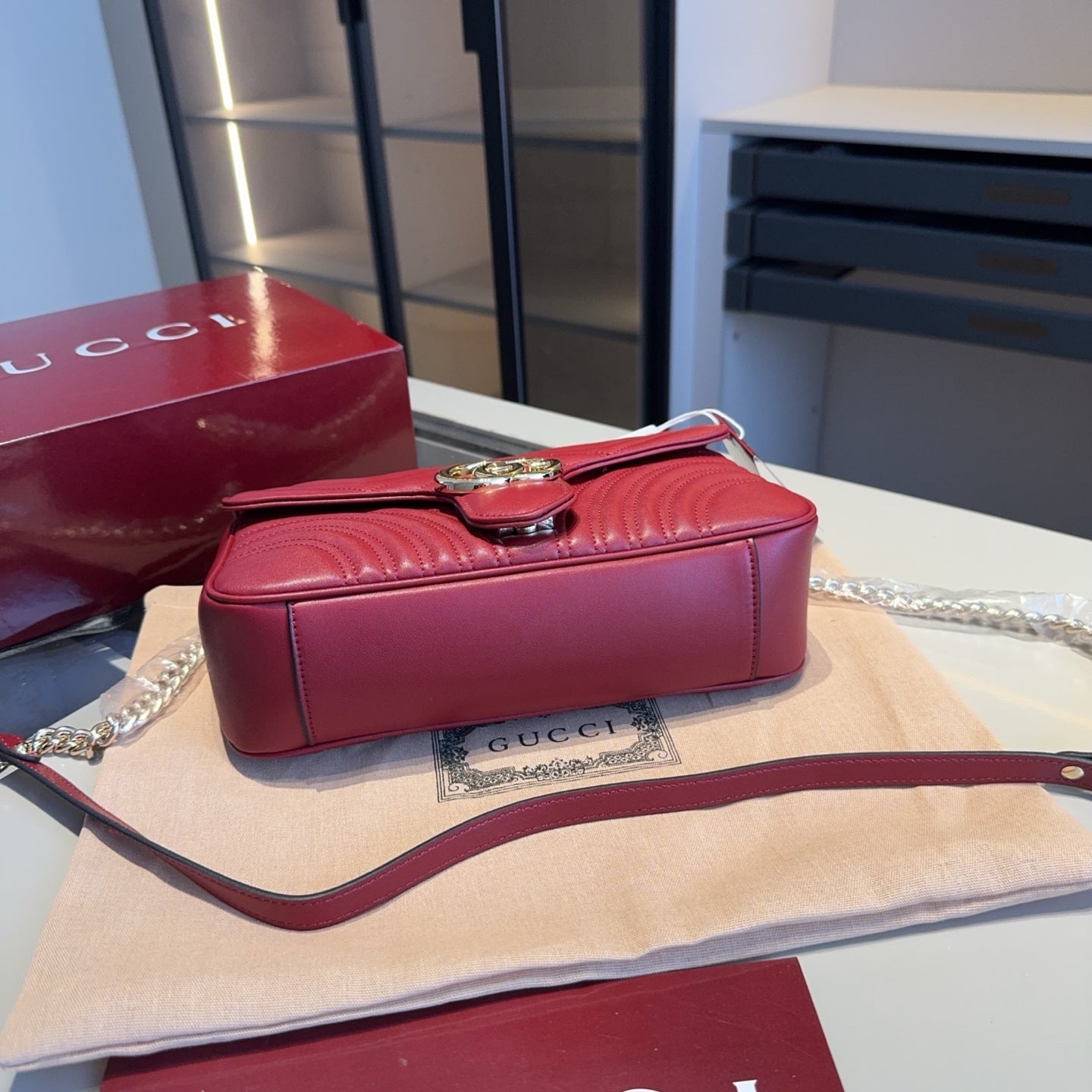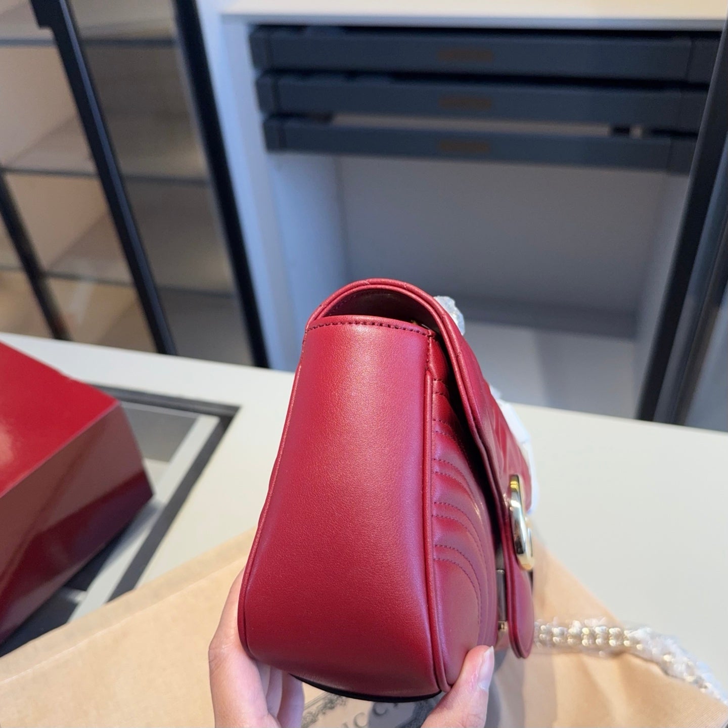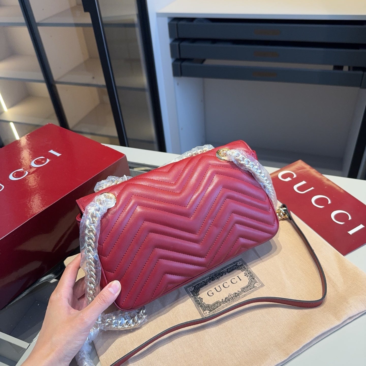Discover the elegance of our Cowhide Marmont Wave Chain Bag, inspired by the iconic GUCCI design. Crafted from genuine first-layer cow leather, this stunning bag is a favorite among celebrities and fashion enthusiasts alike.