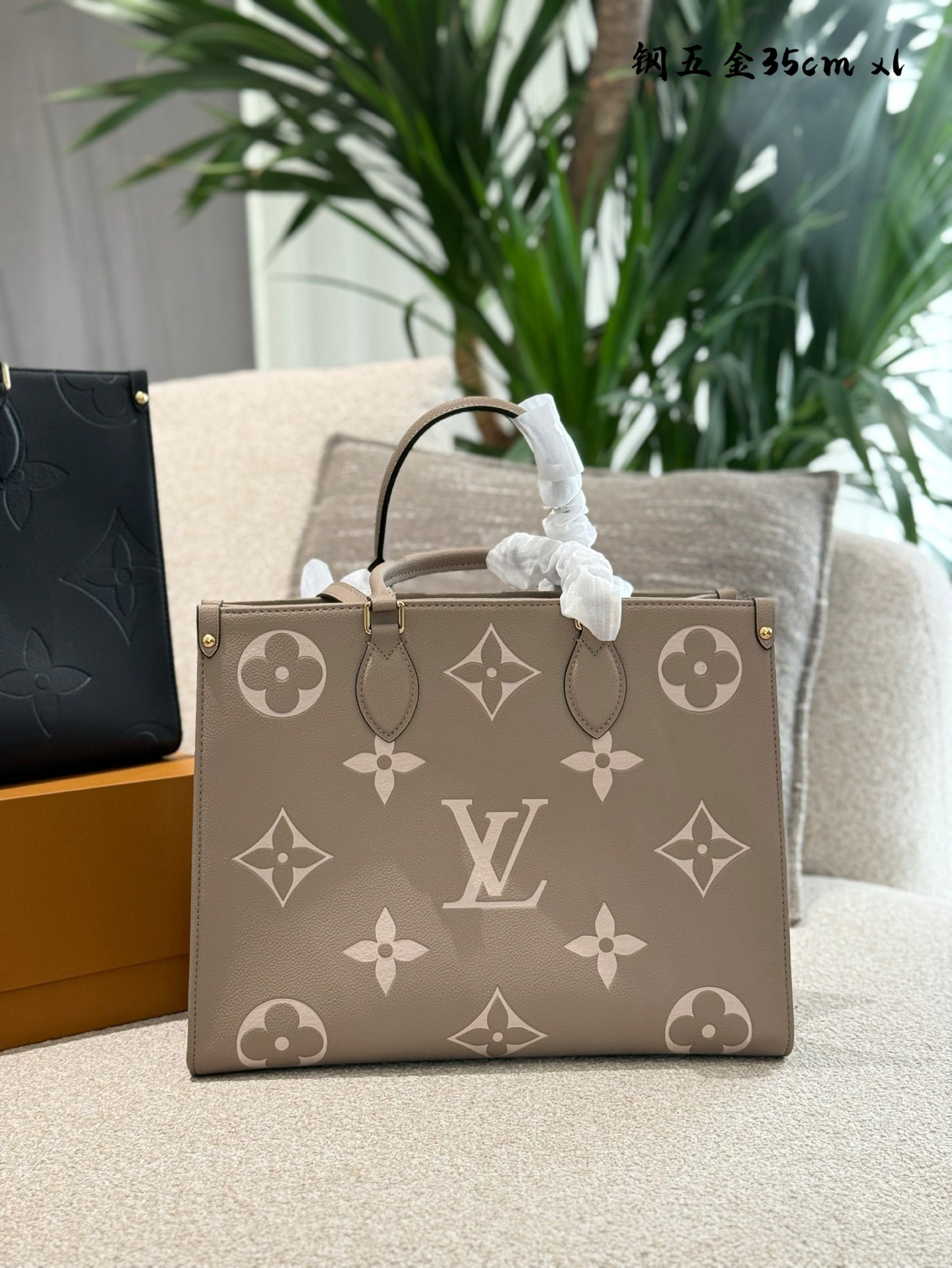 Luxury Gray Grained Cowhide Tote Bag - Large Capacity