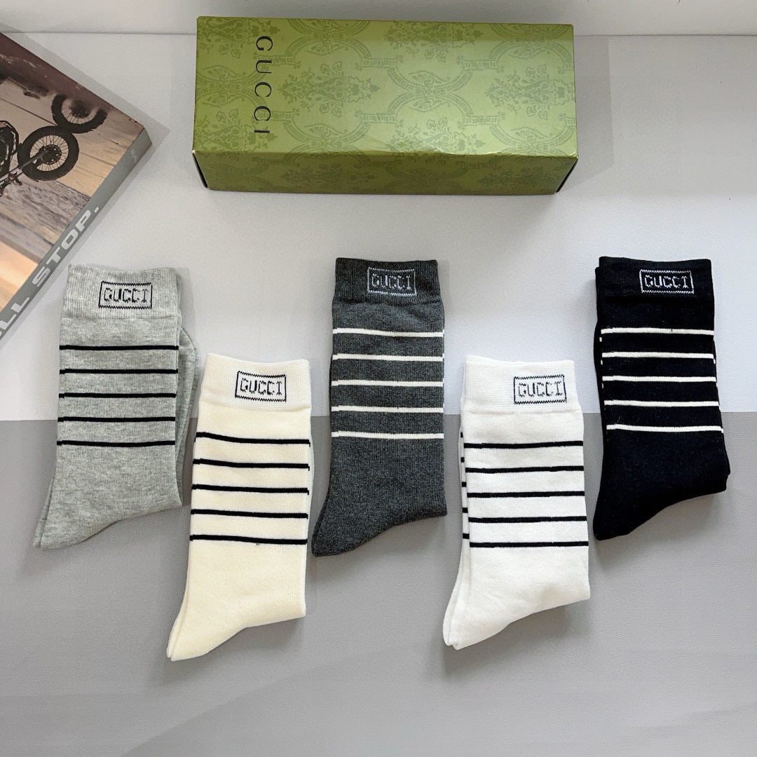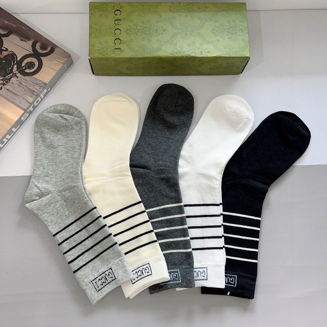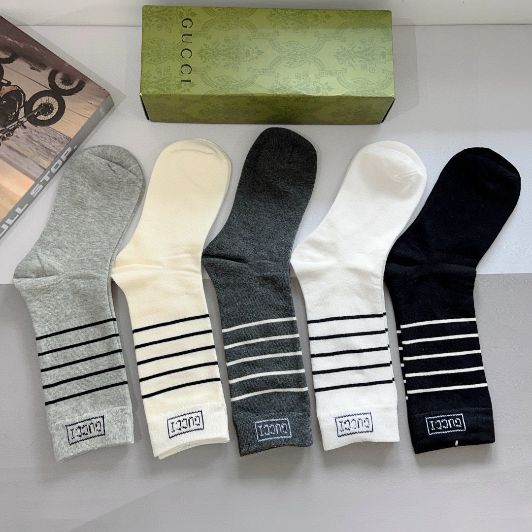 Luxury Gucci Long Cotton Socks - 5 Pairs in Stylish Packaging