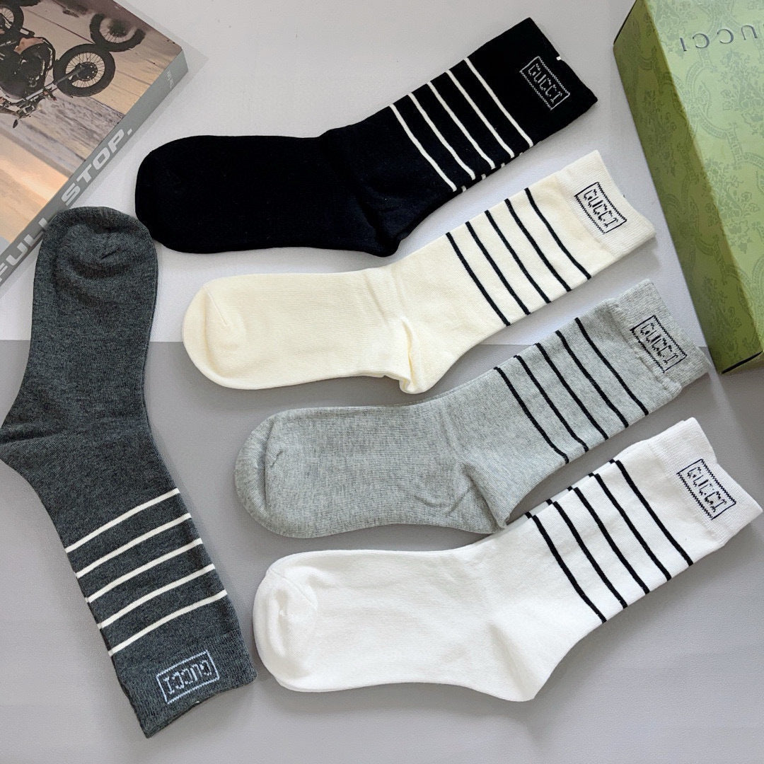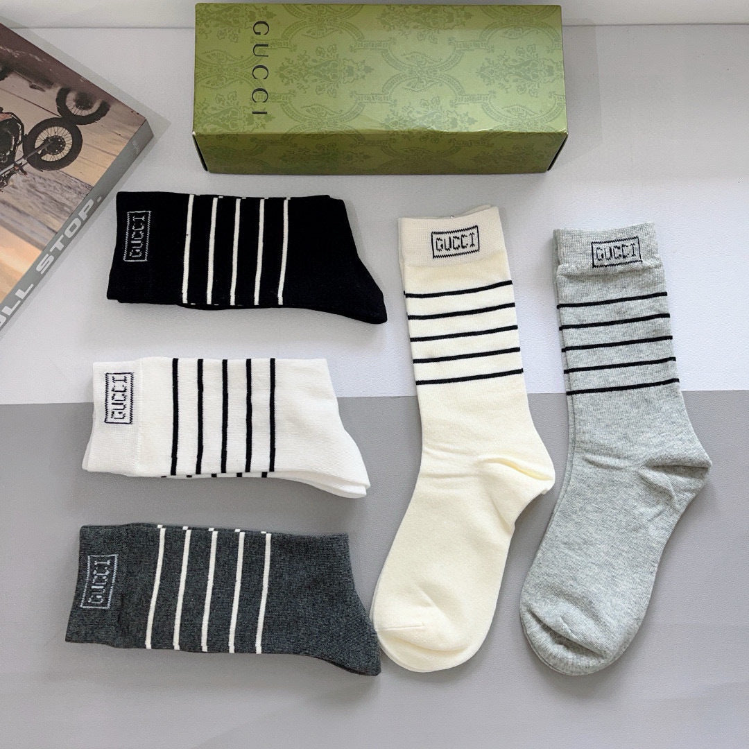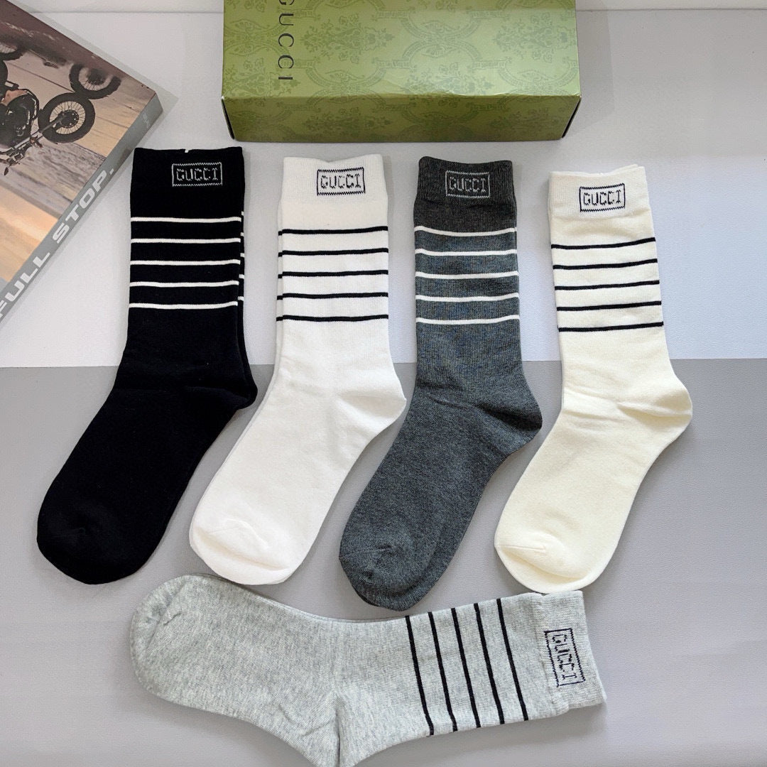 Luxury Gucci Long Cotton Socks - 5 Pairs in Stylish Packaging