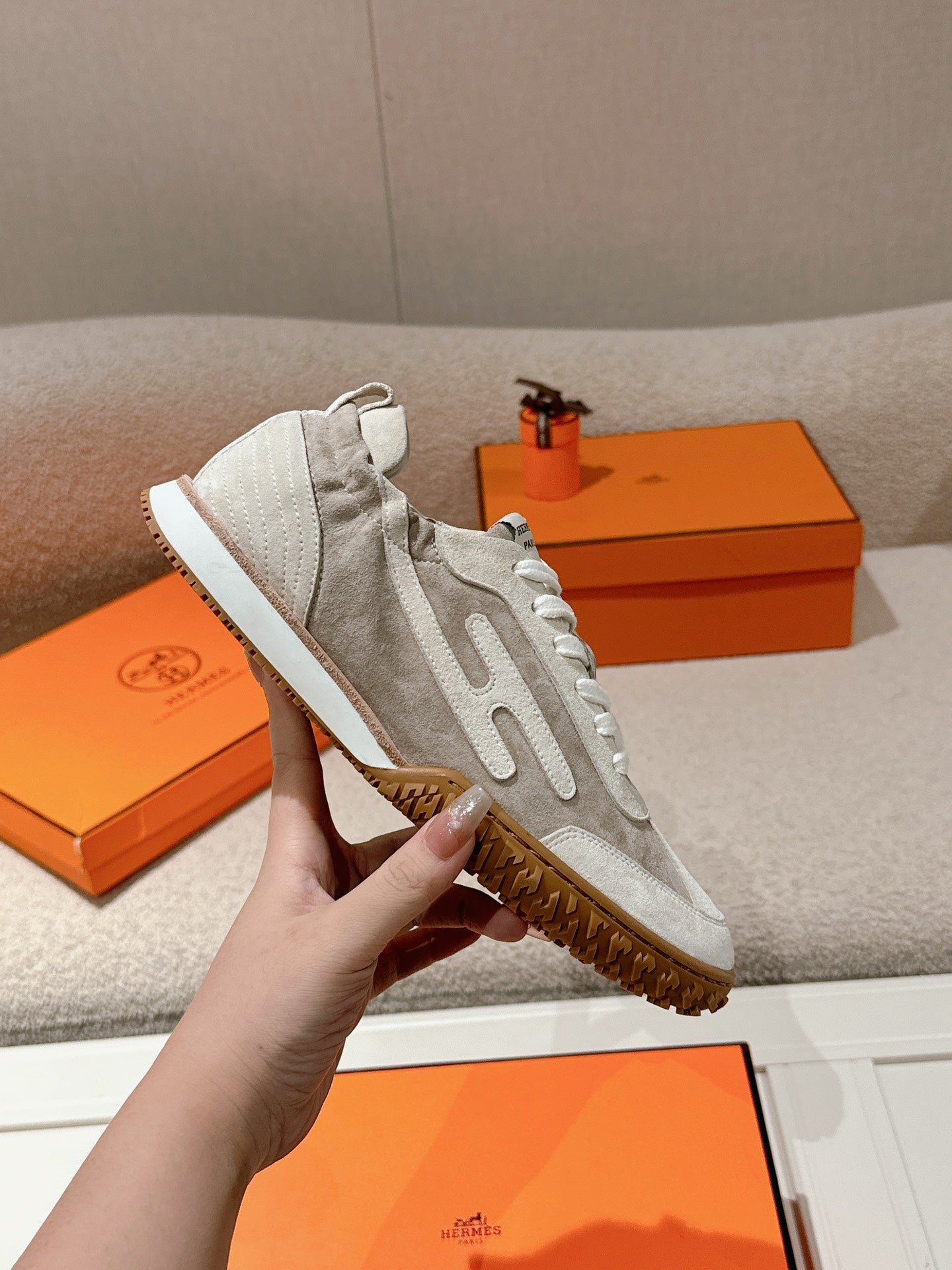 Luxury Hermes Suede Casual Sneakers with Iconic "H" Details