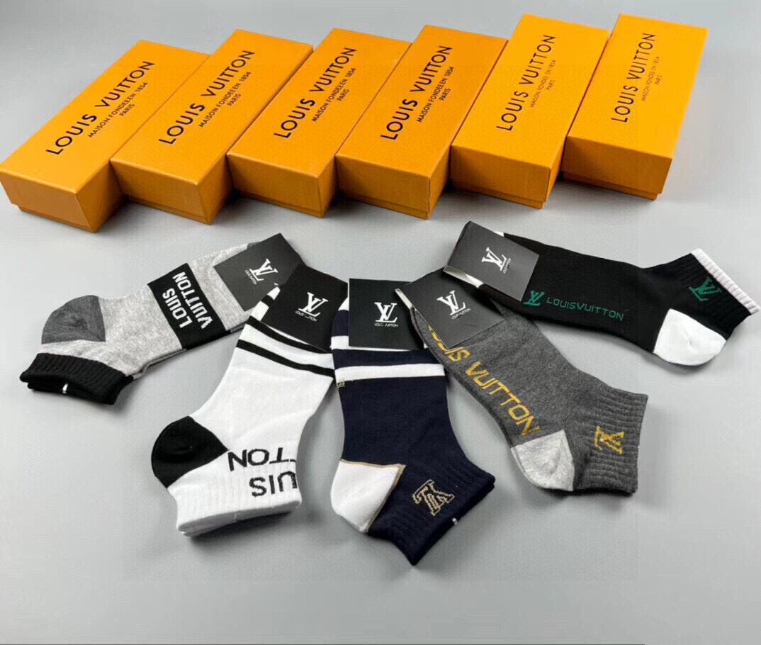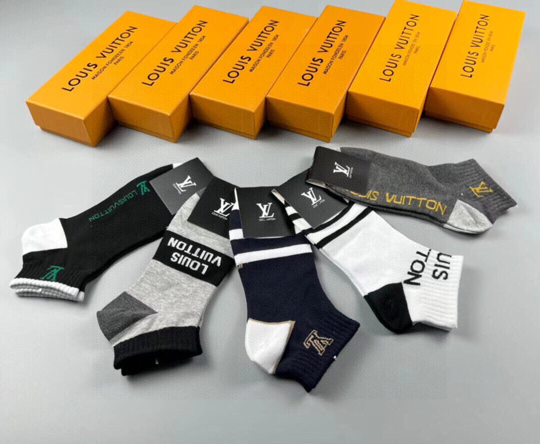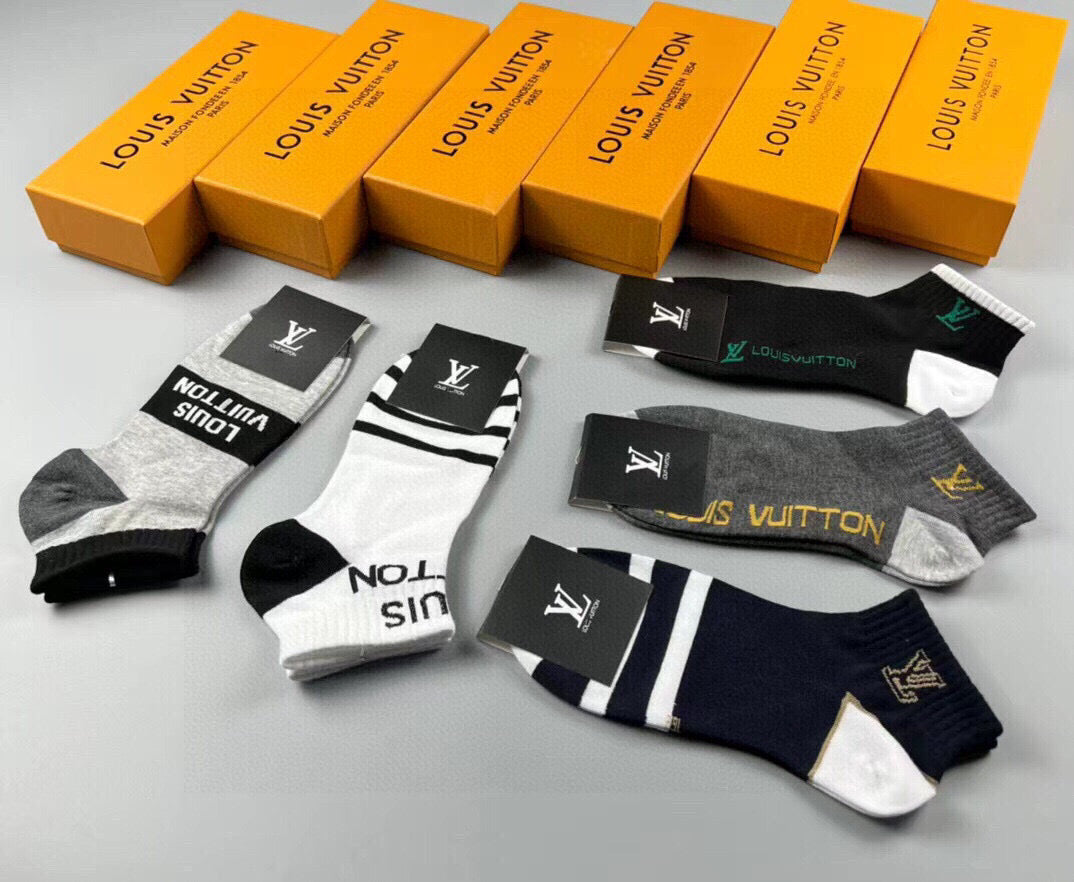 Luxury Louis Vuitton Men’s Cotton Socks – 5 Pairs Gift Set