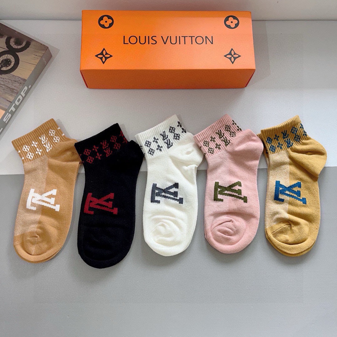 Luxury LV Louis Vuitton Cotton Mid-Calf Socks – 5 Pairs