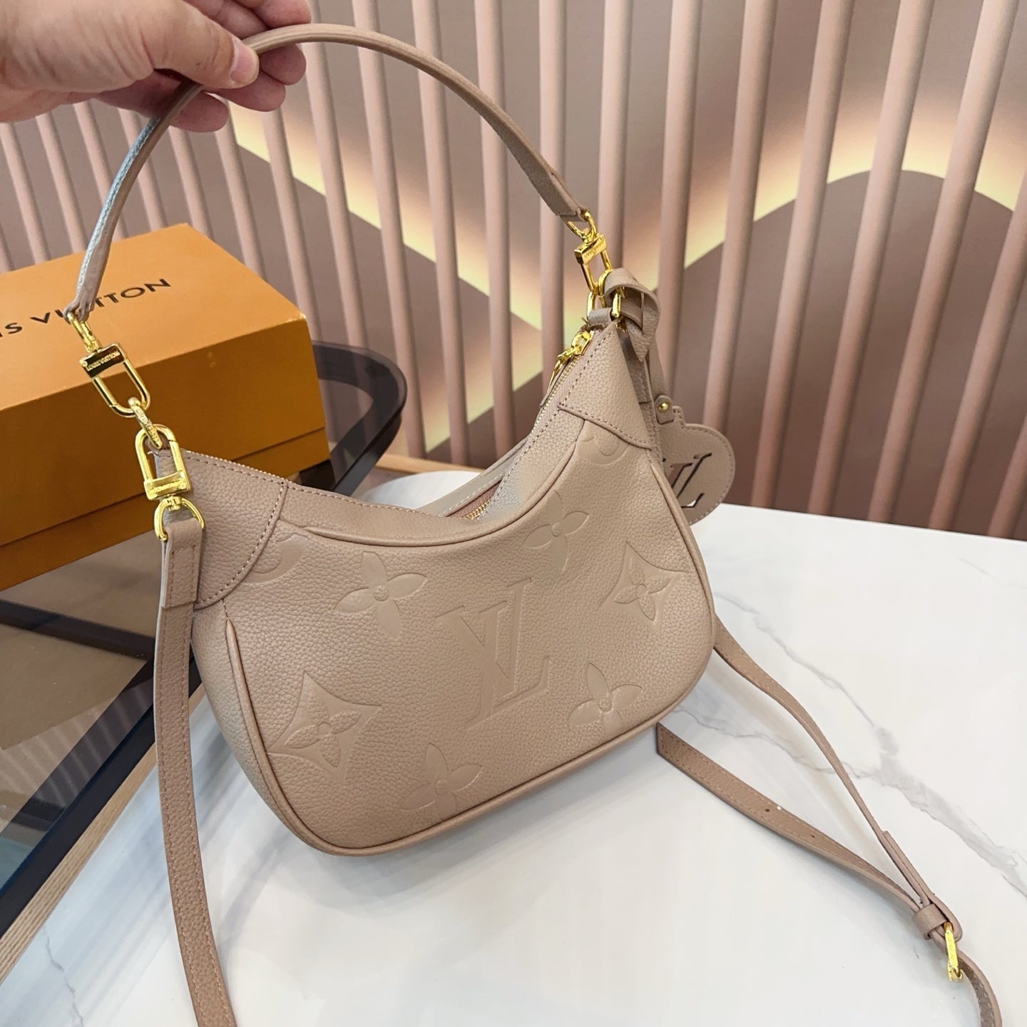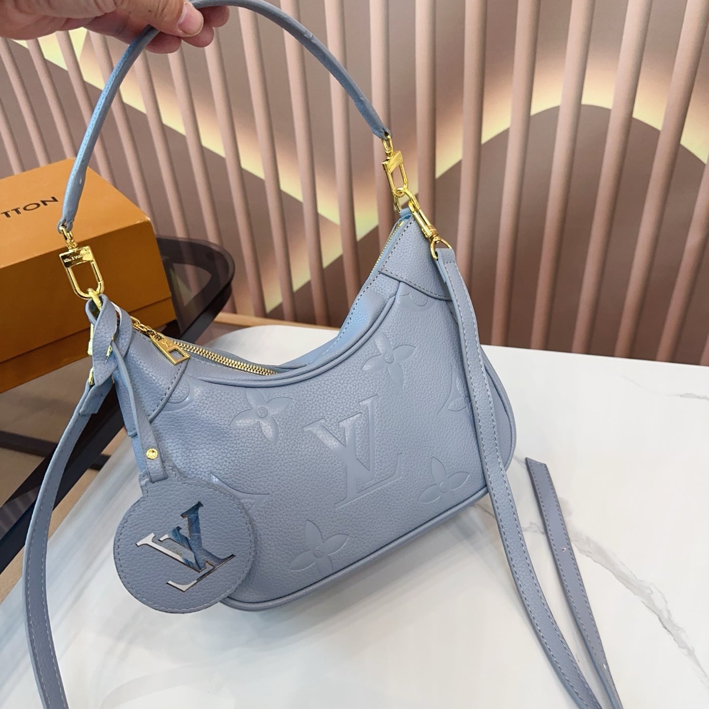 Introducing the LV Bagatelle Armpit Bag, designed for ultimate versatility and style. This lightweight shoulder and crossbody bag is the perfect accessory for anyone on the go. With a generous capacity, it effortlessly accommodates your daily essentials while maintaining a sleek and sophisticated appearance. The more you appreciate its design, the more you’ll love its functionality. Don’t miss out on this essential addition to your wardrobe. Dimensions: 24.13 cm. Upgrade your style with the LV Bagatelle today!