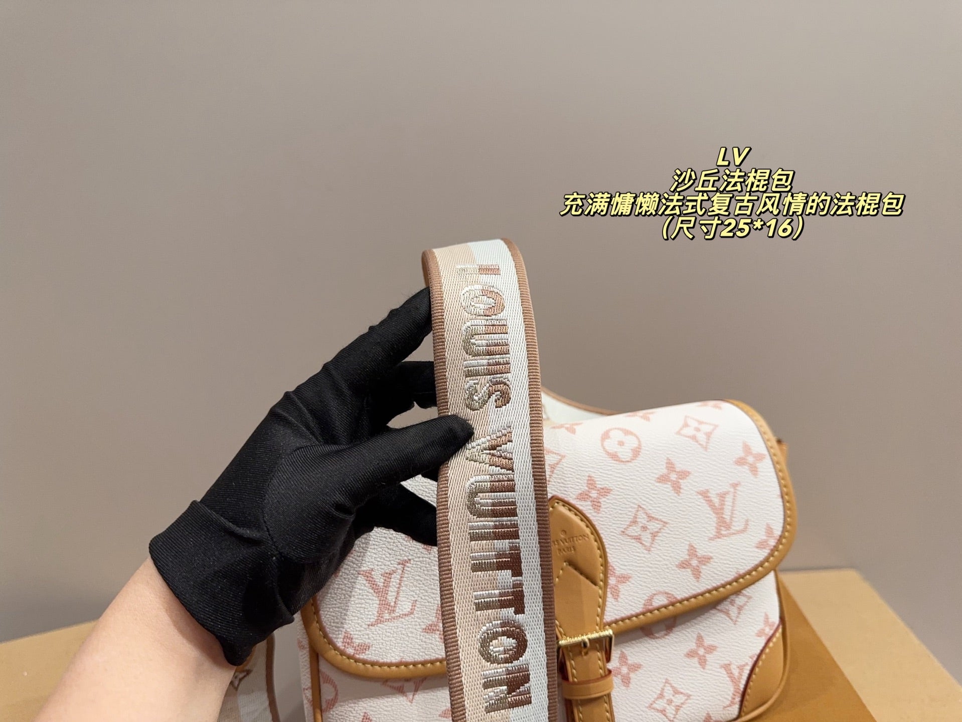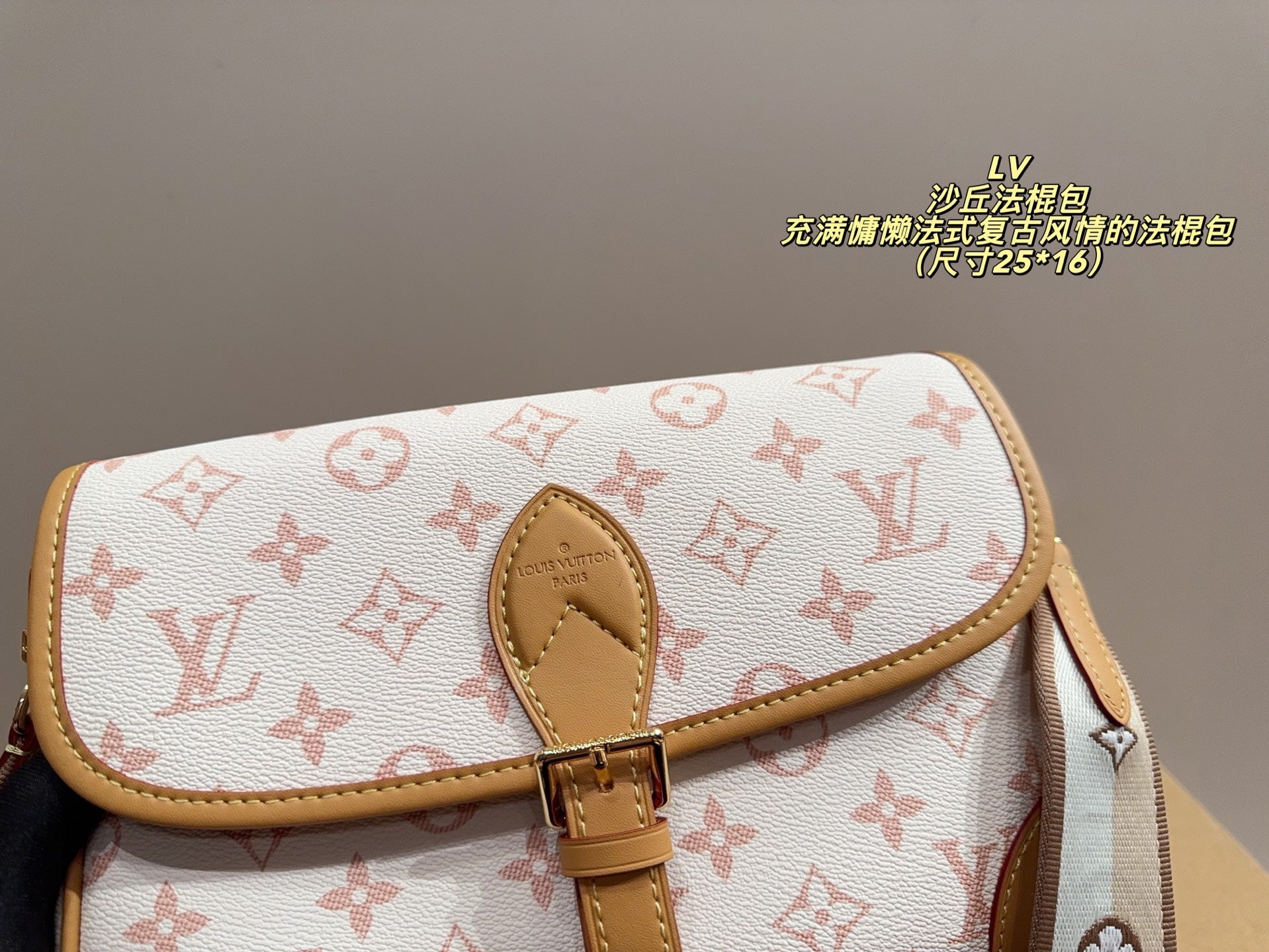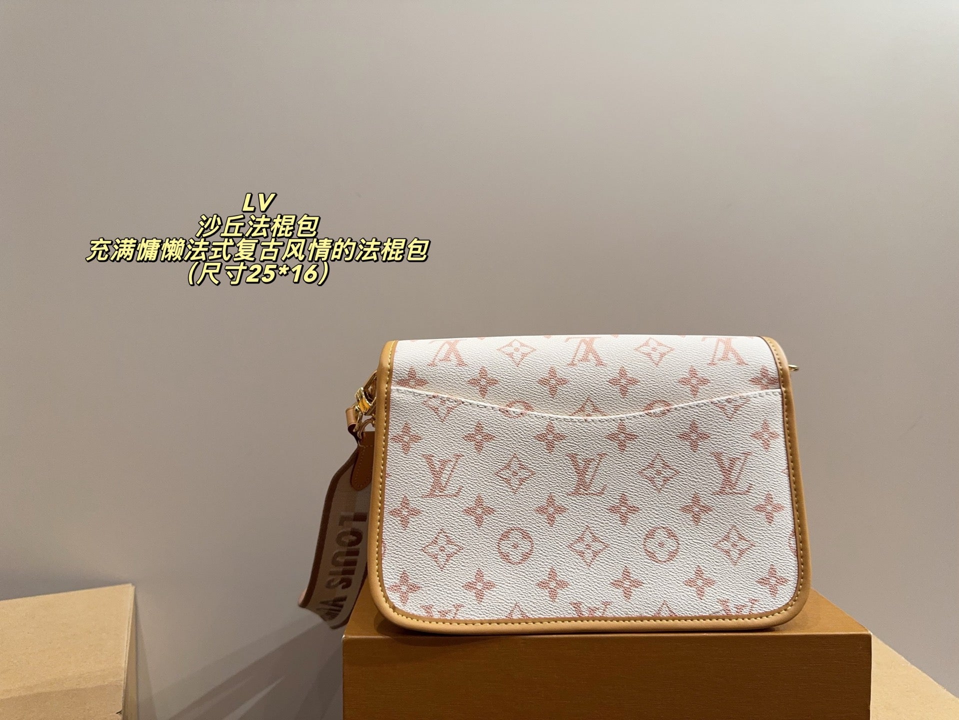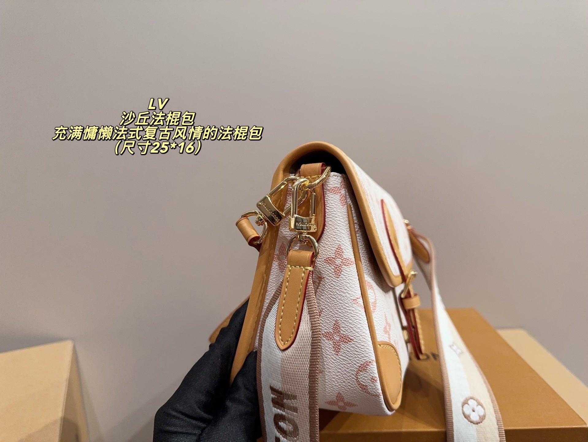 Introducing the LV Dune Baguette Bag, a chic accessory that embodies effortless French retro style. With dimensions of 25cm x 16cm, this elegantly designed trapezoidal bag is narrow at the top and wider at the bottom, ensuring both a snug fit and ample storage capacity.