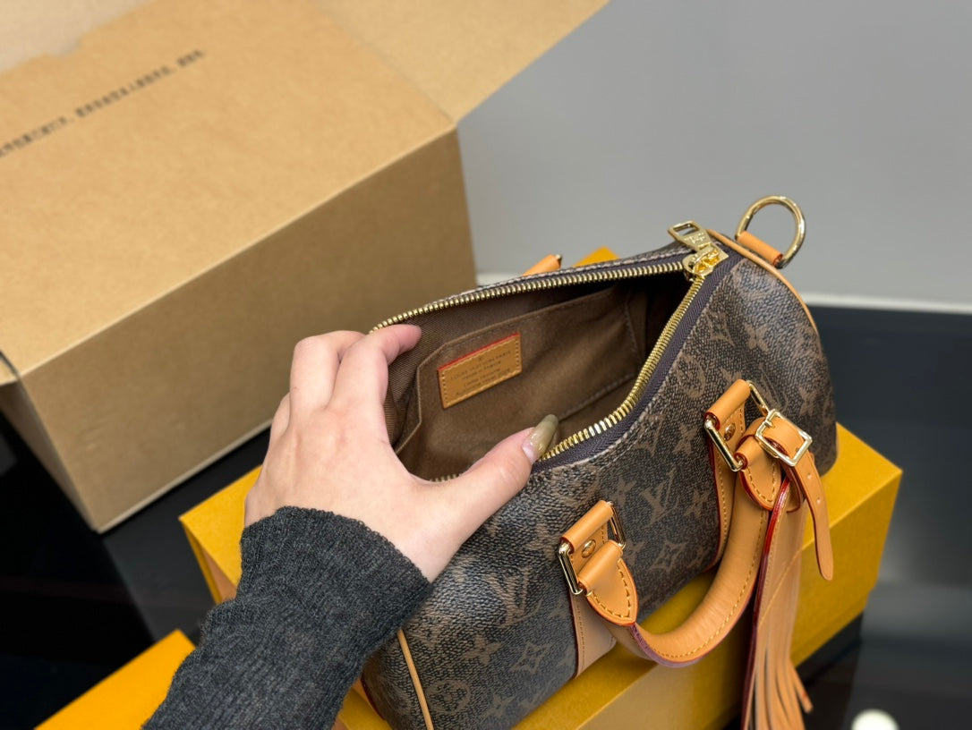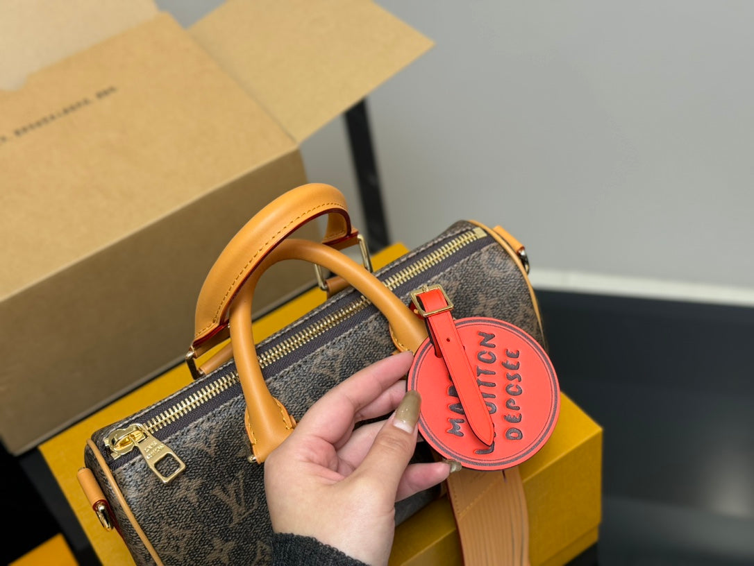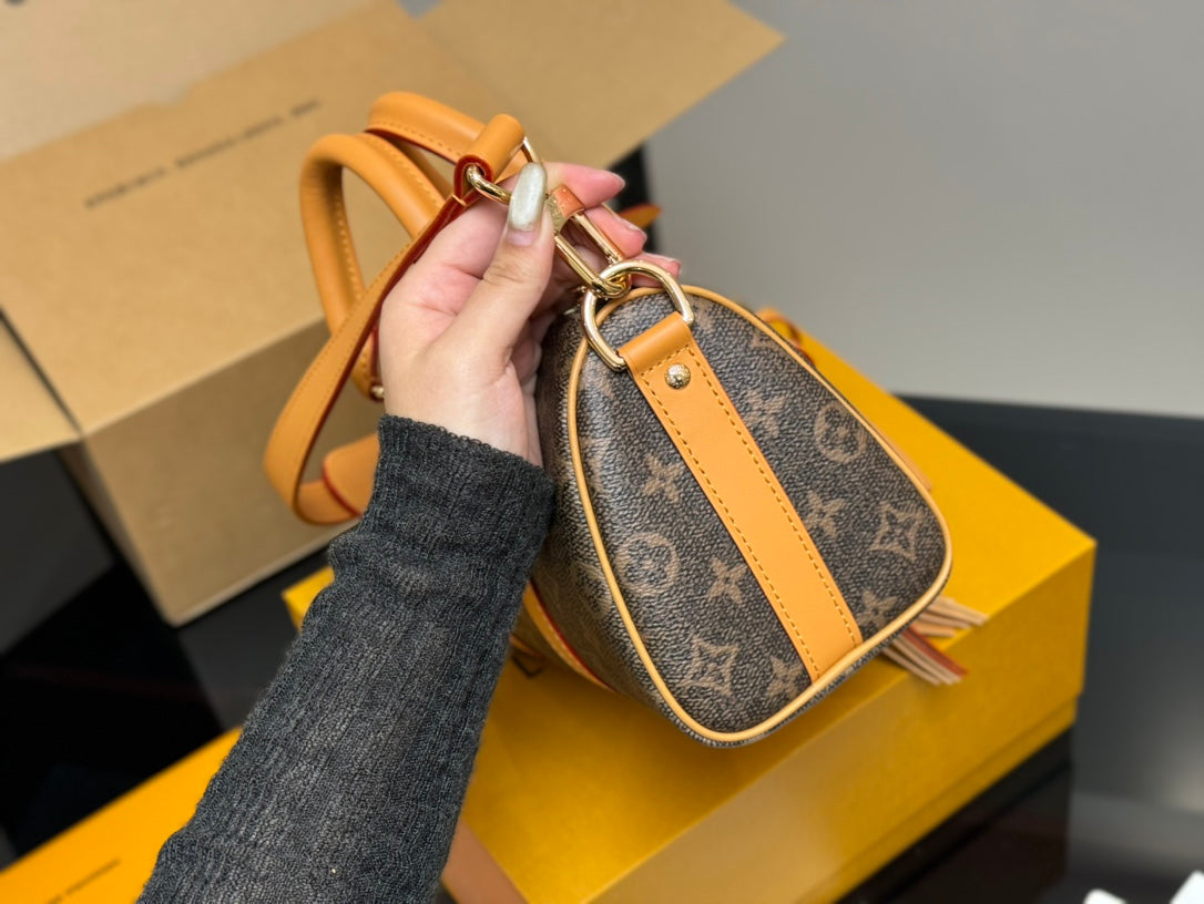 Introducing the LV Keepall 25 Pillow Bag, a chic and versatile accessory designed for everyday use. Measuring 25 x 14 cm, this stylish bag is perfect for all your essentials, whether you're heading to the gym, traveling, or simply going out.