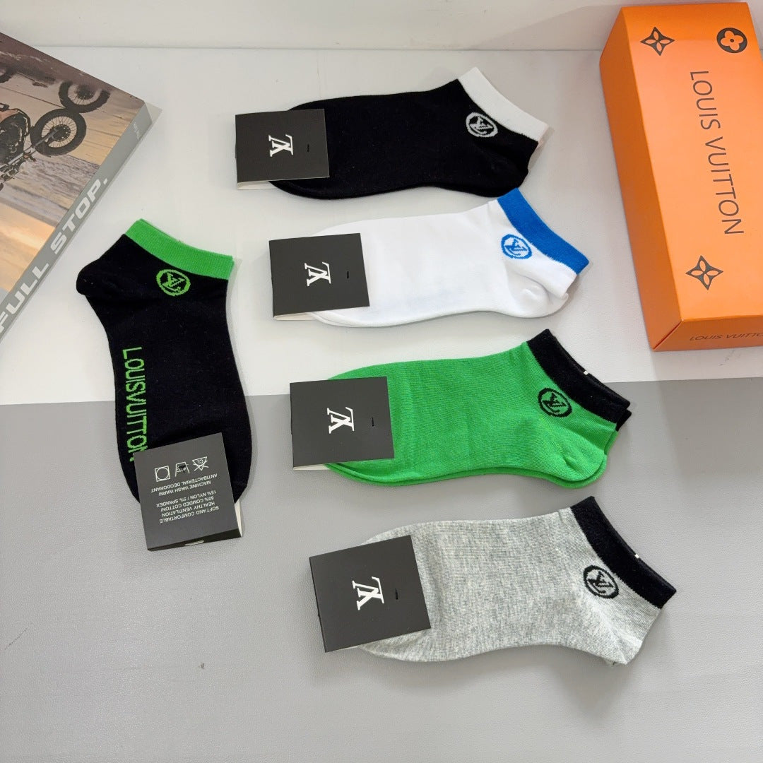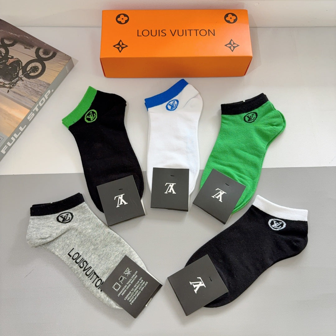 LV Louis Vuitton Cotton Short Socks - 5 Pairs