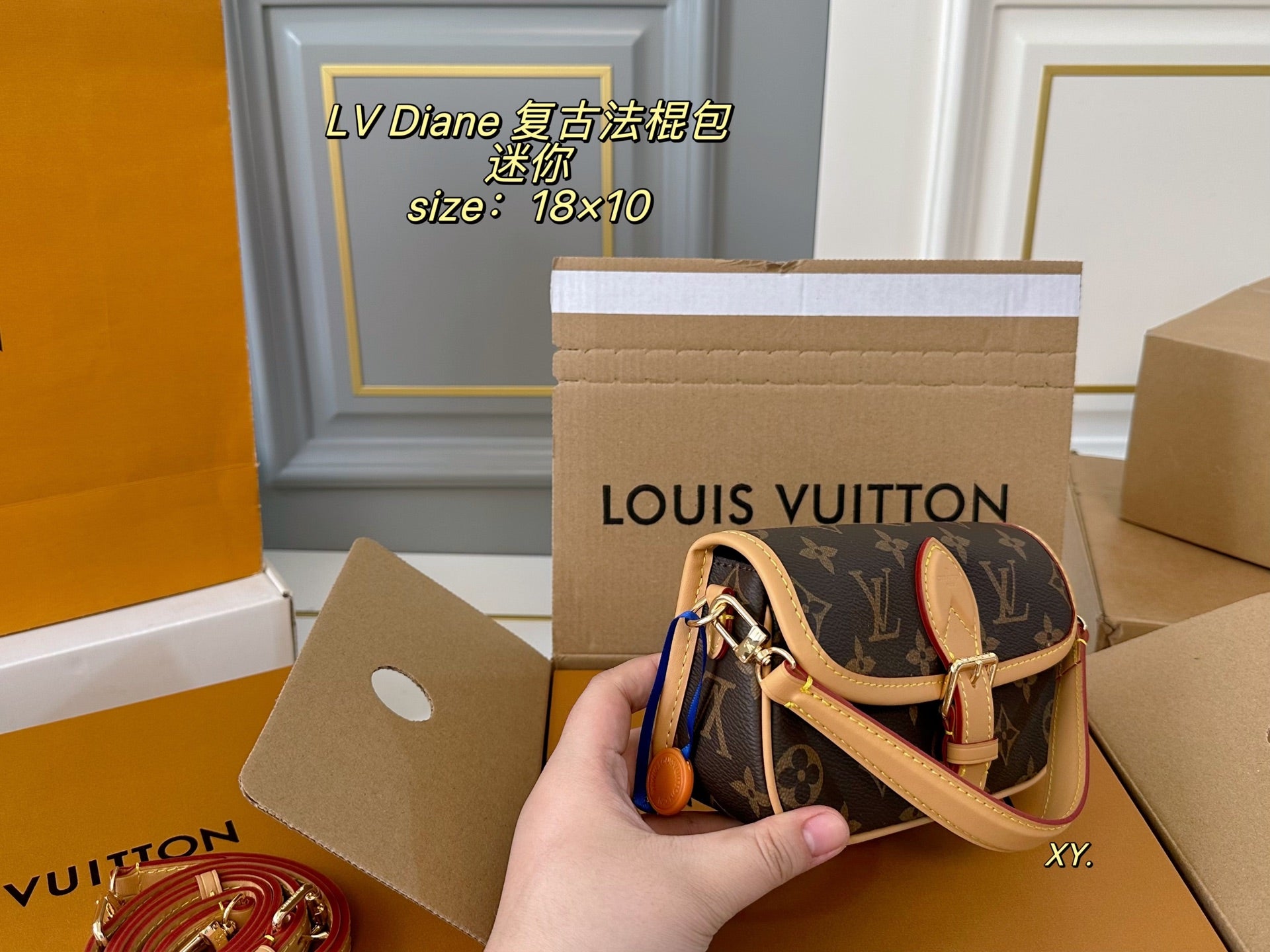 Discover the elegance of the LV Louis Vuitton Diane Mini Retro Baguette Bag, measuring 18cm x 10cm. This stylish accessory features a versatile design that includes two shoulder straps for easy wear. Choose between a comfortable armpit or crossbody style to suit your needs. The classic buckle detail adds a touch of retro charm, while the minimalist silhouette allows you to transition effortlessly from casual to chic. Perfect for any occasion, this bag combines practicality with timeless sophistication. Elevate your wardrobe with this versatile piece today!